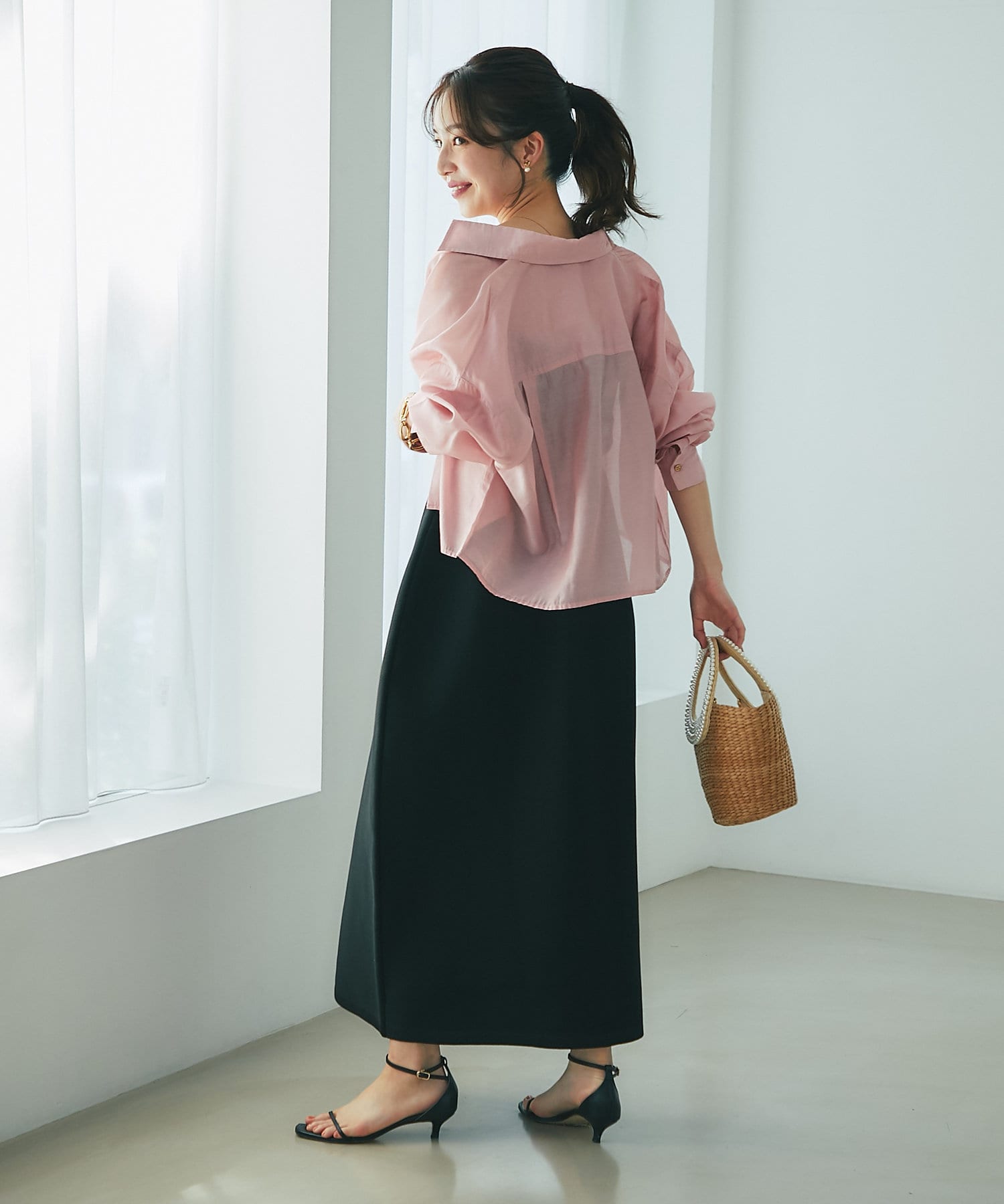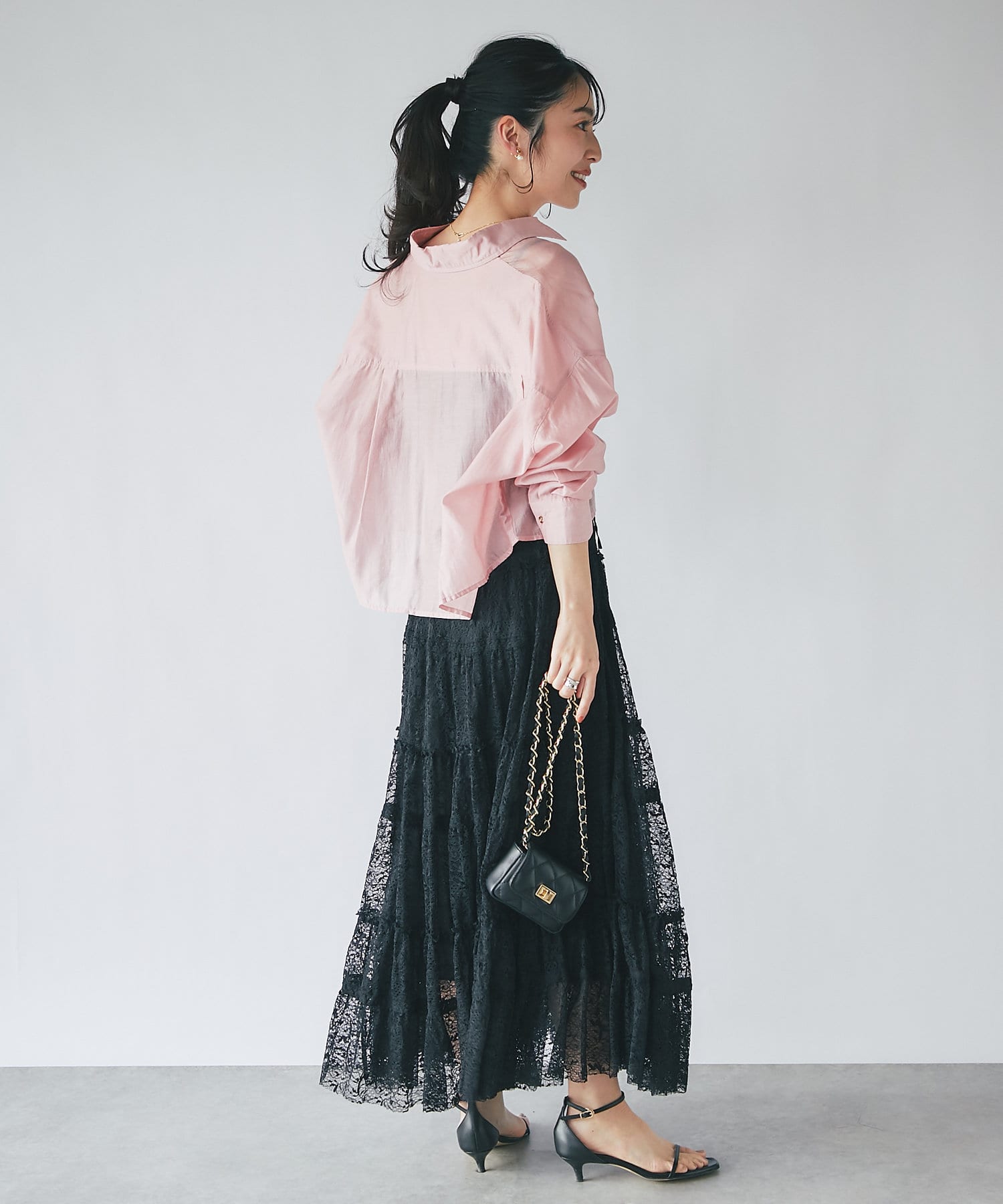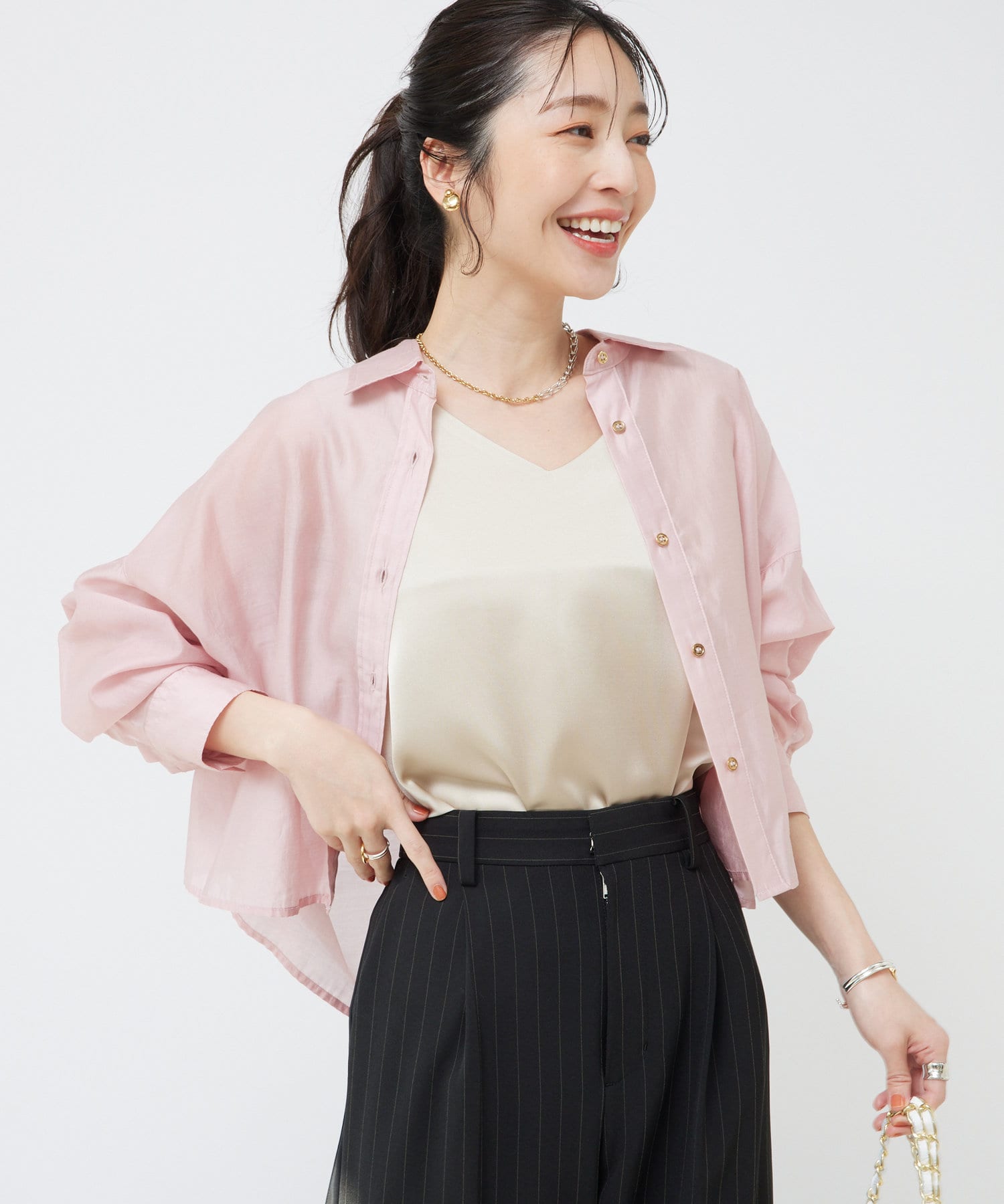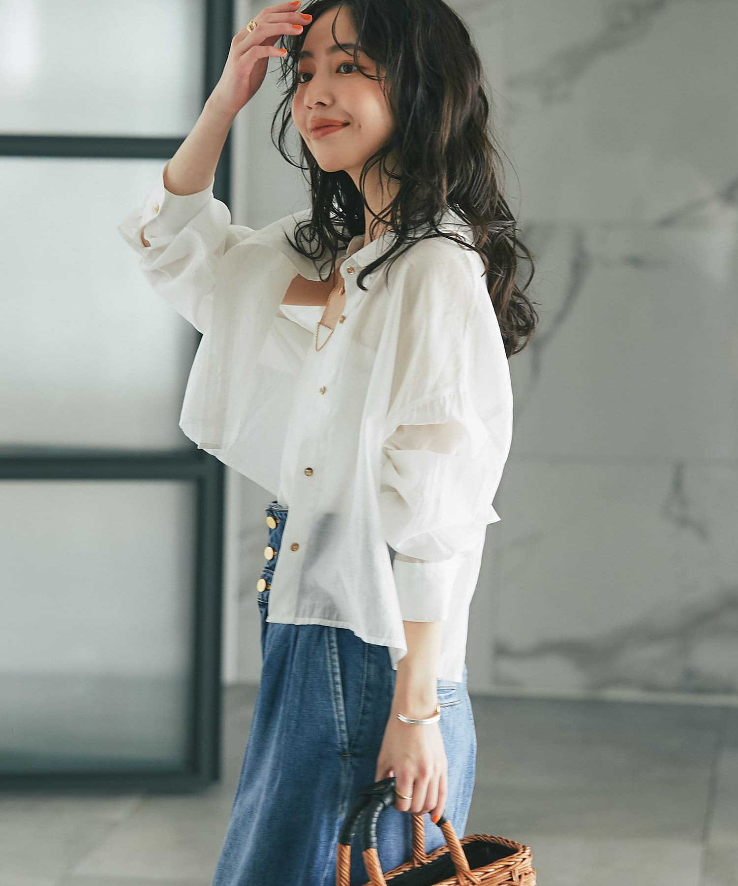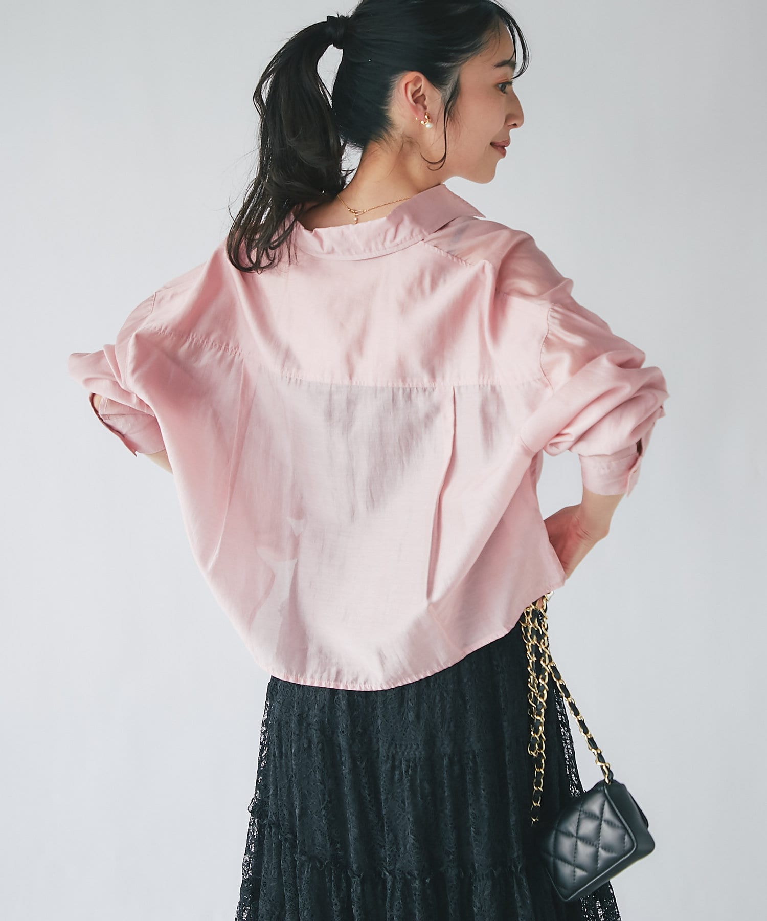 透け感があるので重ね着しても重い印象にならず、シーズン問わず着られるアイテム。
