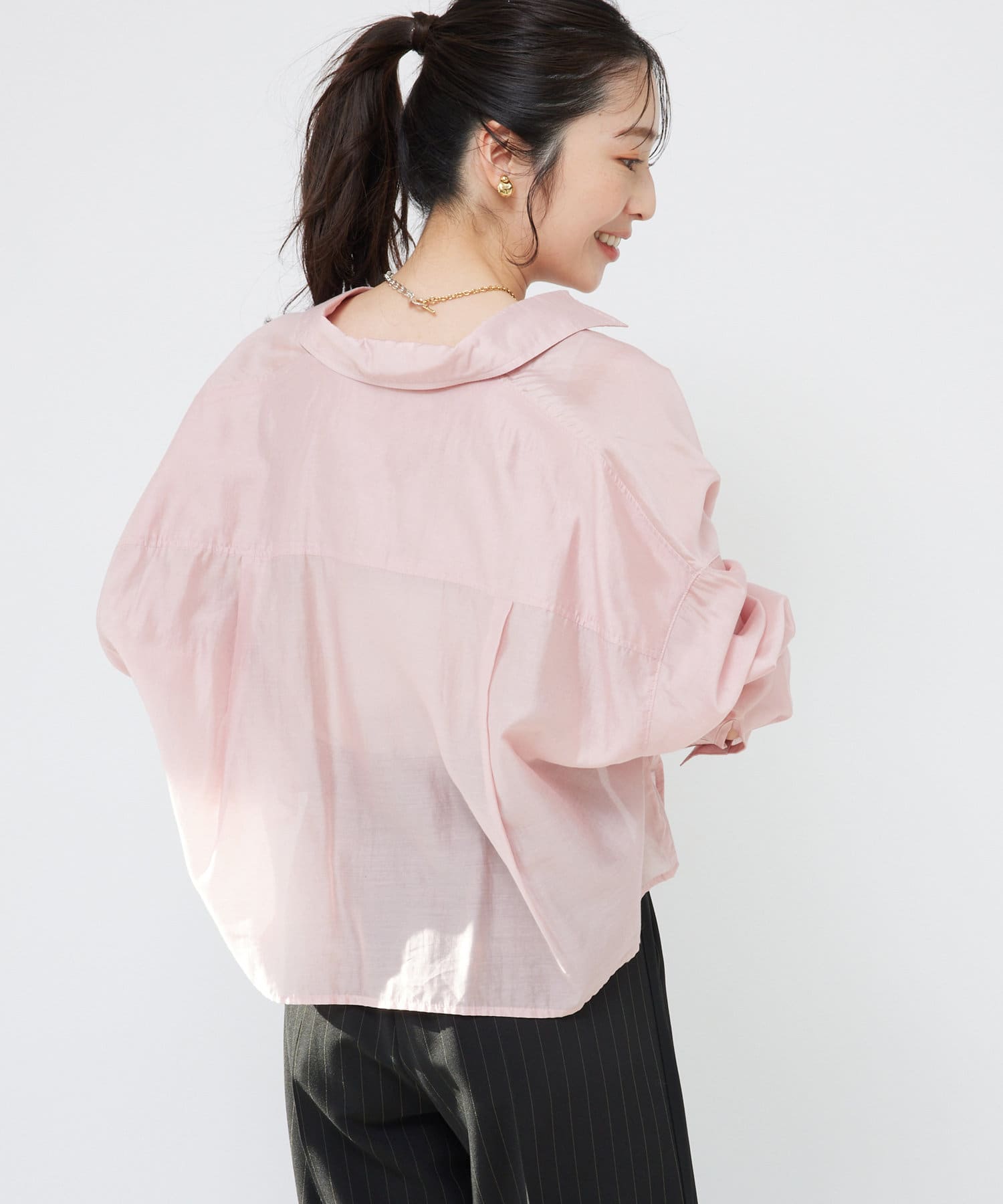 ゆったりとしたサイズ感でお作りしているので、レイヤードスタイルにも重宝します。