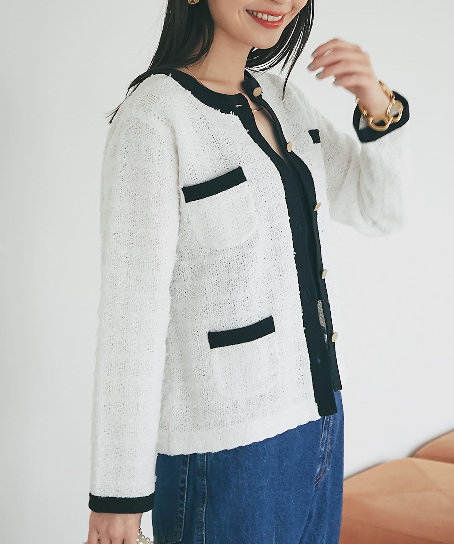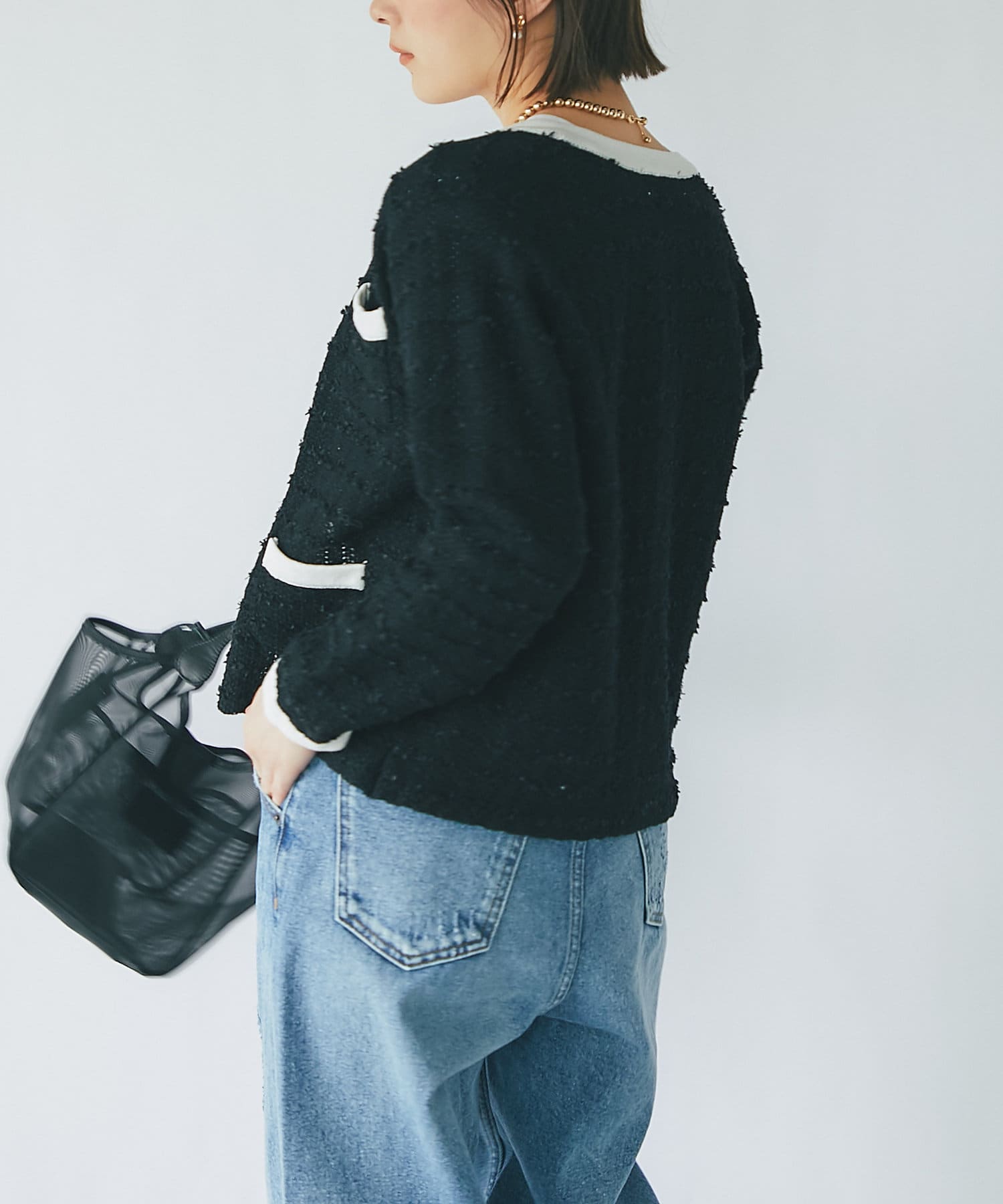 デイリーに着たいニットカーディガンをツイード素材でBonBon流に大人かわいく仕上げました。