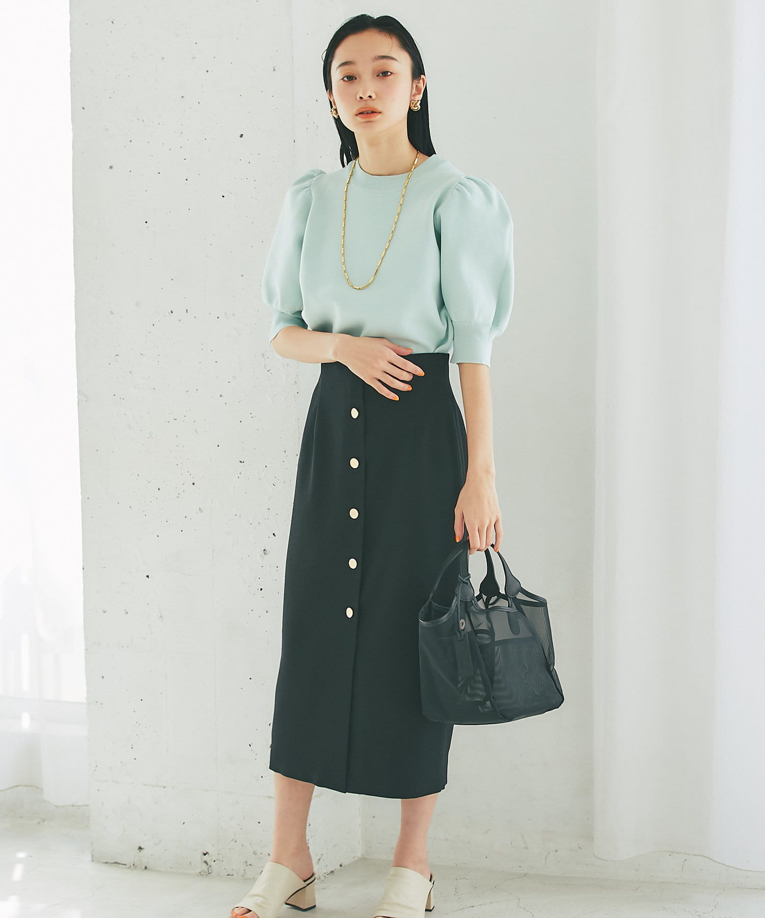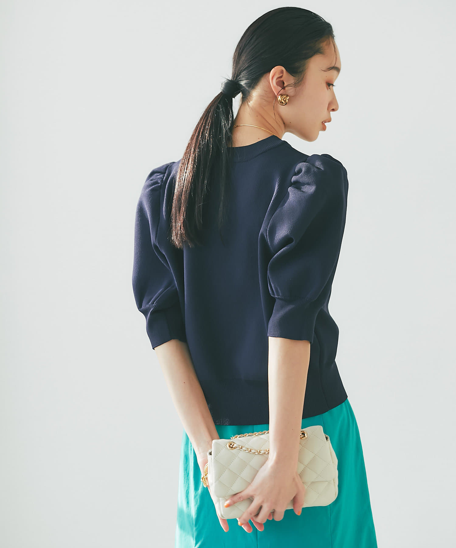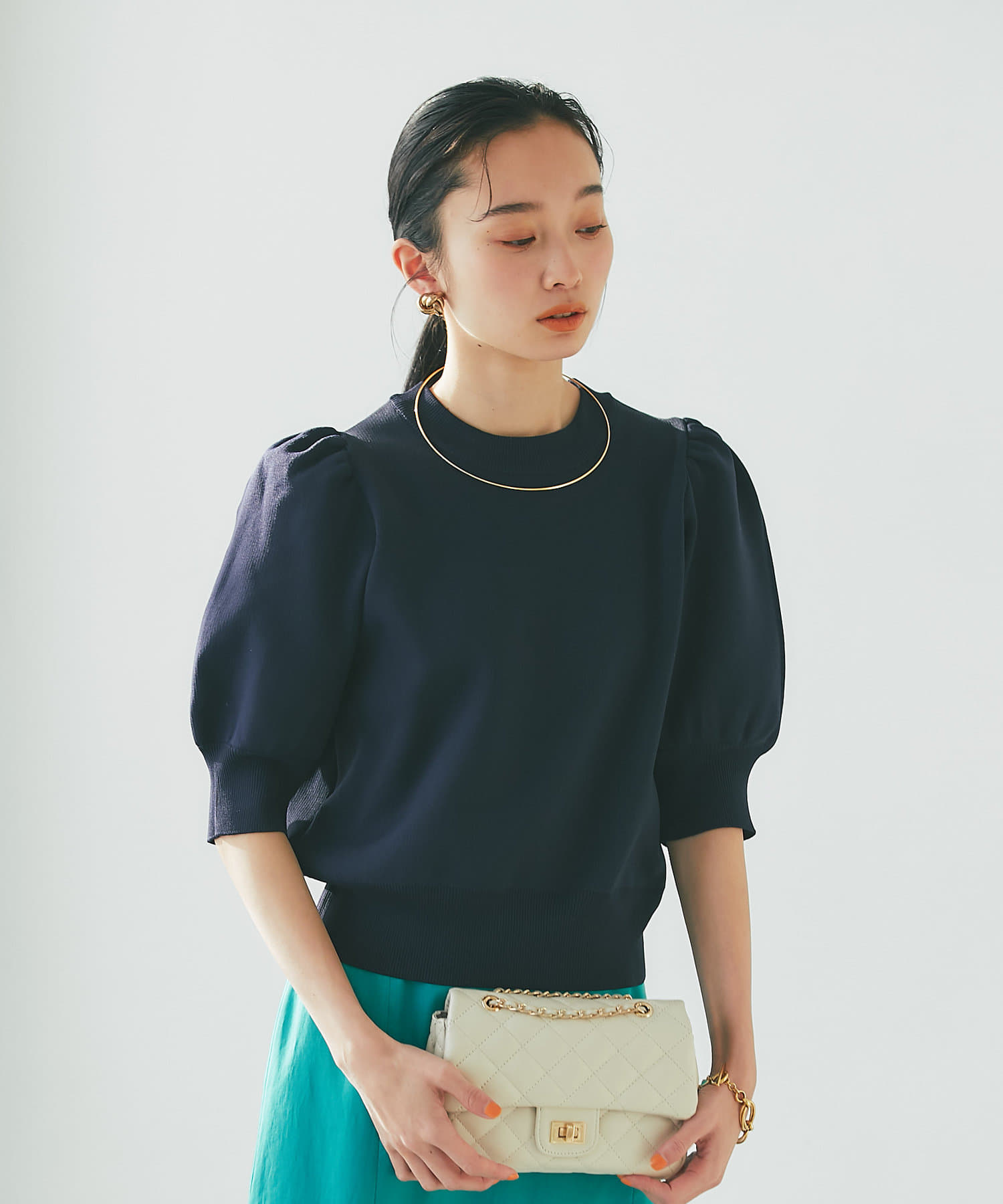 ボリュームのあるパフスリーブがリッチなプレーンニット