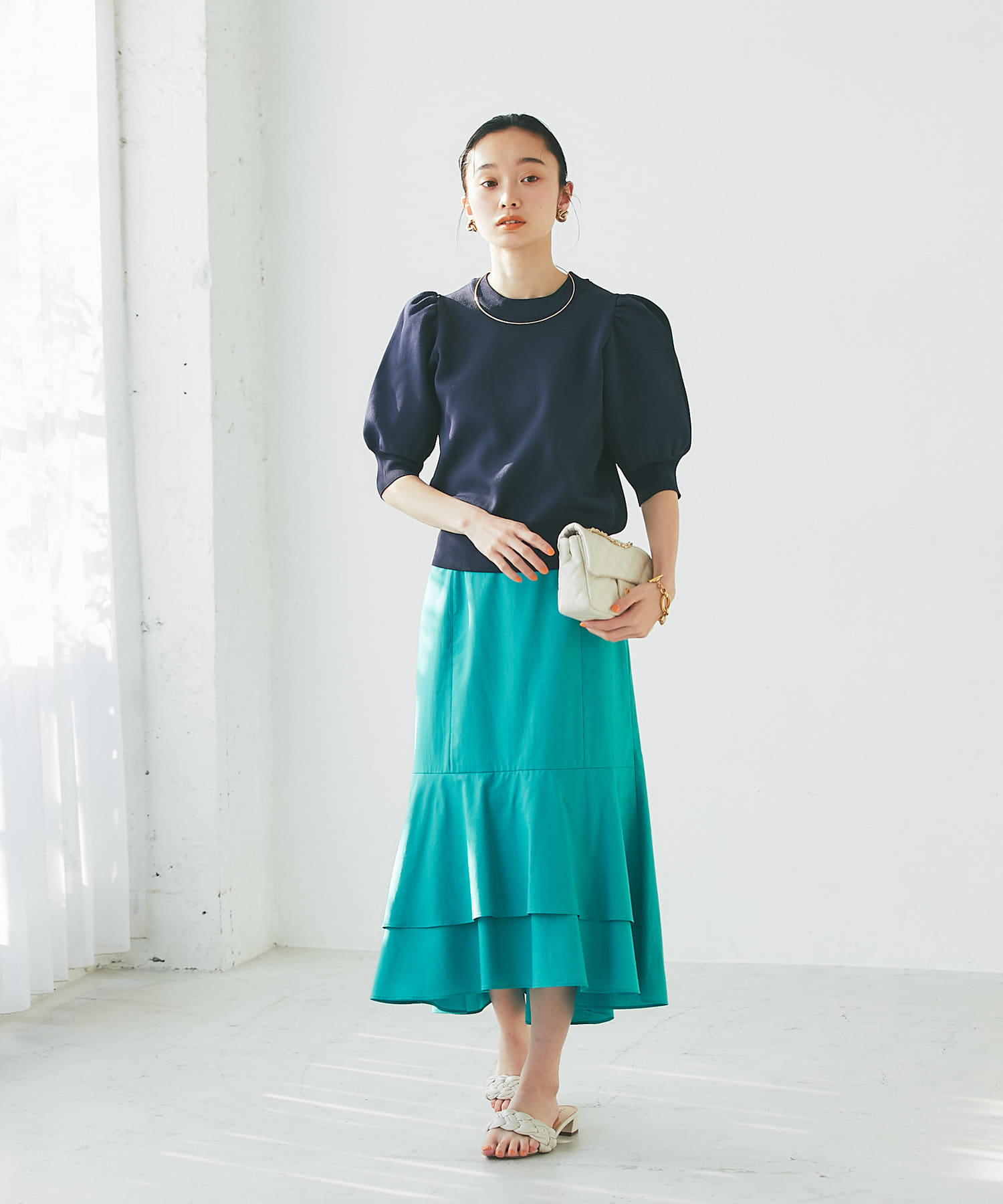 コンパクトな着丈なので、パンツでもスカートでもバランスが取りやすいです。