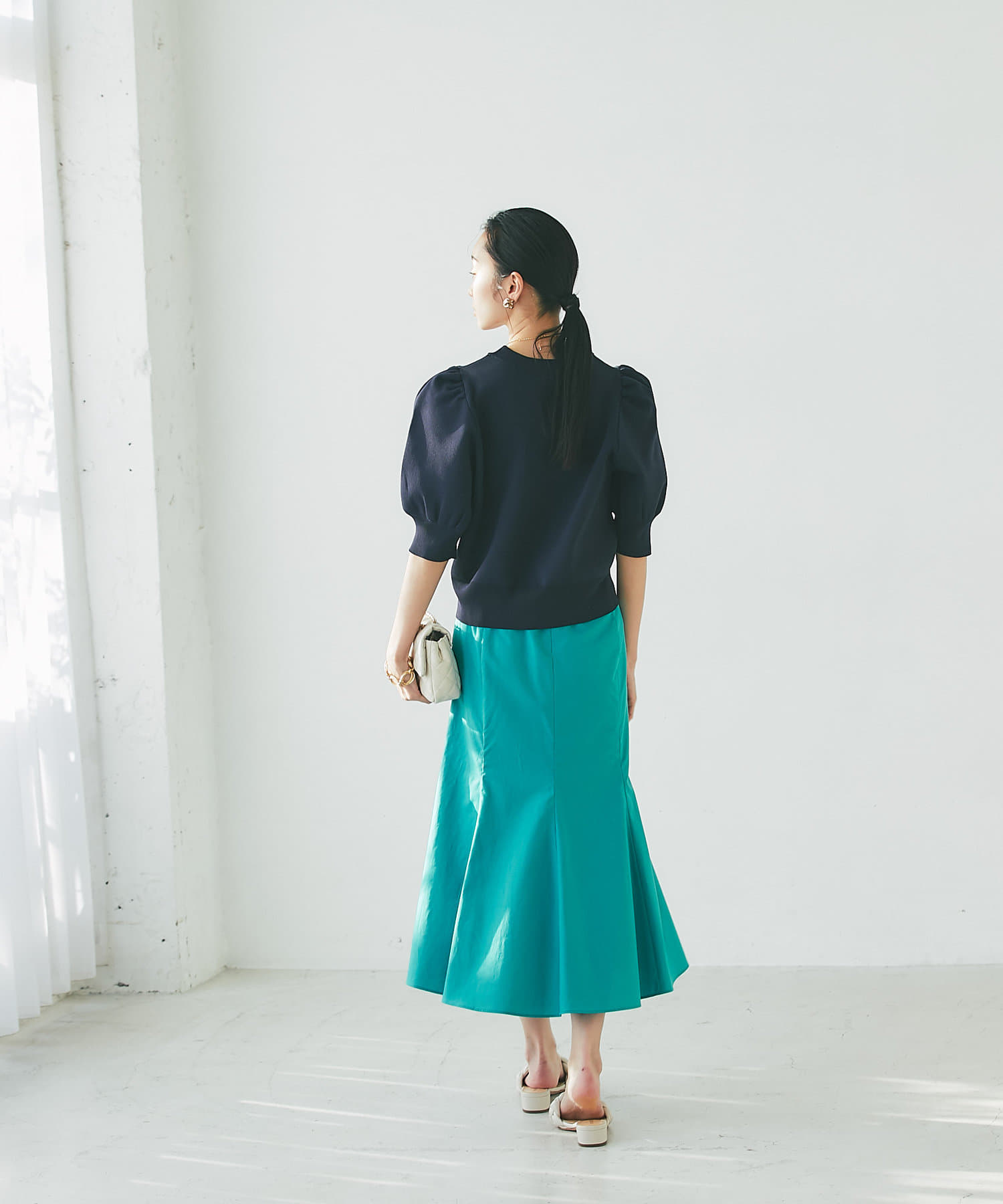 軽やかな五分袖で、オフィススタイルにもおすすめです。