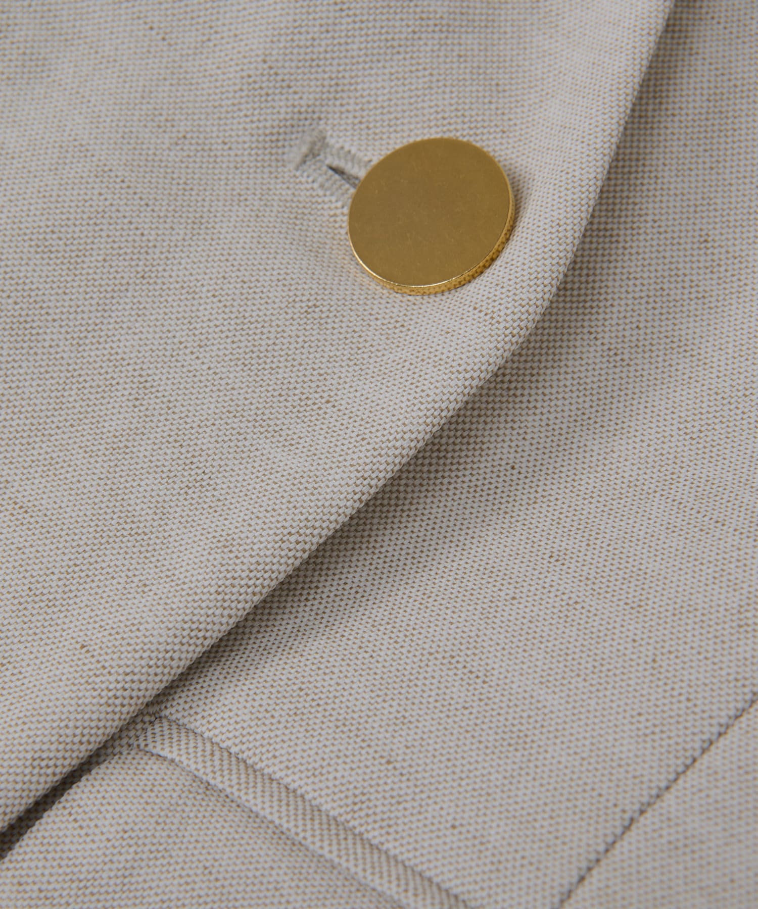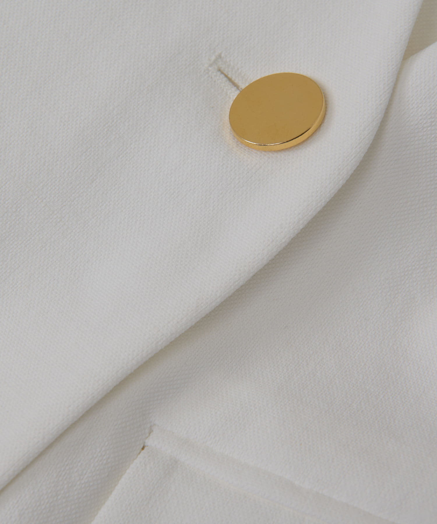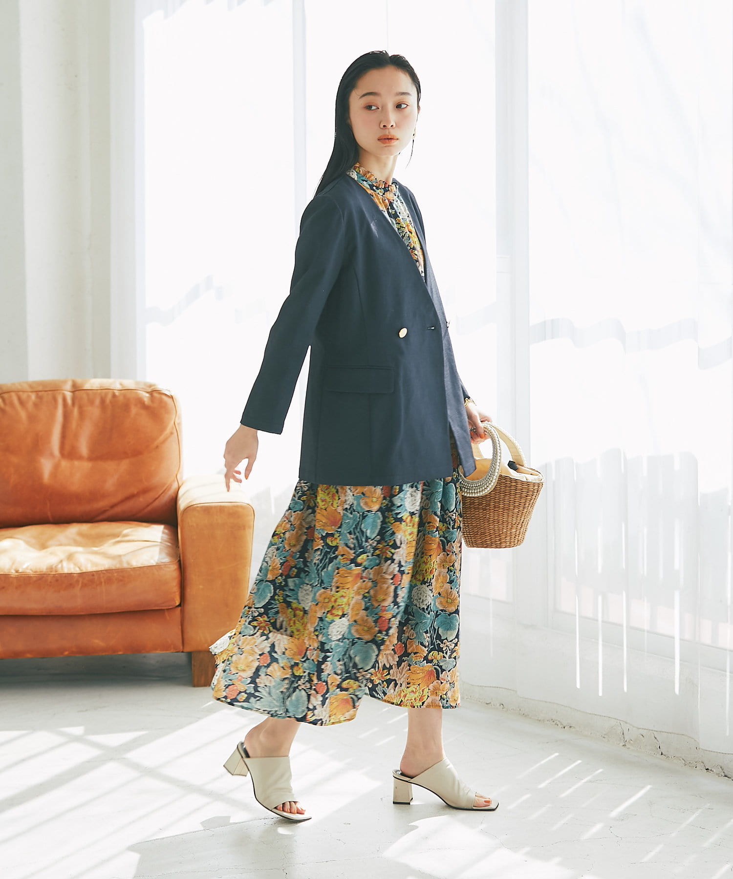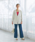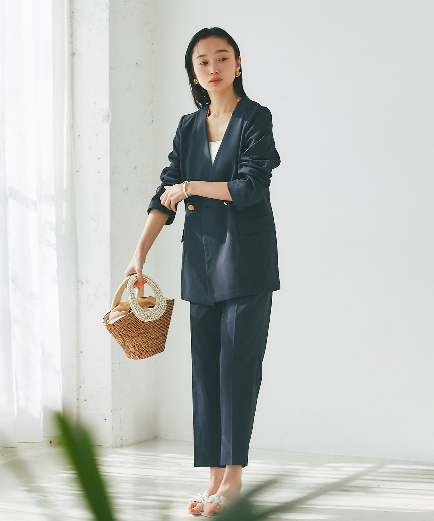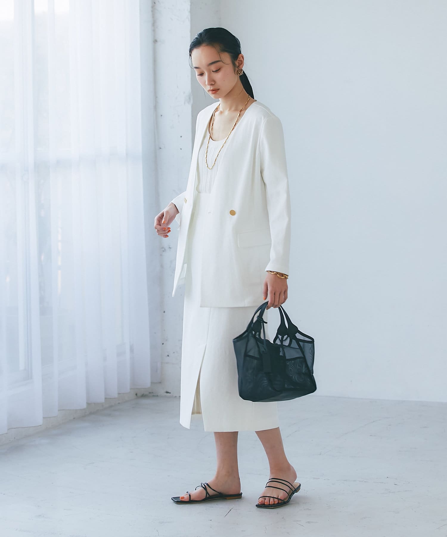 かしこまりすぎないノーカラーデザインでフェミニンな印象のダブルジャケット。