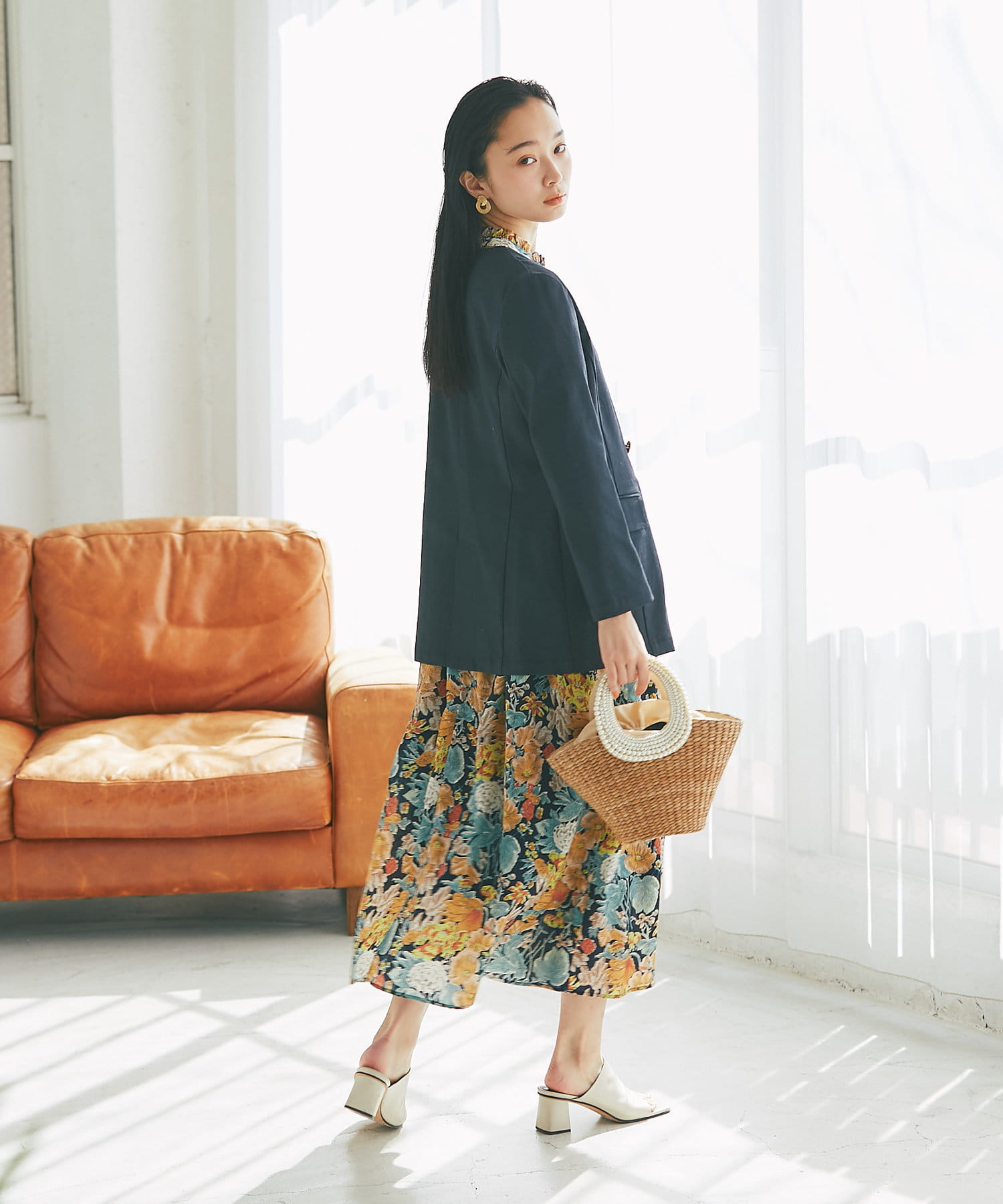同素材のスカート、パンツをご用意しているので、お好みに合わせてセットアップで着用できます。