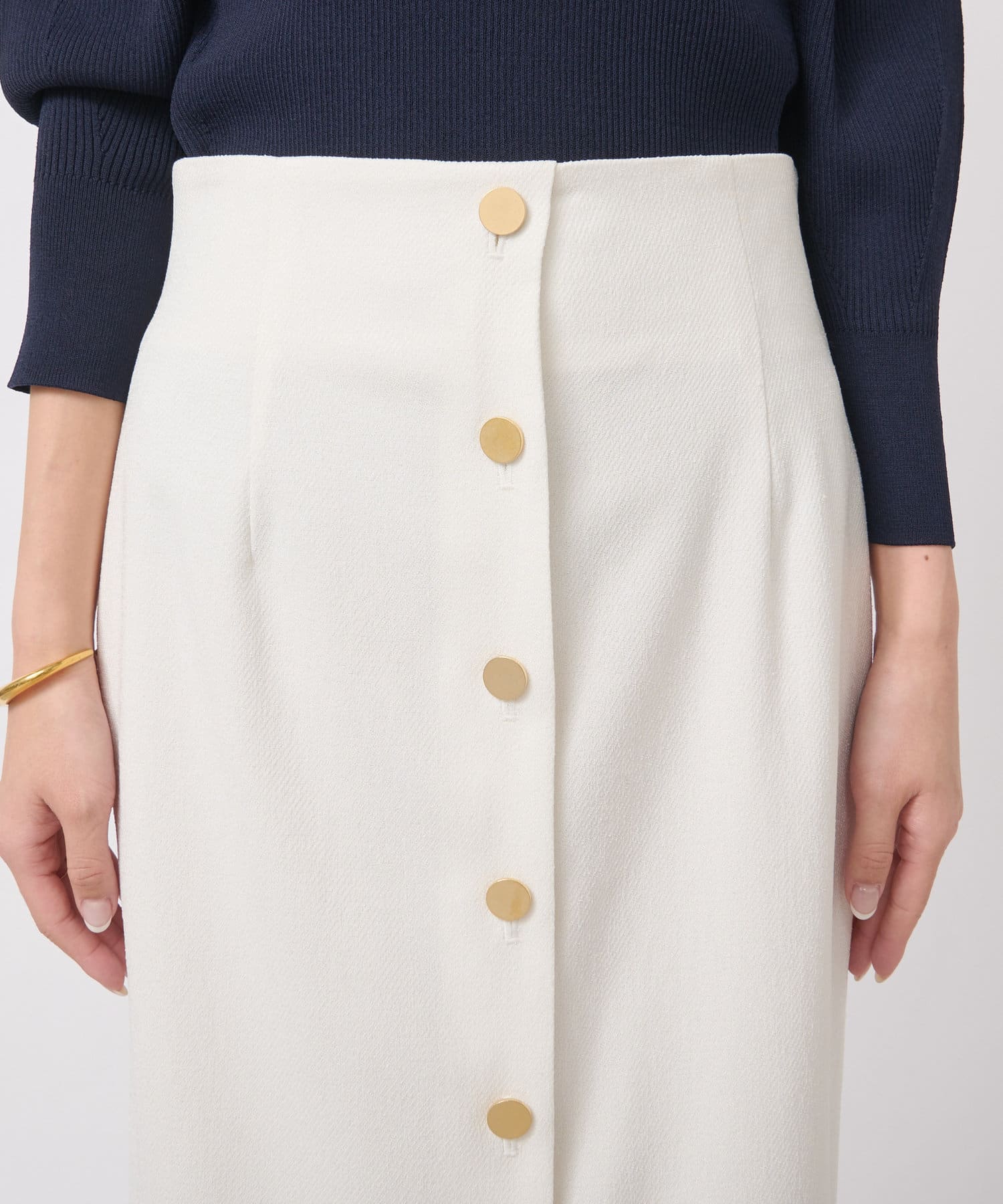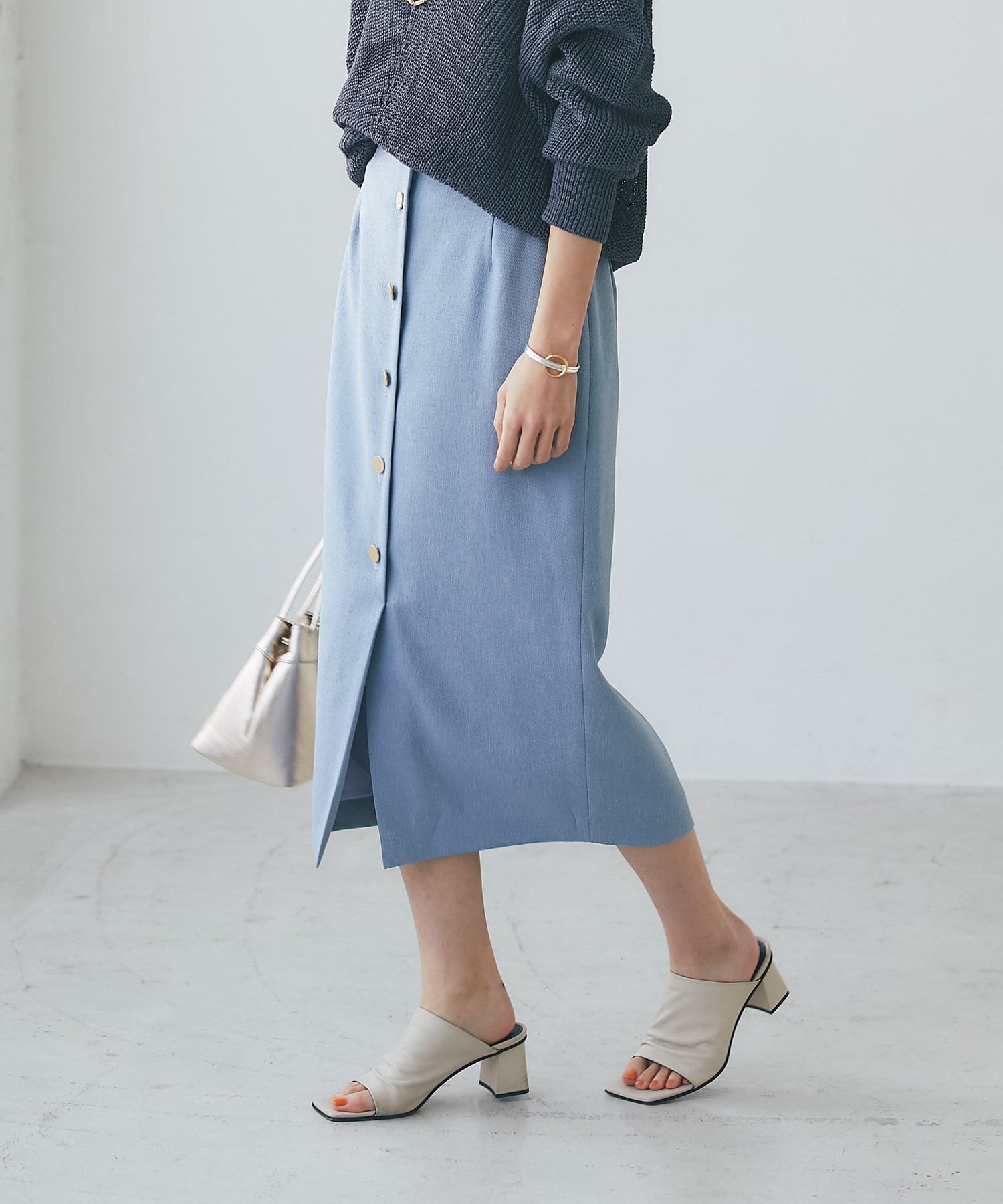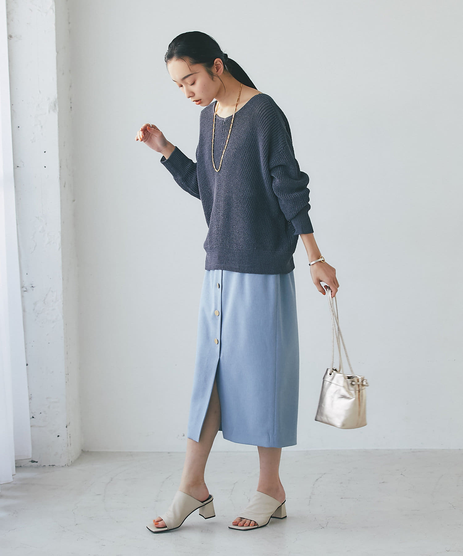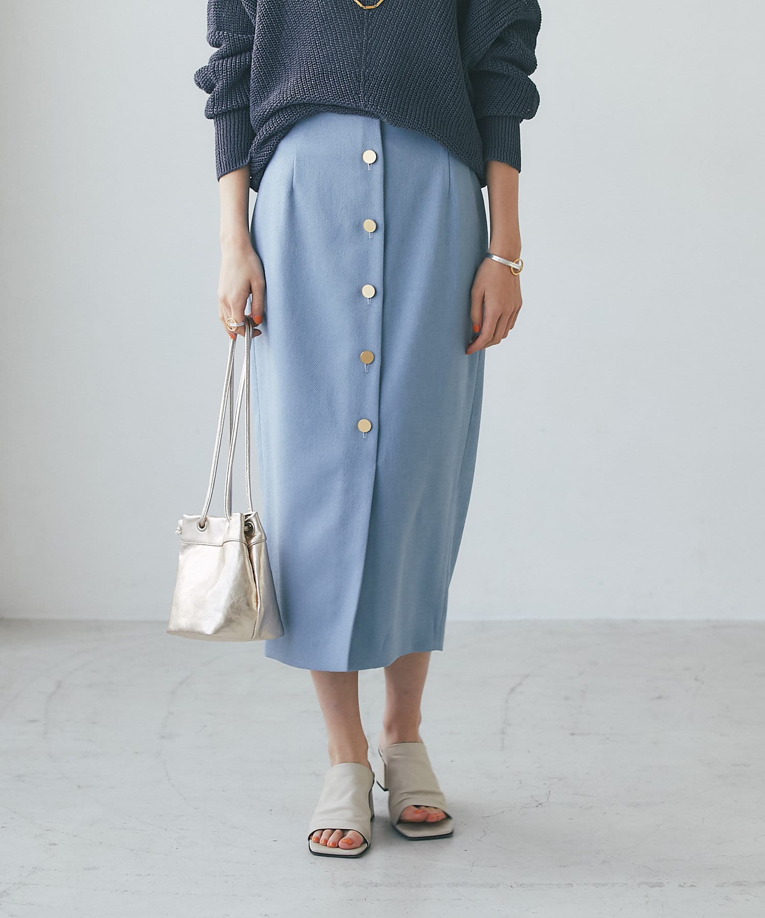 #大人カジュアル #きれいめコーデ #上品カジュアル #大人女子 #大人ガーリー #上品コーデ #ナロースカート #無地 #シンプル #スリット #ロングスカート #美シルエット #フェミニン #金ボタン #ドライ