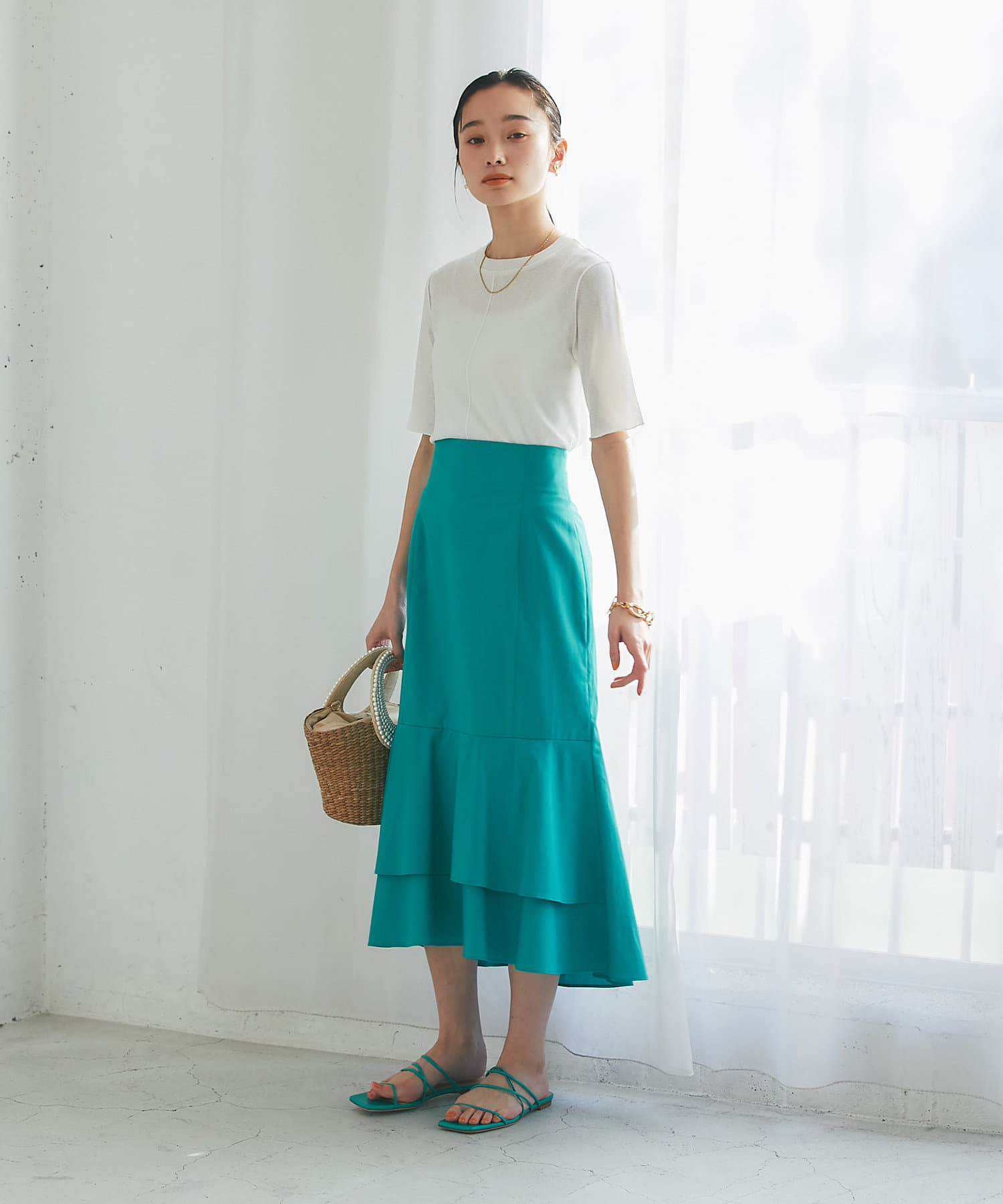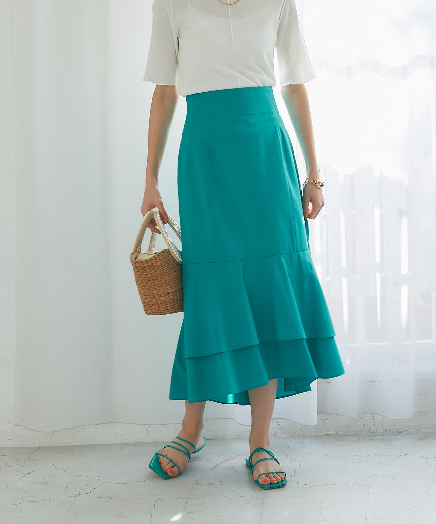 ラブティックボンボンでも人気のマーメイドラインのスカートにティアードをプラスした、大変華やかなアイテムです。