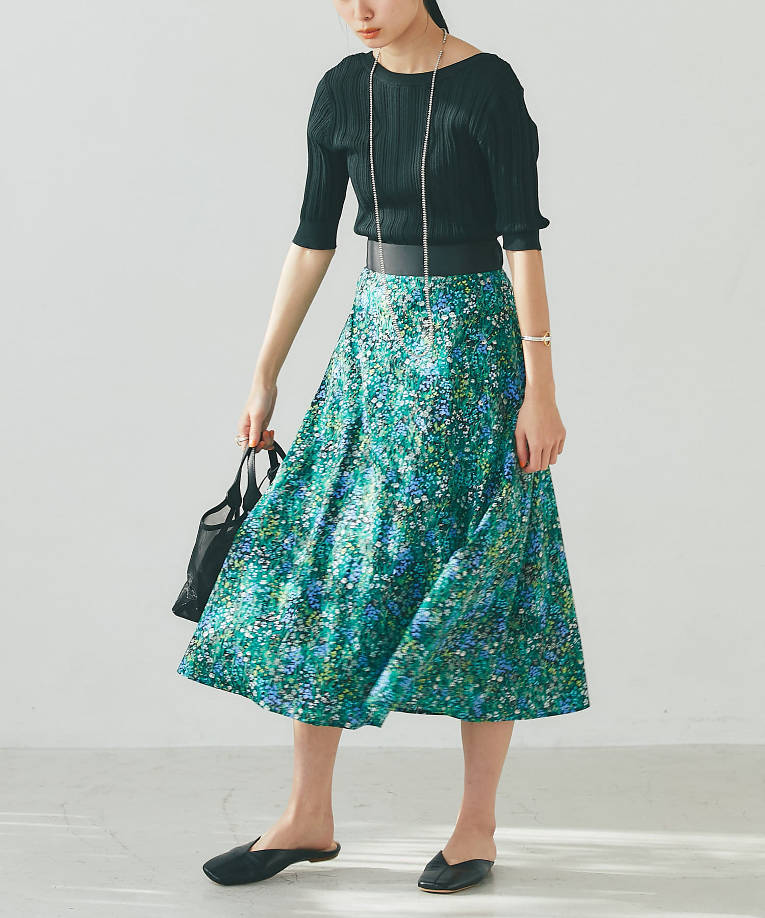 コンパクトなニットやカットソーとの相性が抜群です。