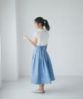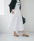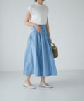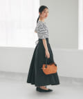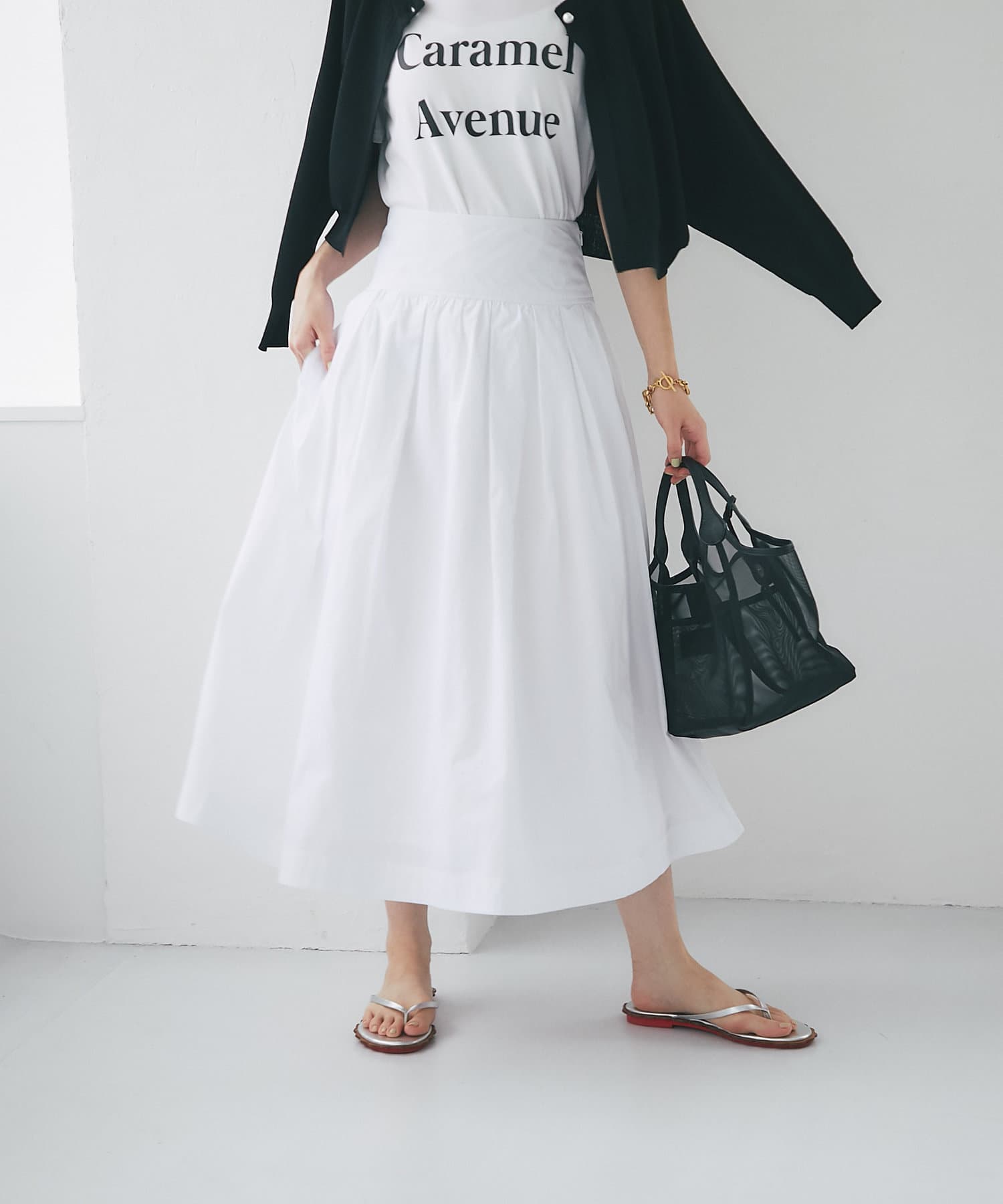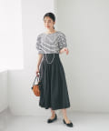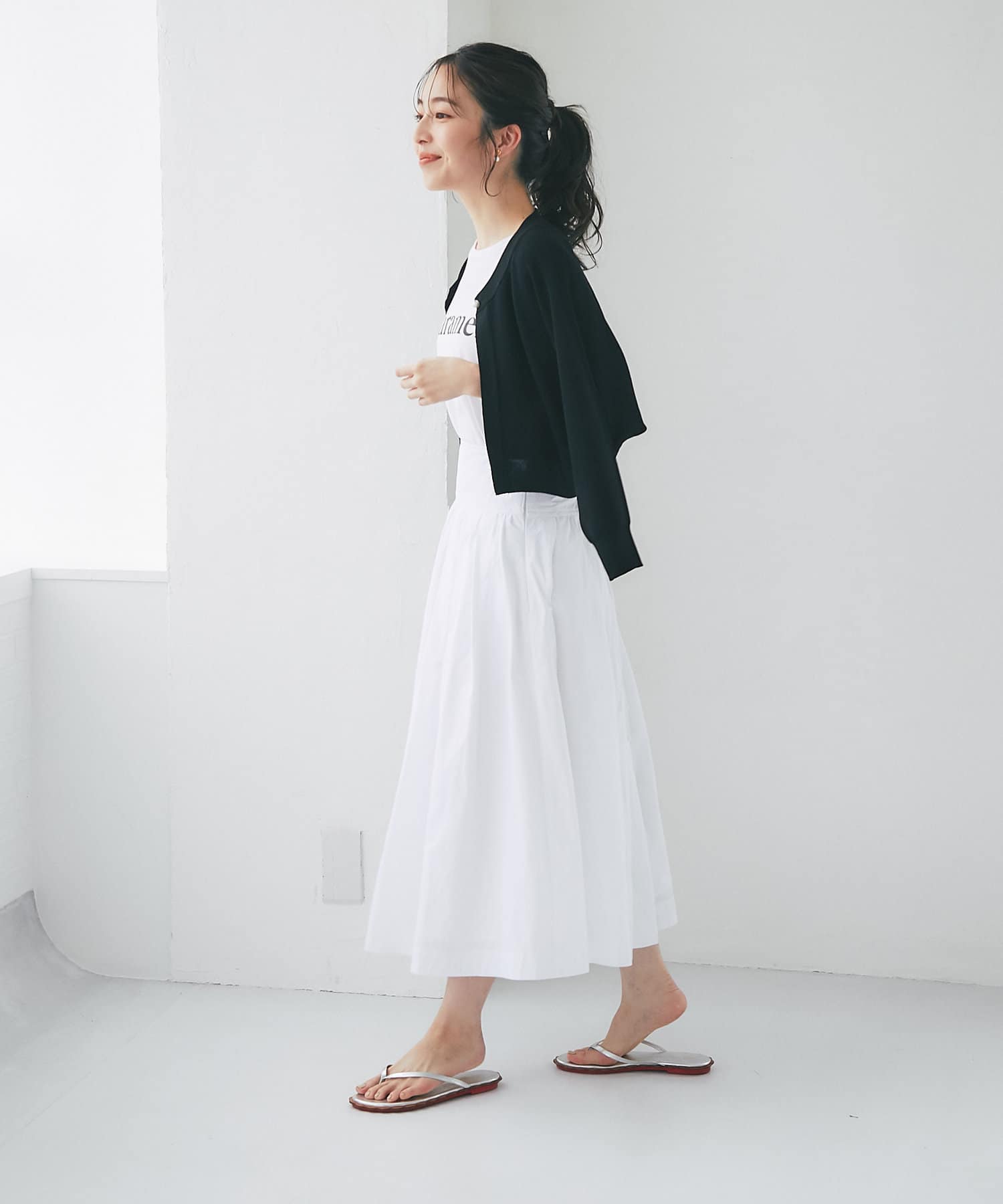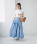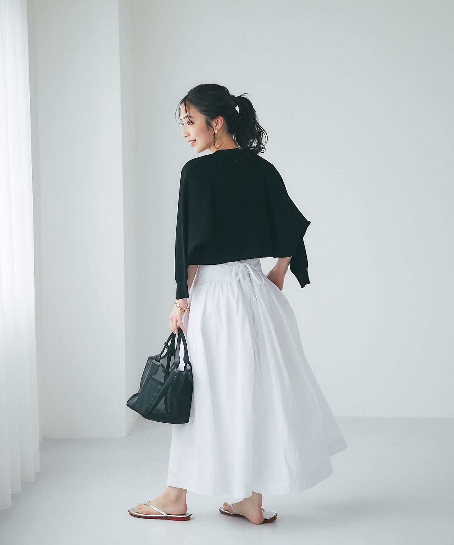 トップスをインしてウエストデザインを強調するとスタイルアップも期待できます。