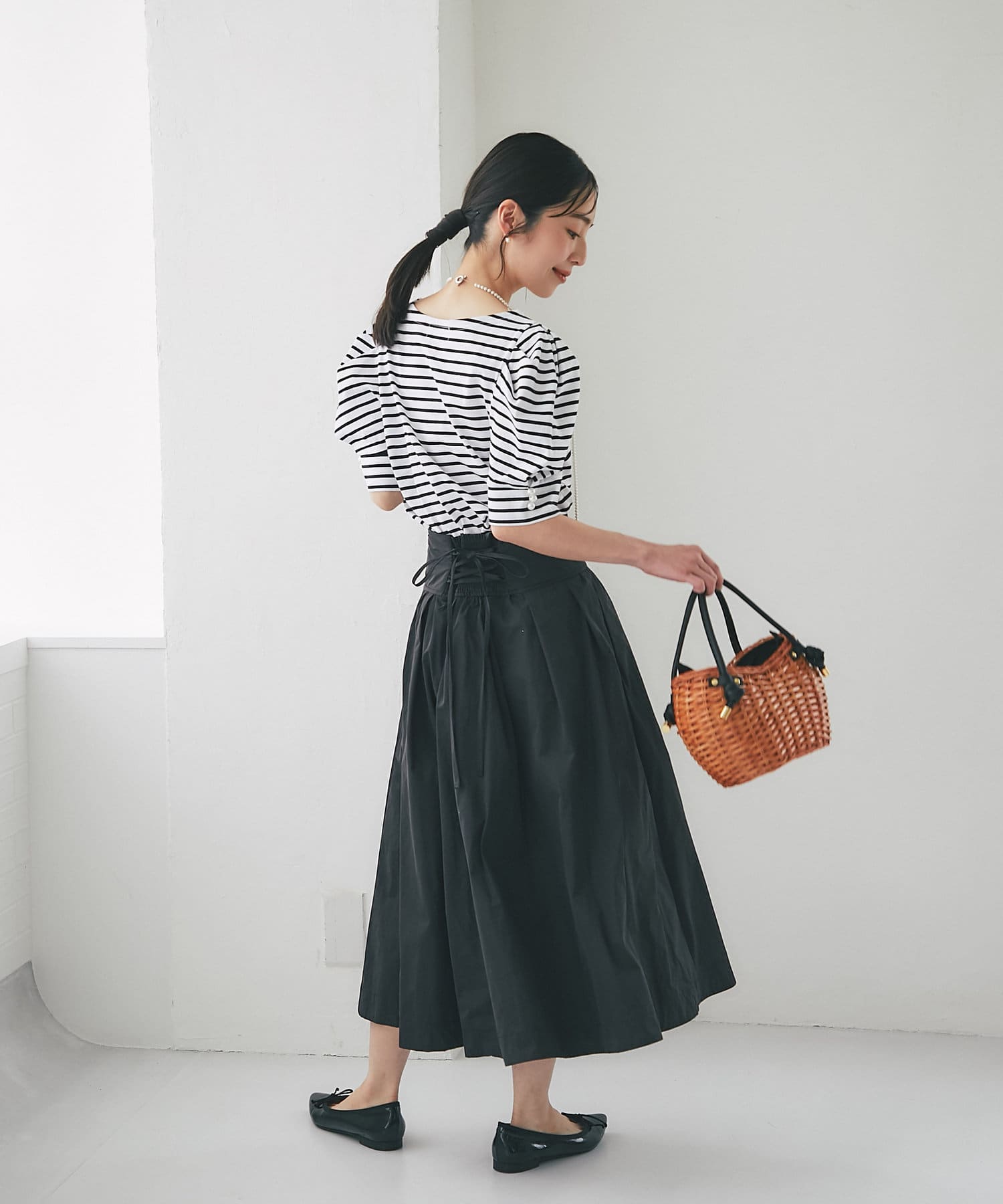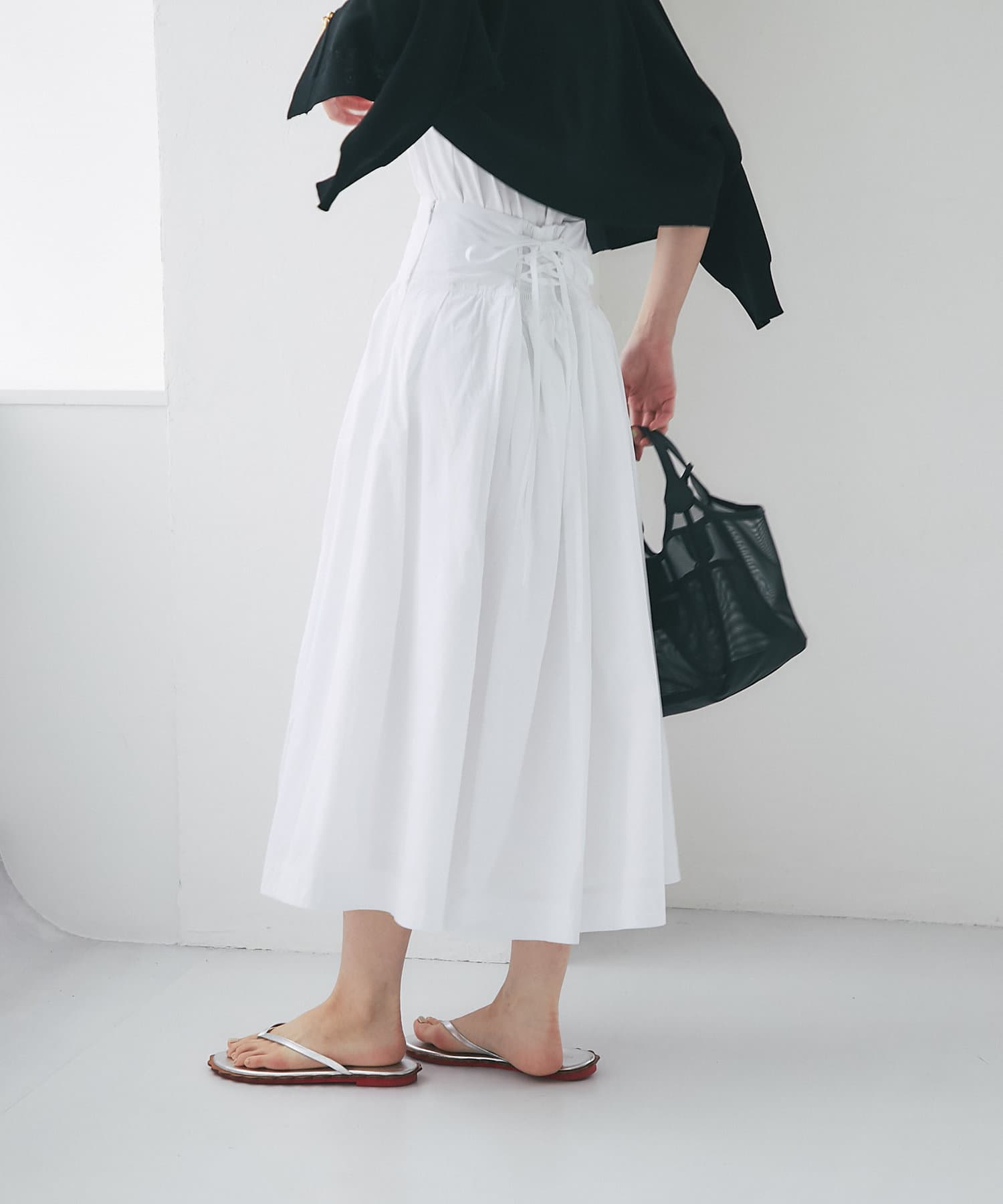バックデザインはレースアップ仕様なので、キュッと結んで後ろ姿も美人に。