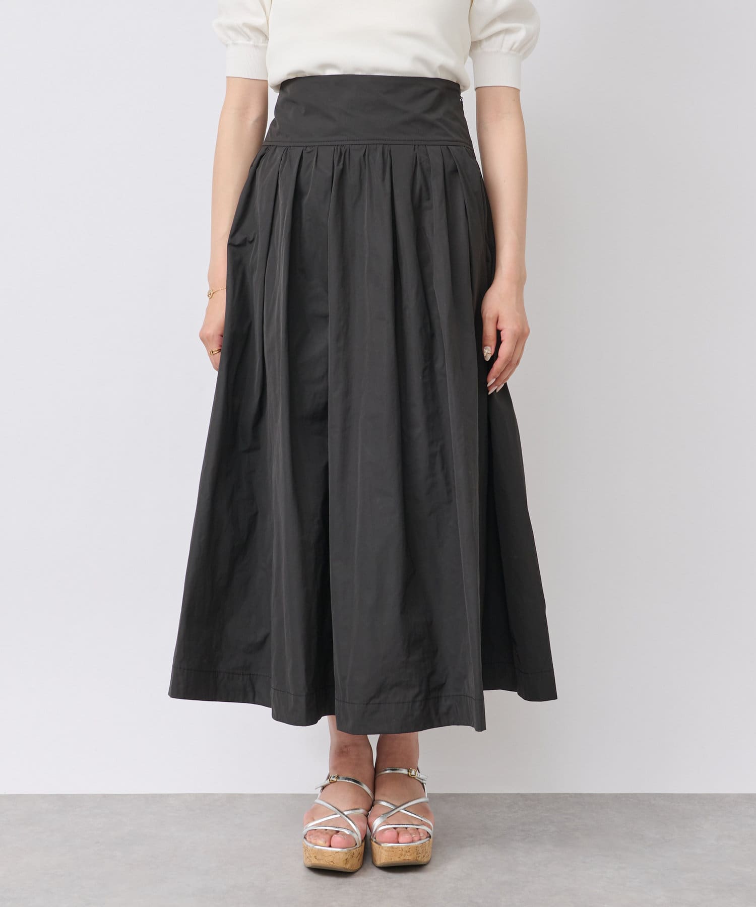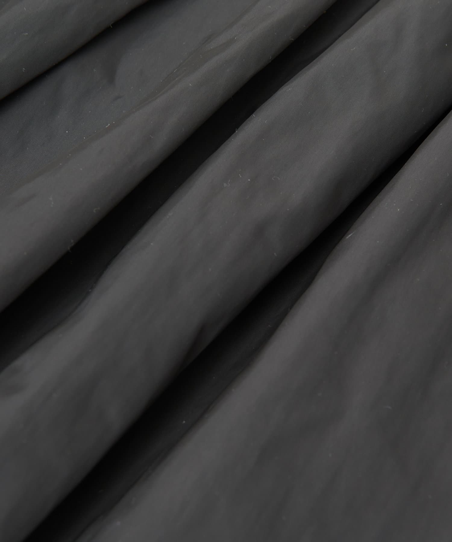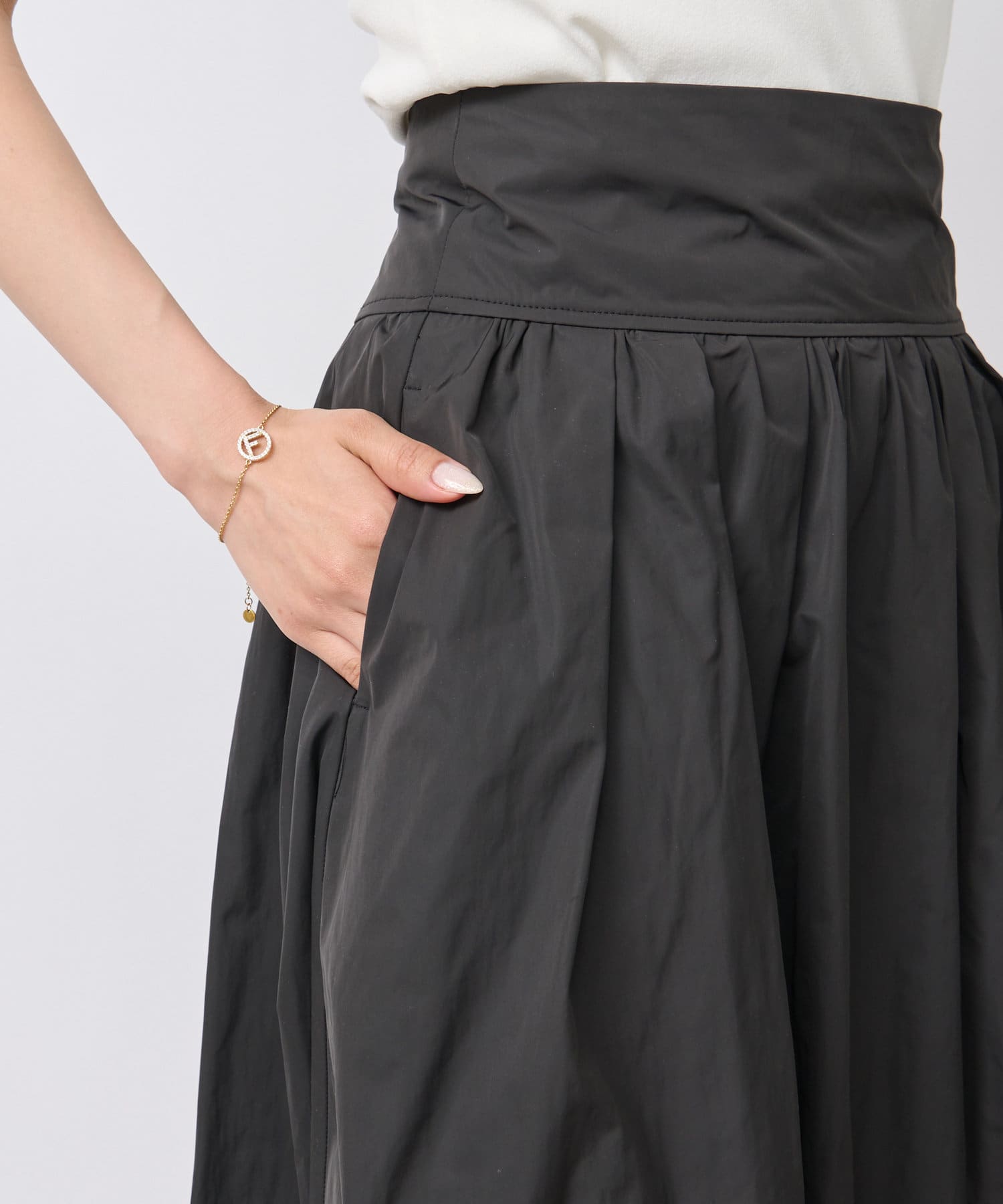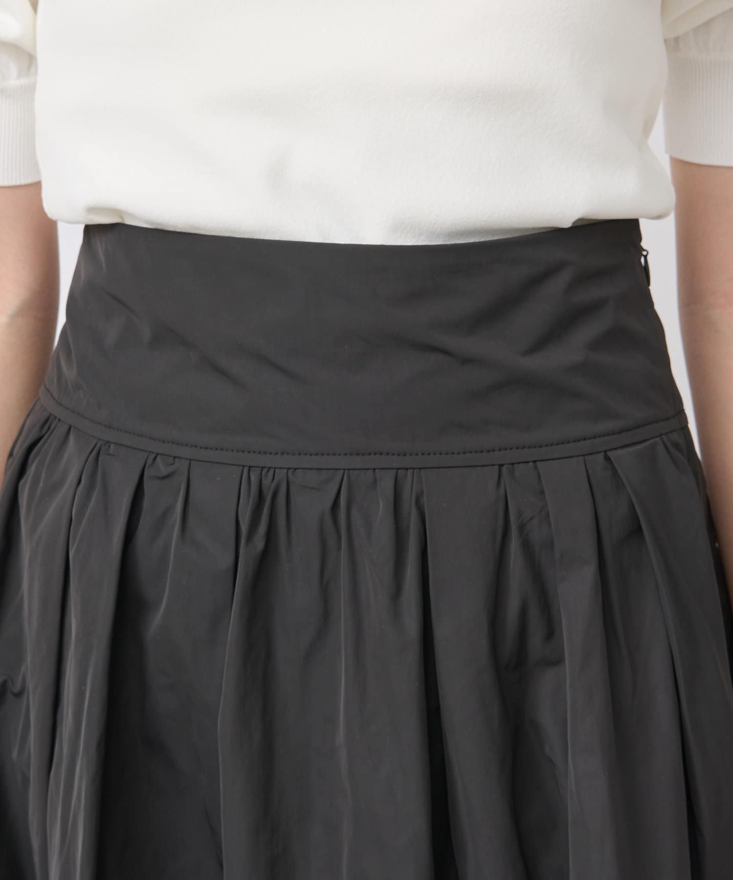ハリのあるタフタ素材で、たっぷりギャザーとタックを入れたふんわりシルエットです。