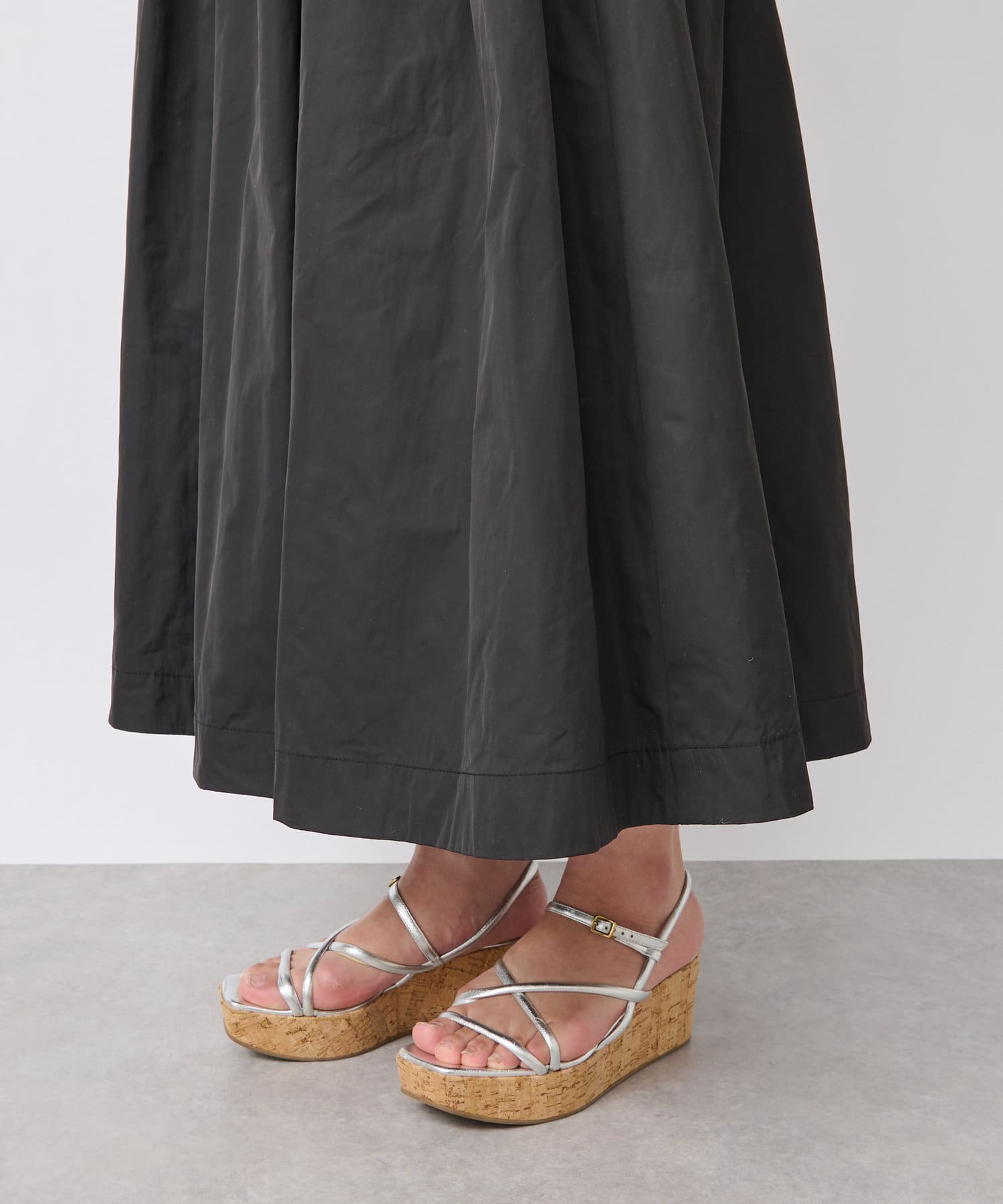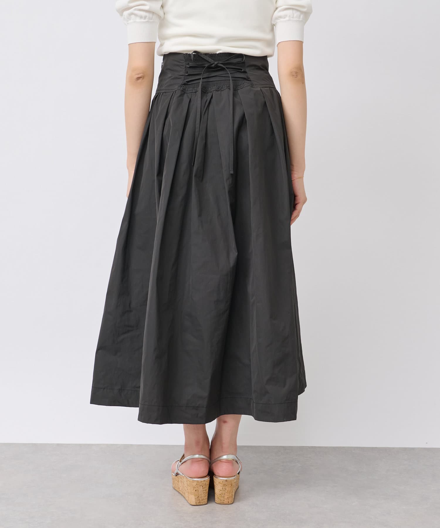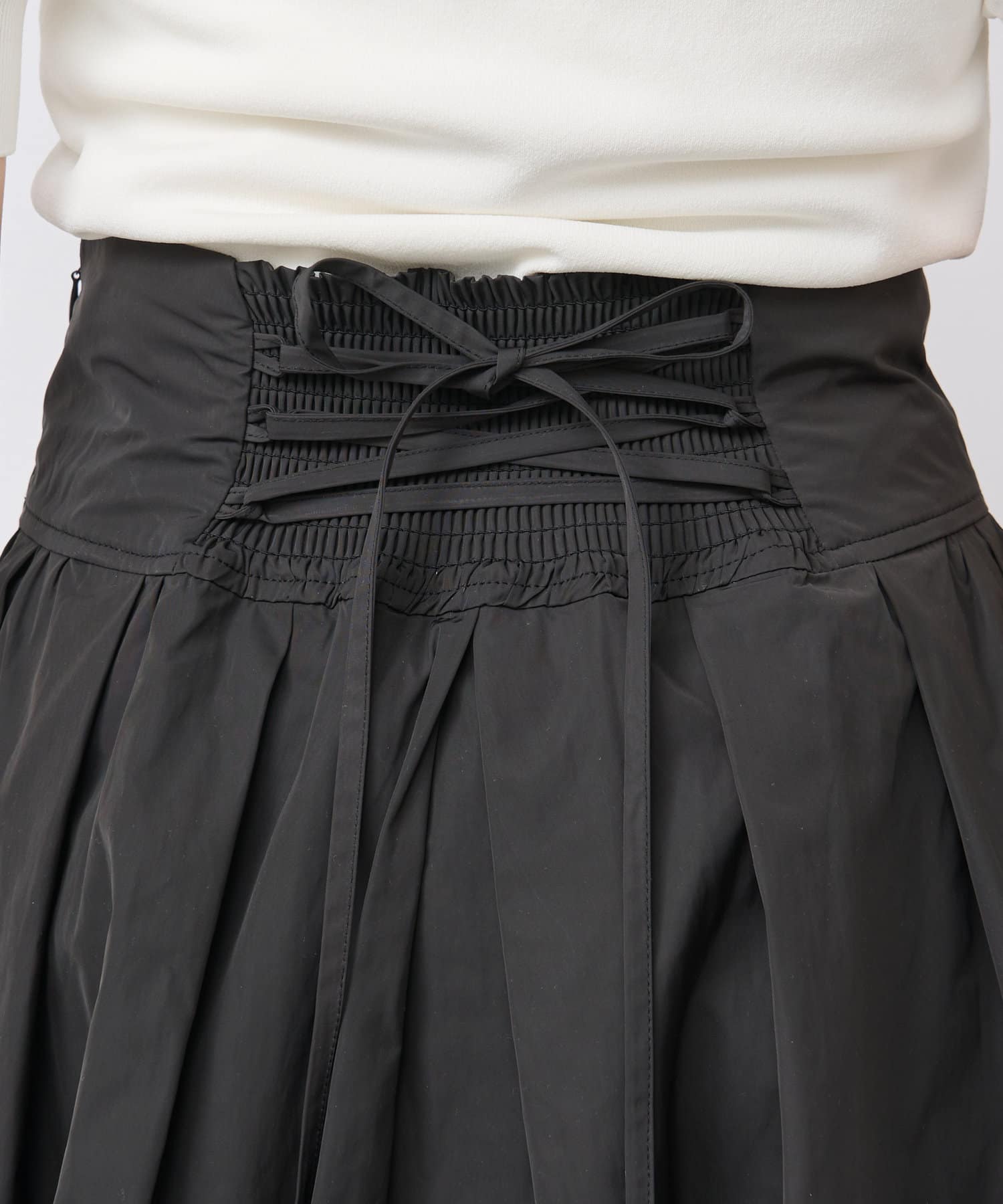 【低身長サイズあり・着丈が選べる】タフタバックレースアップギャザースカート