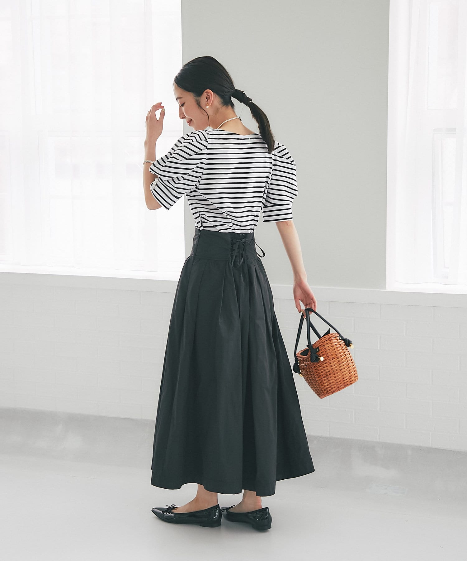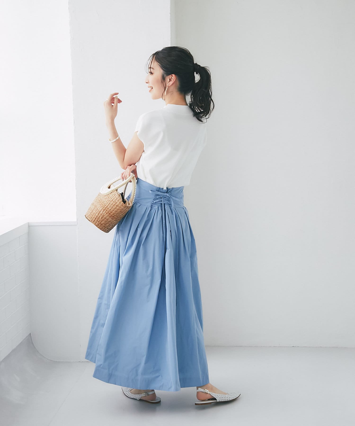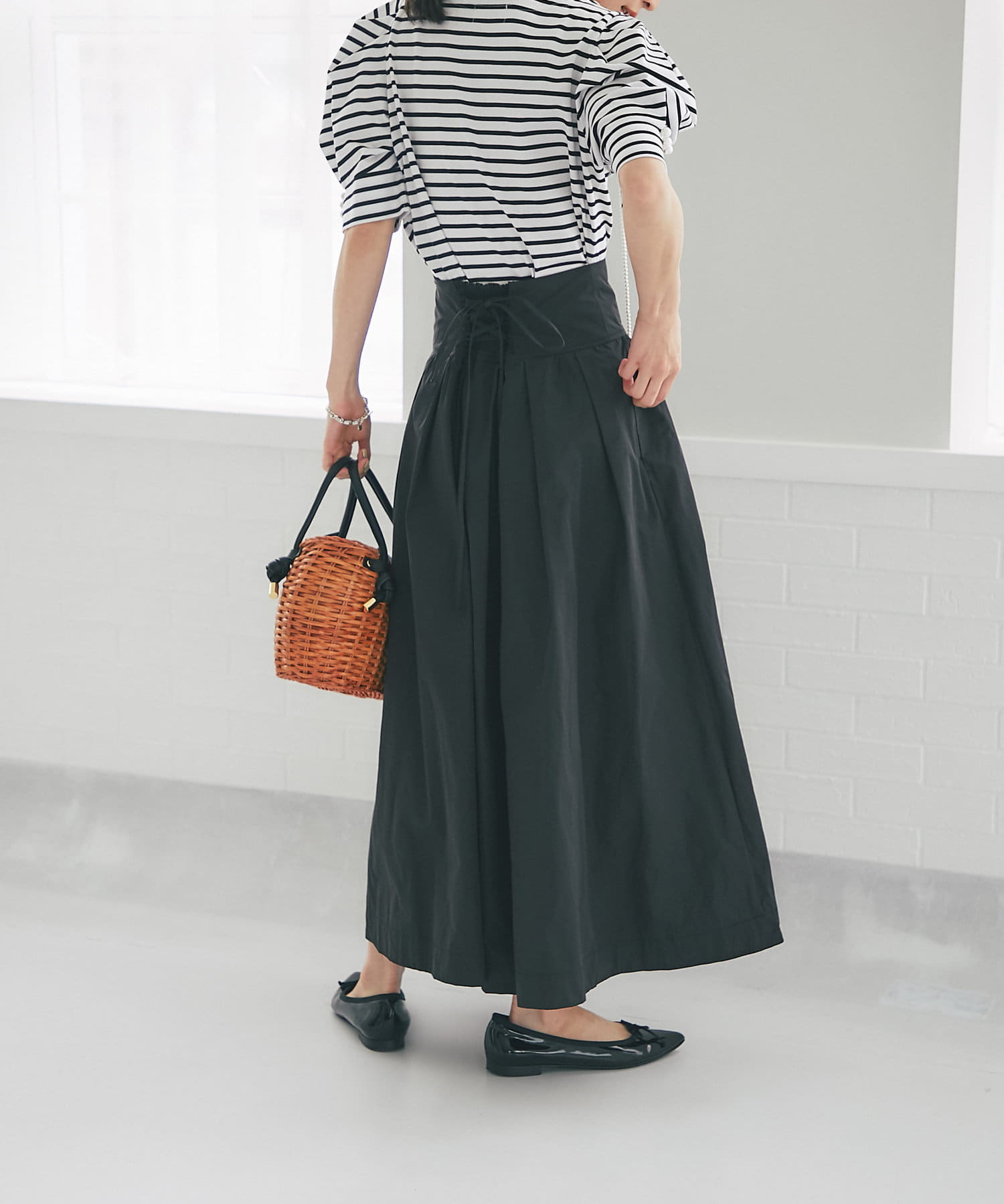 #大人コーデ #きれいめコーデ #上品コーデ #大人女子 #大人ガーリー #上品スカート #タフタ #無地 #ハイウエスト #フレア #マキシ丈 #マキシスカート #ロングスカート #美シルエット #フェミニン #レースアップ #オフィス #デート #デート服 #モテ服 #モテ女子 #モテコーデ #スタイルアップ #低身長女子 #低身長 #小柄女子 #小柄