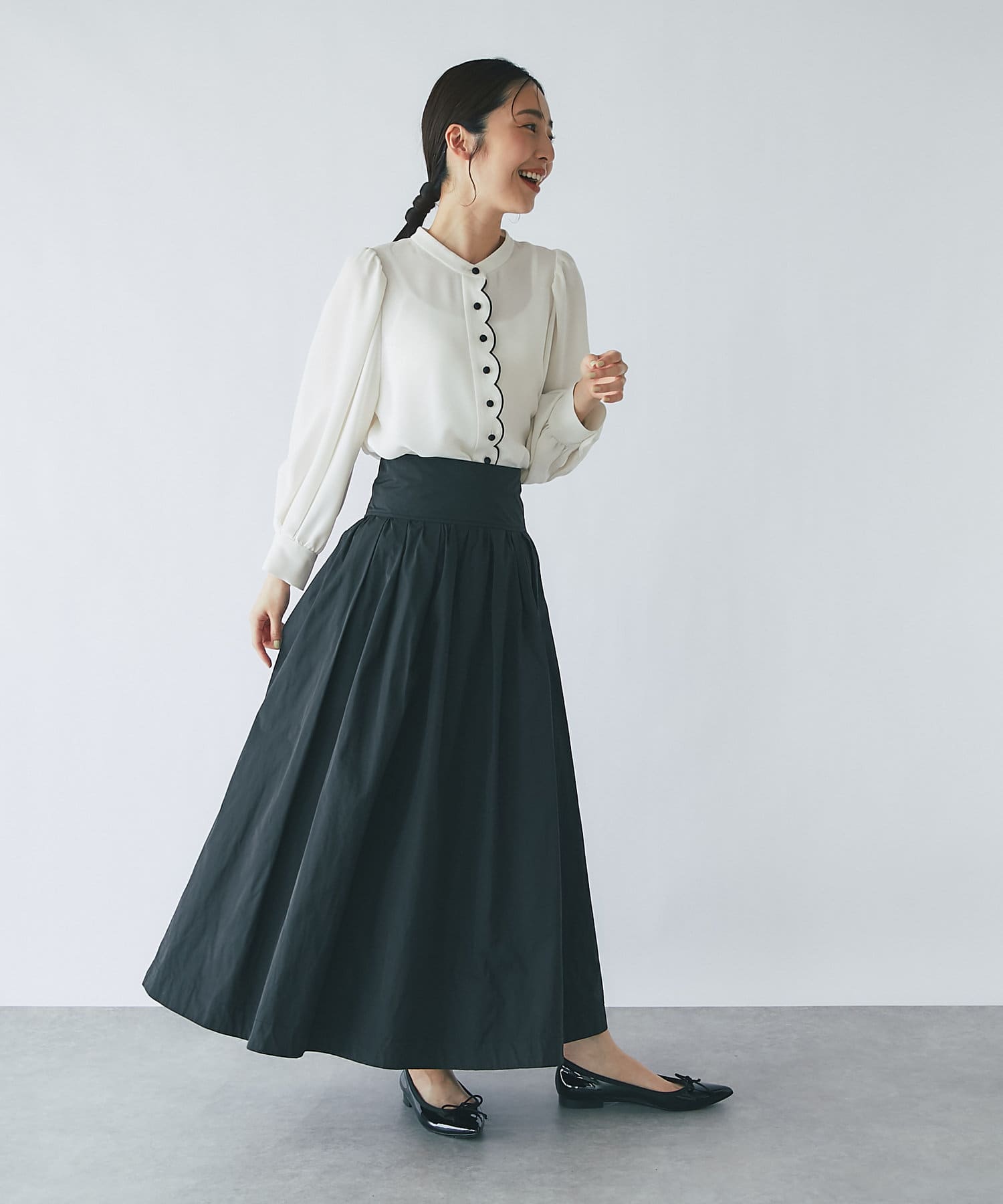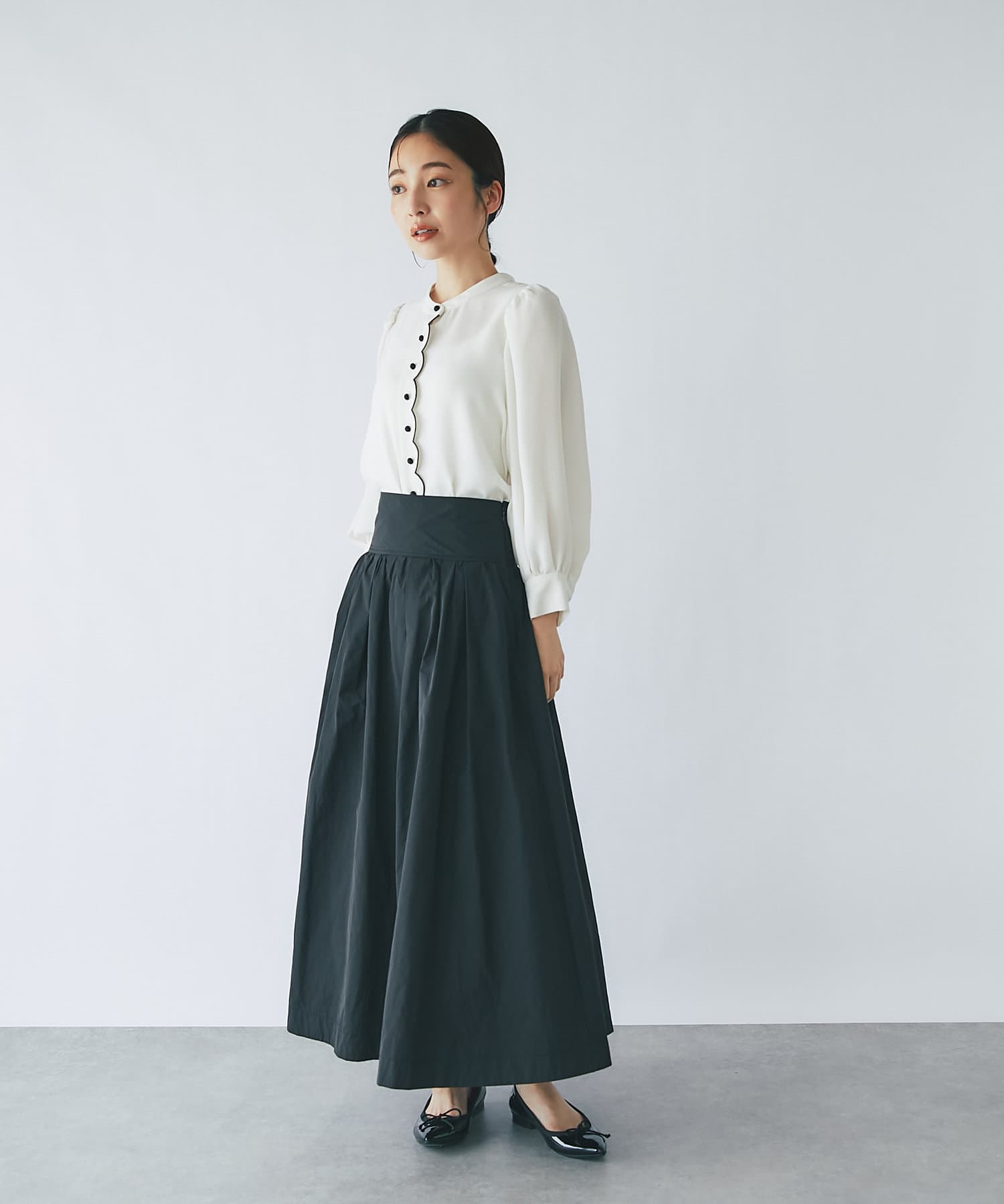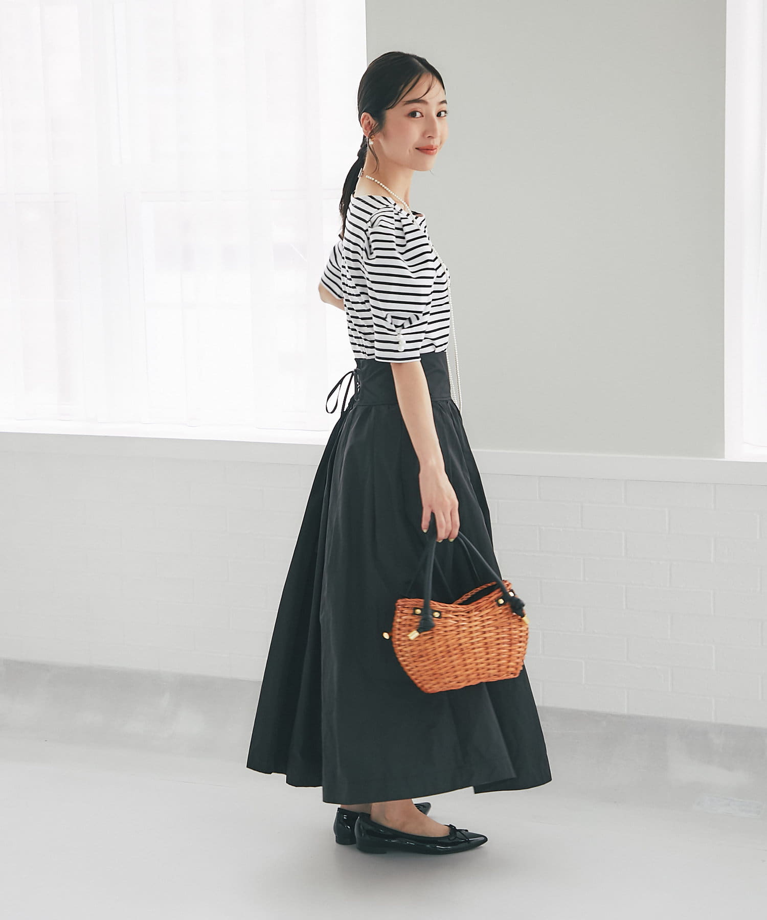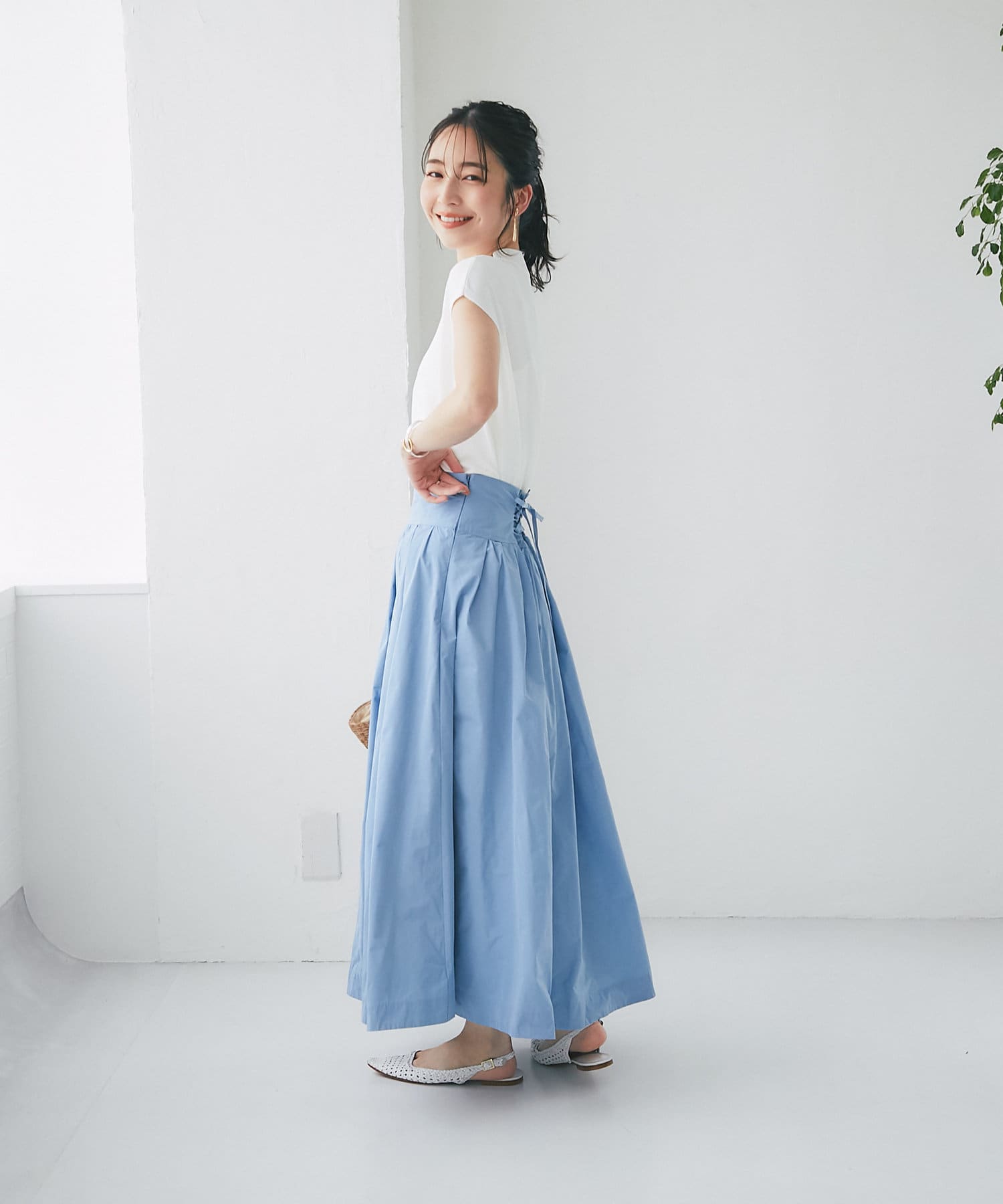 #大人コーデ #きれいめコーデ #上品コーデ #大人女子 #大人ガーリー #上品スカート #タフタ #無地 #ハイウエスト #フレア #マキシ丈 #マキシスカート #ロングスカート #美シルエット #フェミニン #レースアップ #オフィス #デート #デート服 #モテ服 #モテ女子 #モテコーデ #スタイルアップ #低身長女子 #低身長 #小柄女子 #小柄