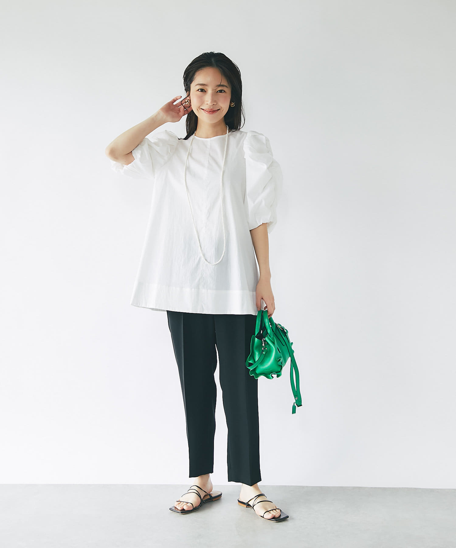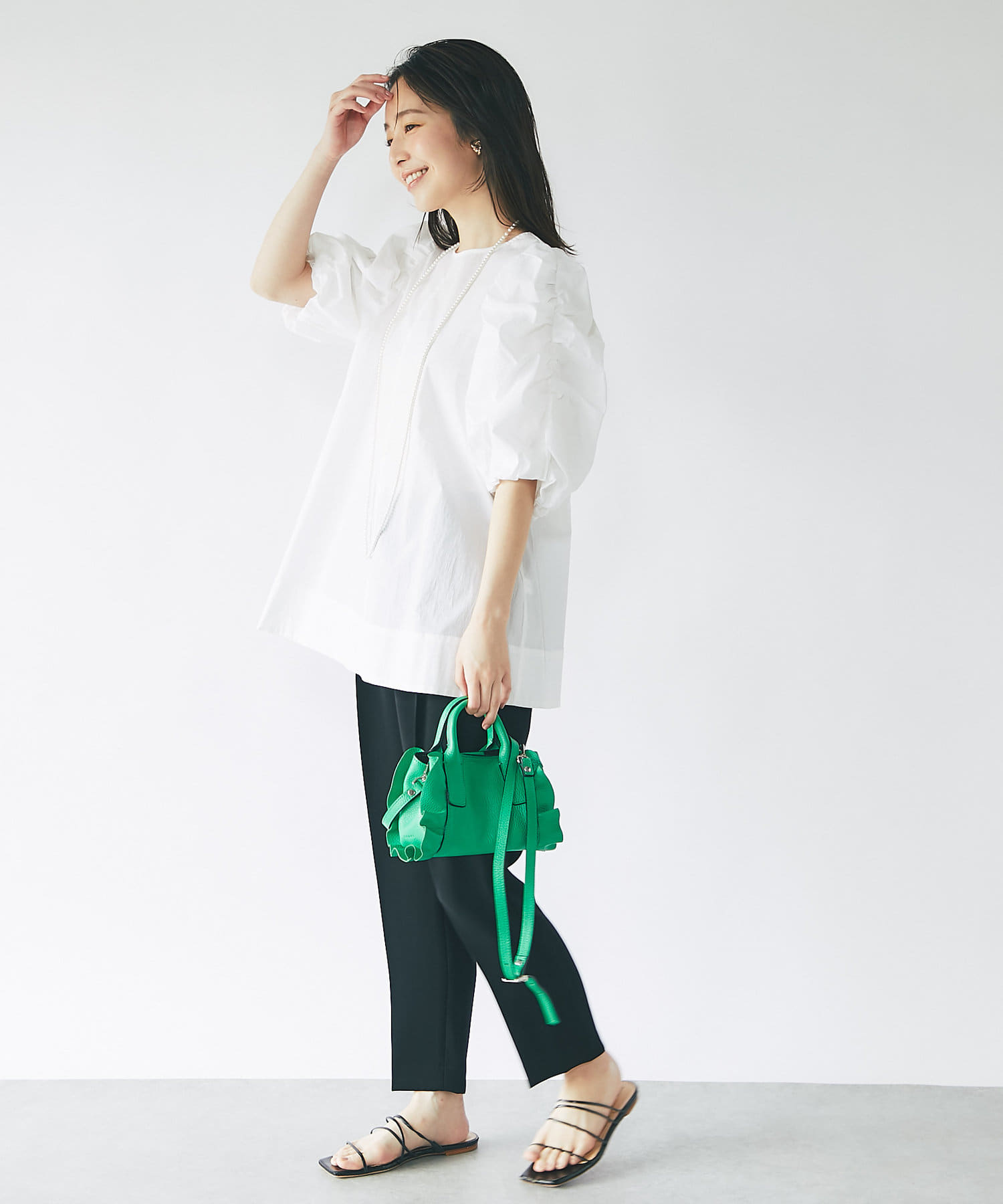 ふんわりと膨らむ袖が華やかなパワショルブラウス。