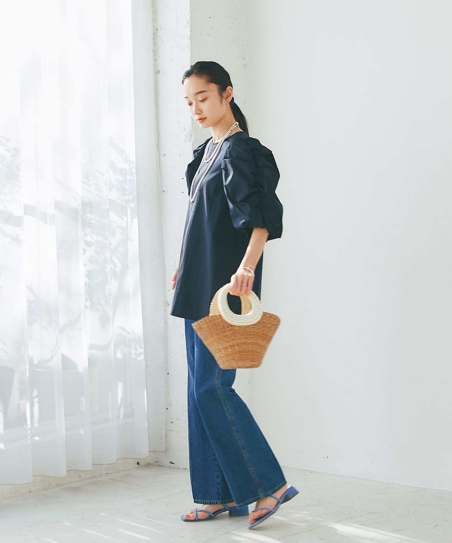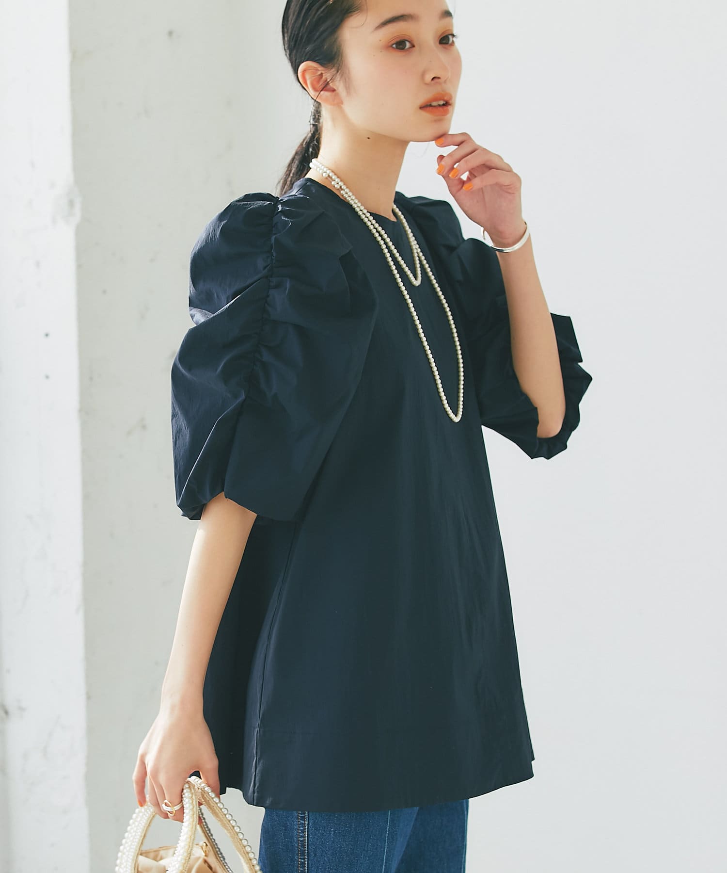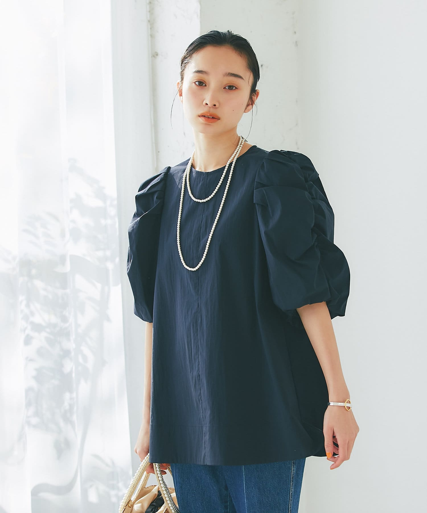 ボリューミーな袖が目を惹くパワショルブラウス