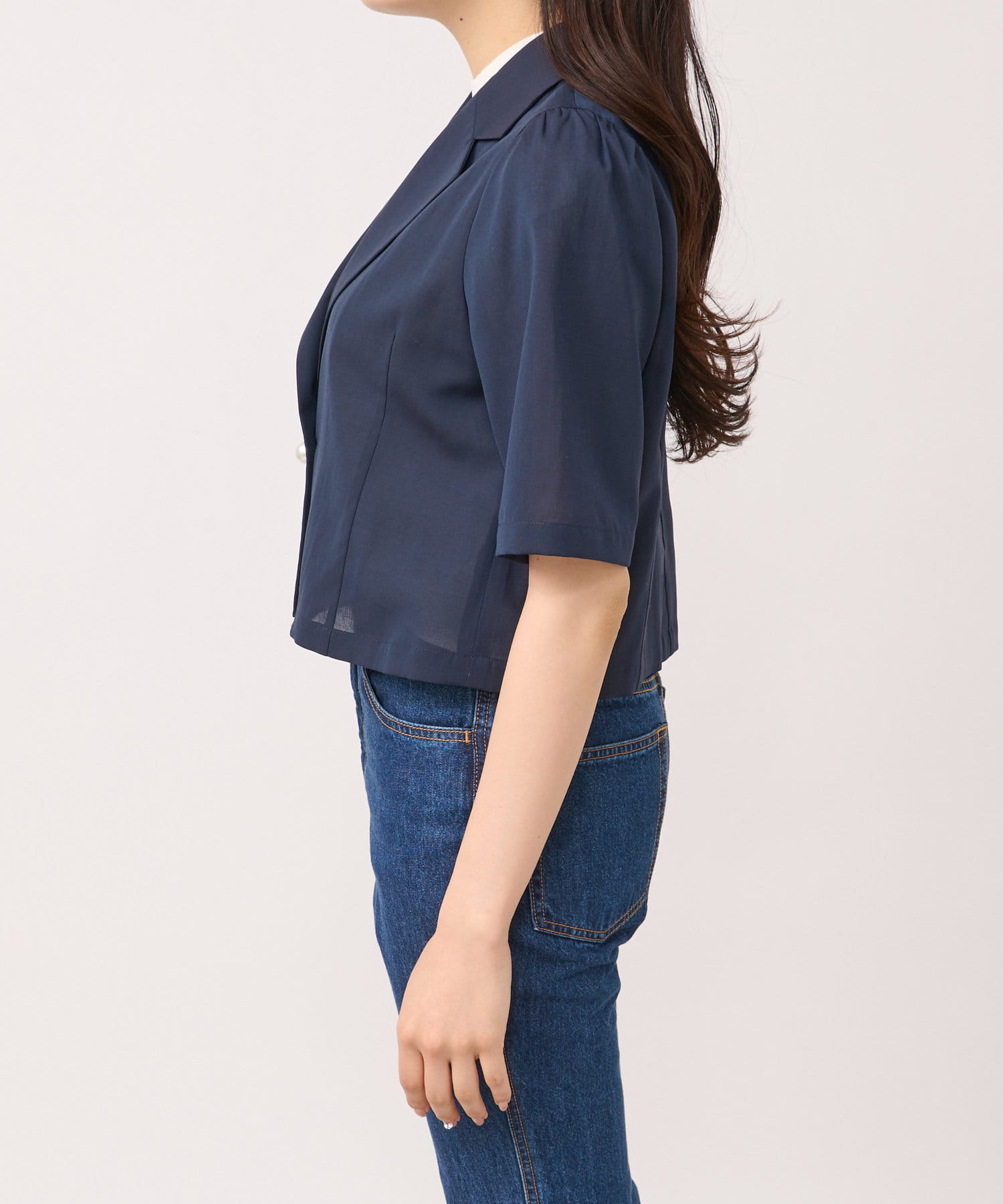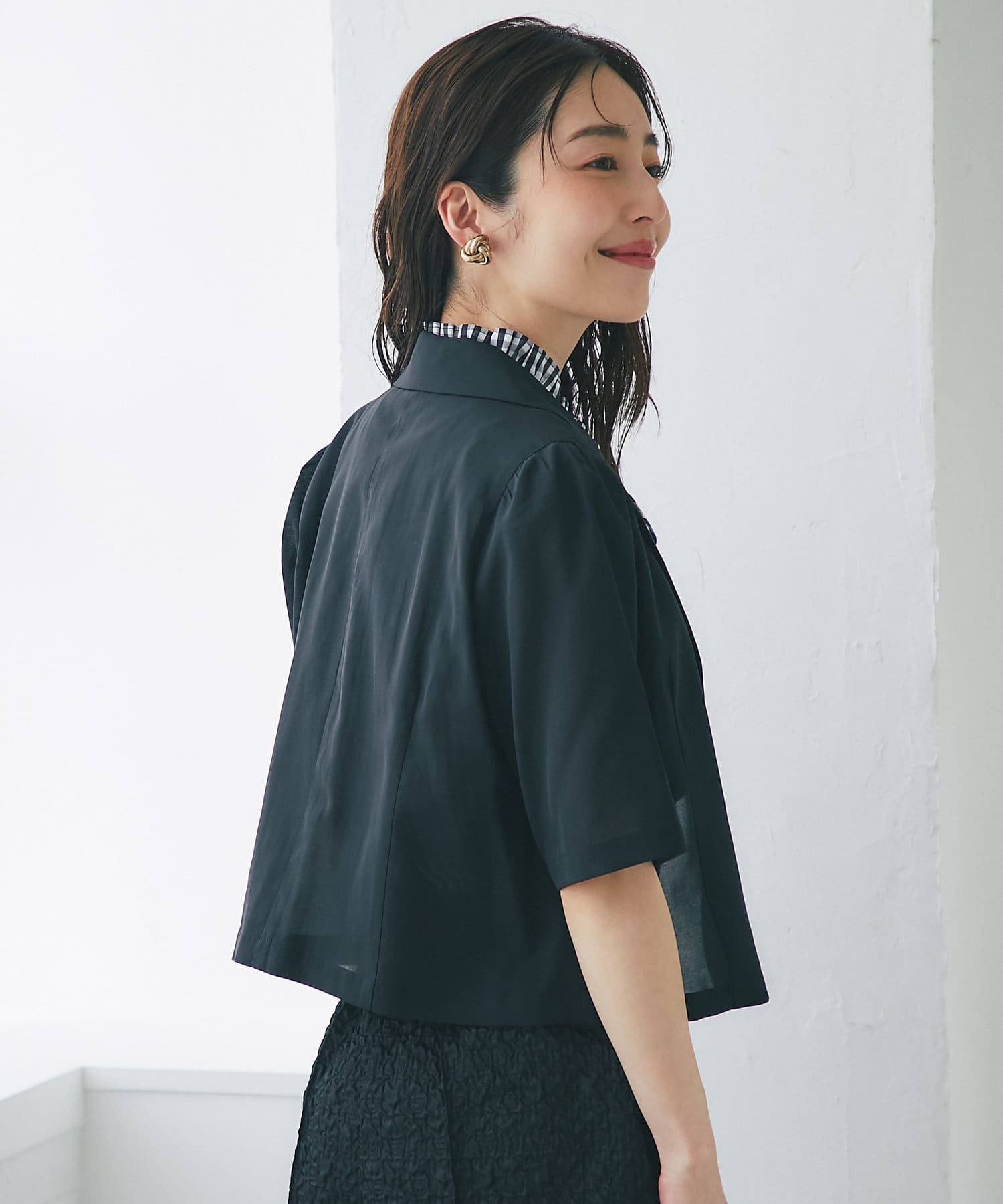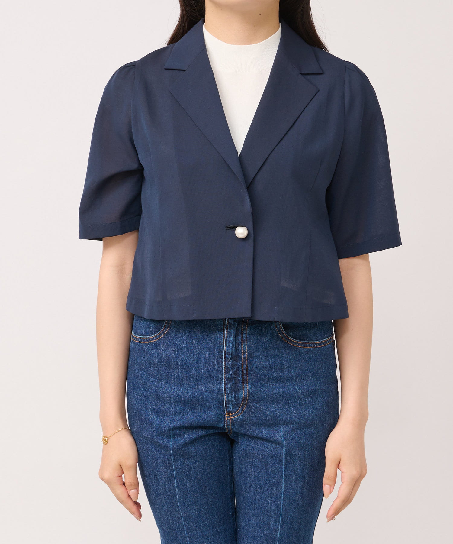 #大人カジュアル #きれいめカジュアル #上品カジュアル #上品 #ジャケット #シャツ #上品シャツ #クロップド #パール #シアー #五分袖