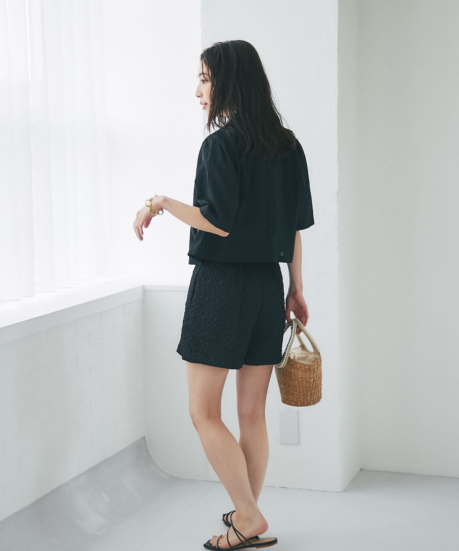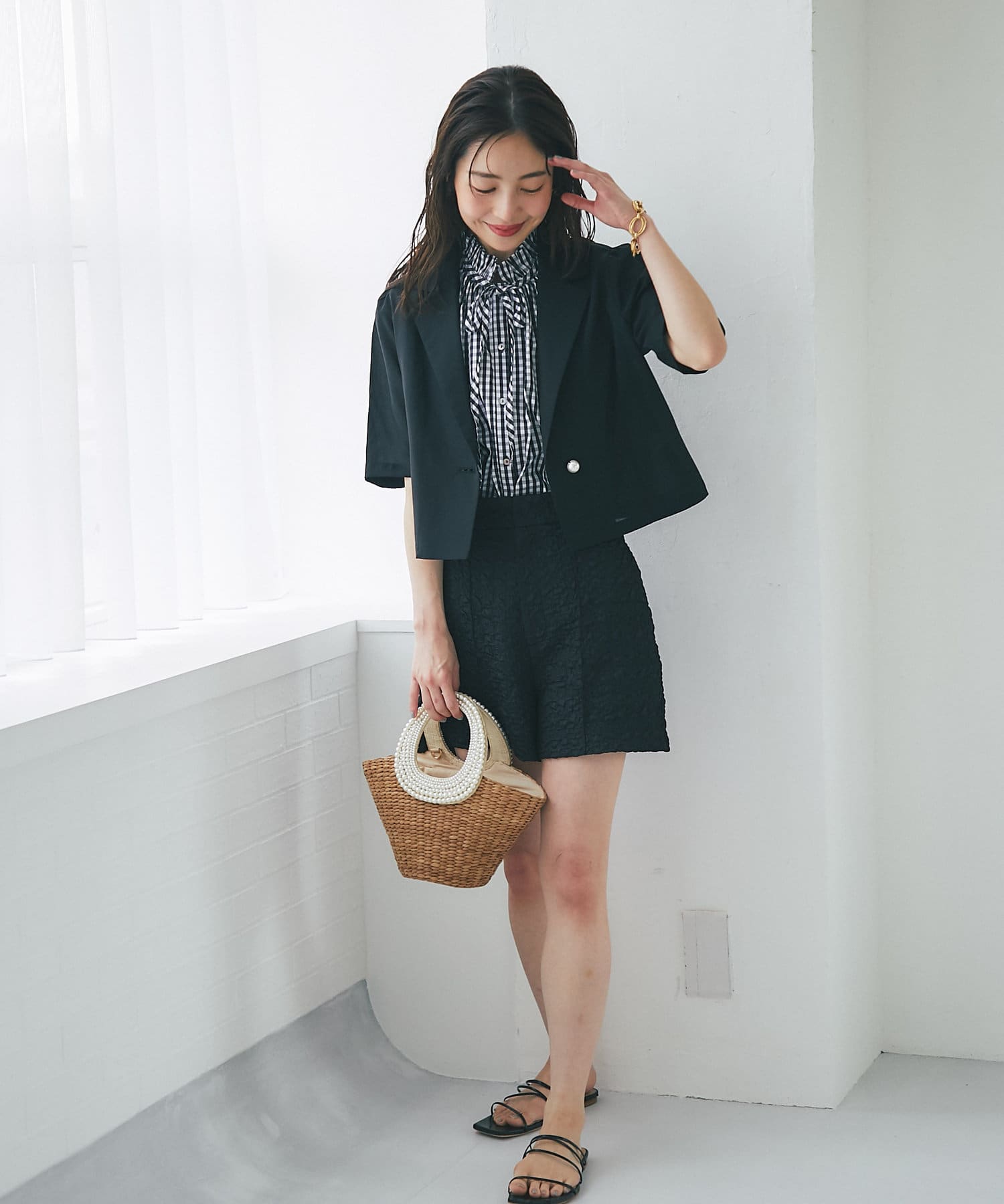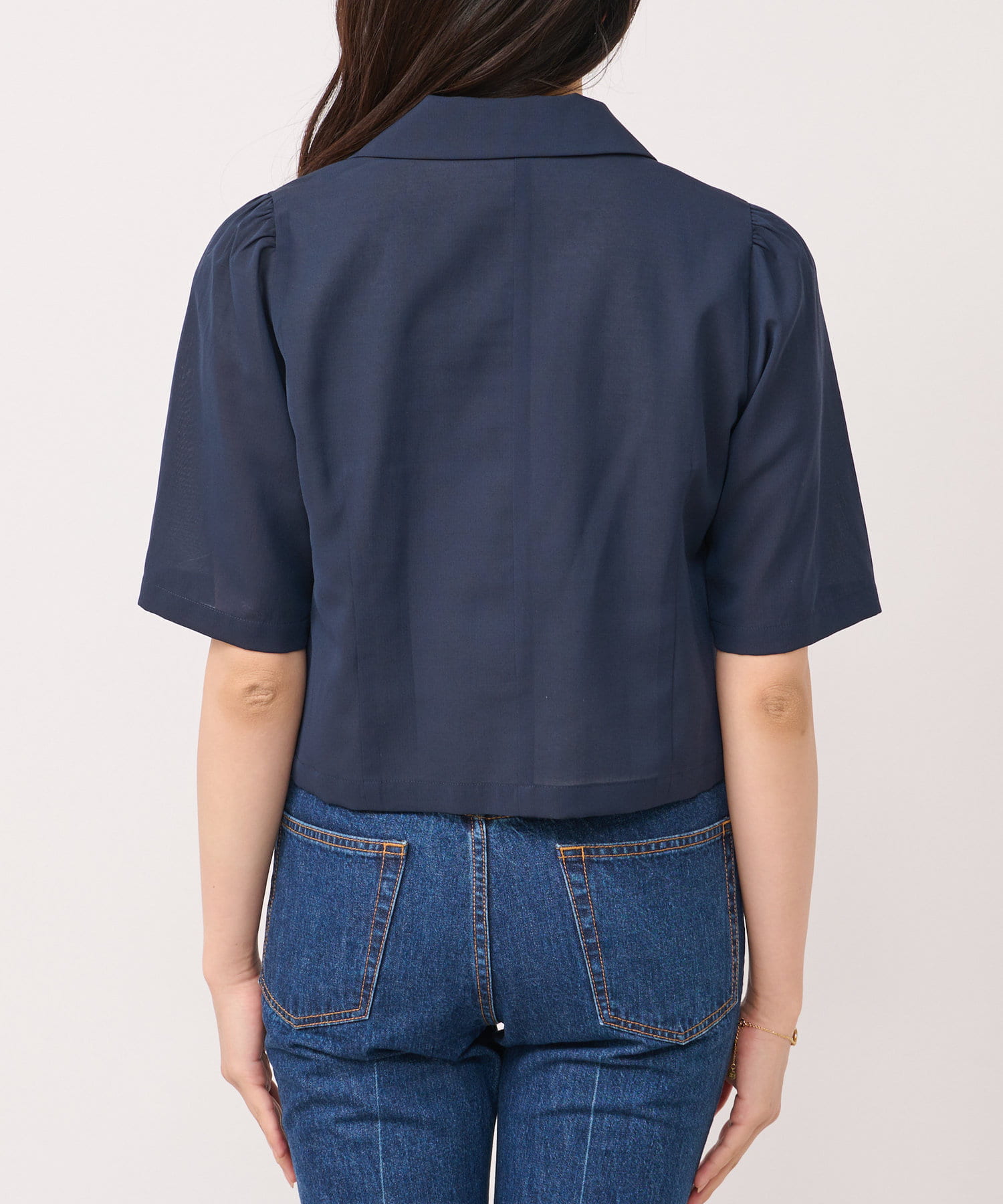 #大人カジュアル #きれいめカジュアル #上品カジュアル #上品 #ジャケット #シャツ #上品シャツ #クロップド #パール #シアー #五分袖