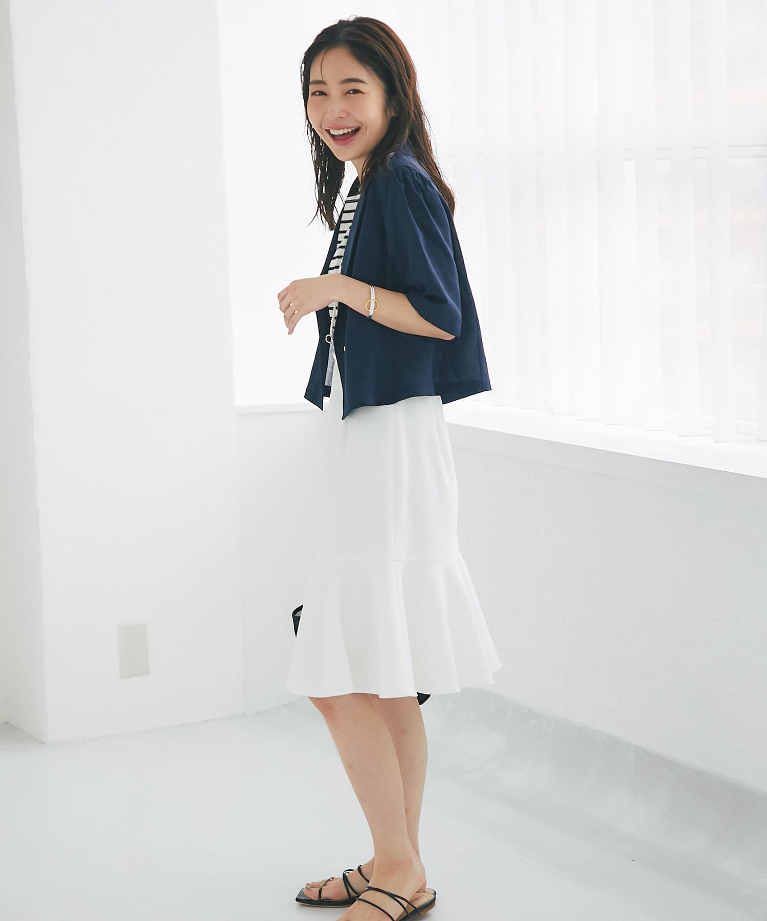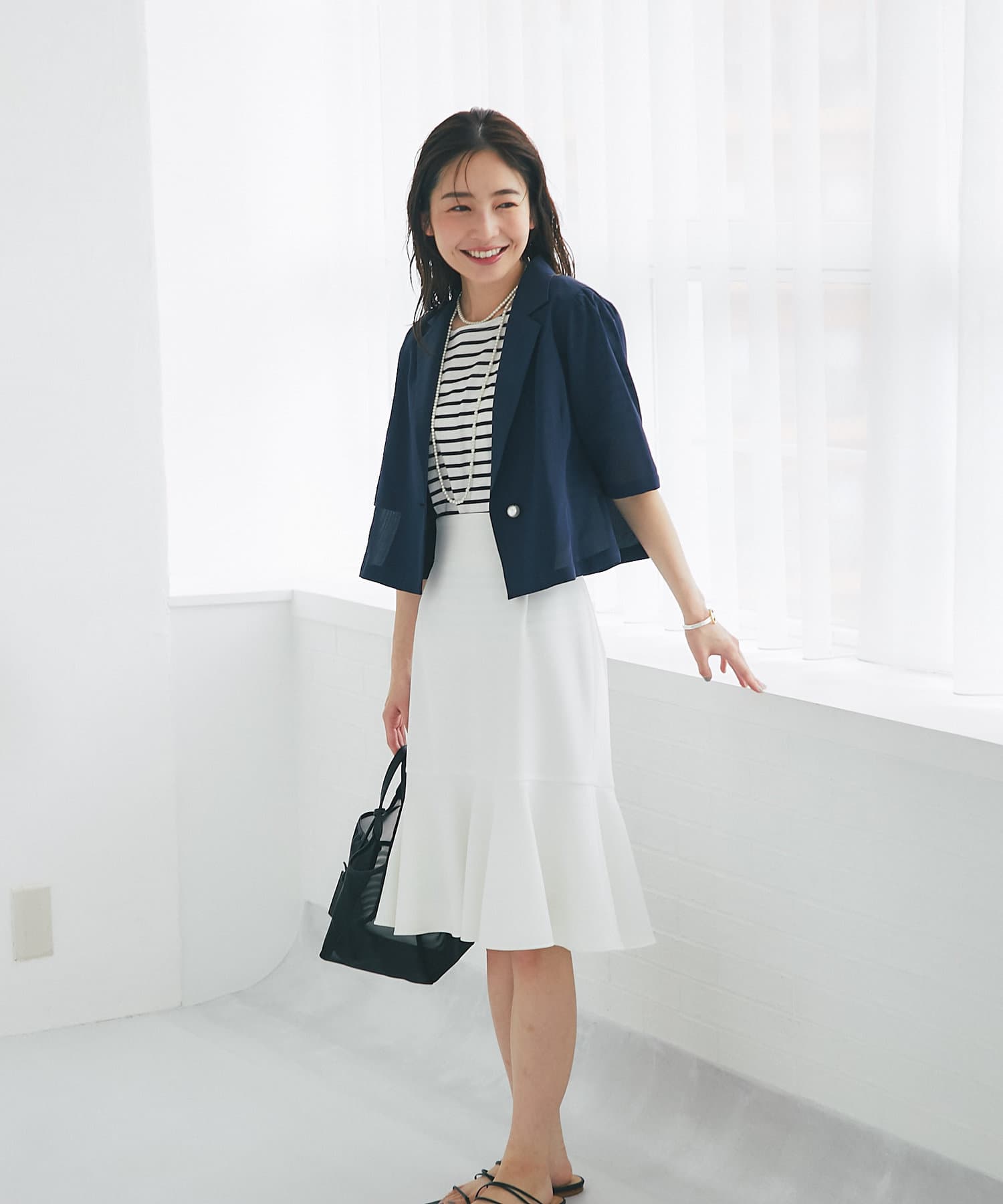 軽やかなクロップド丈なので、きれいめスカート合わせはもちろん