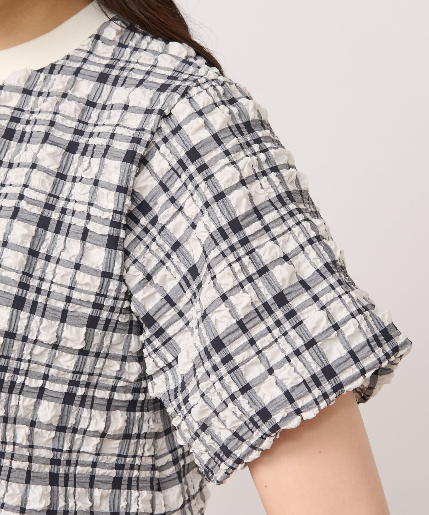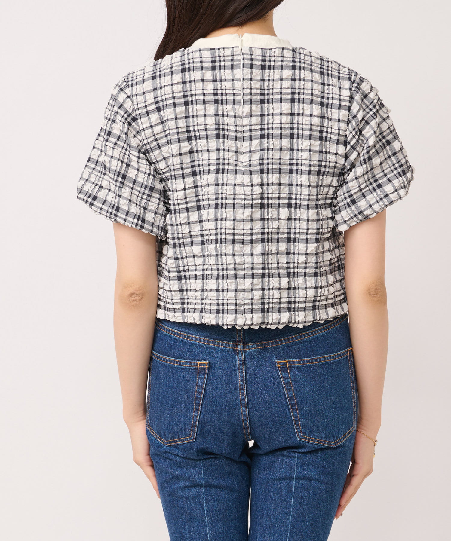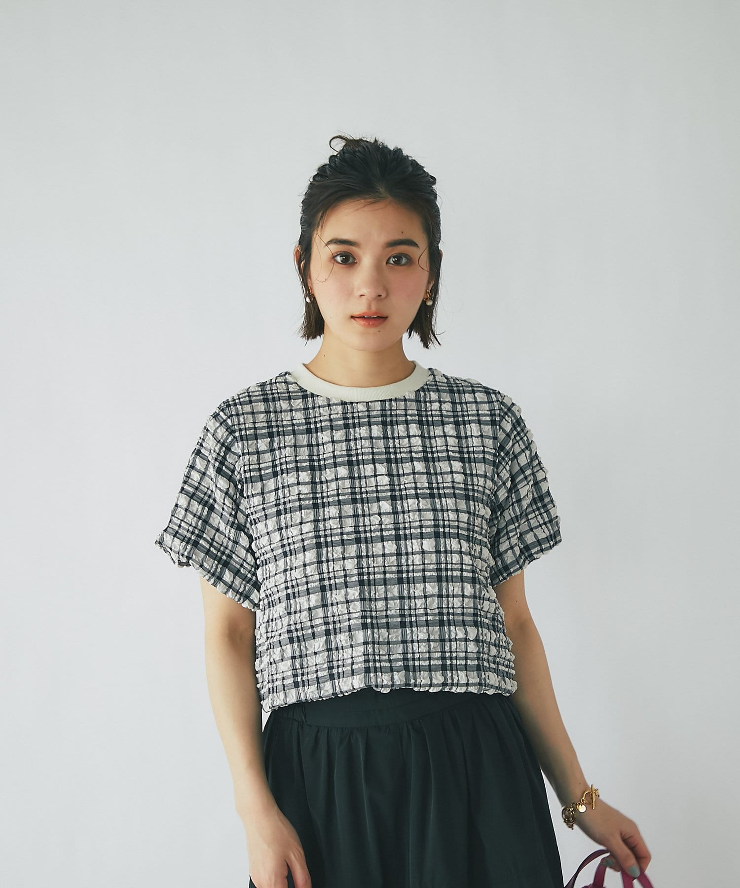 【人気シリーズ】ポコポコジャガードチェックブラウス