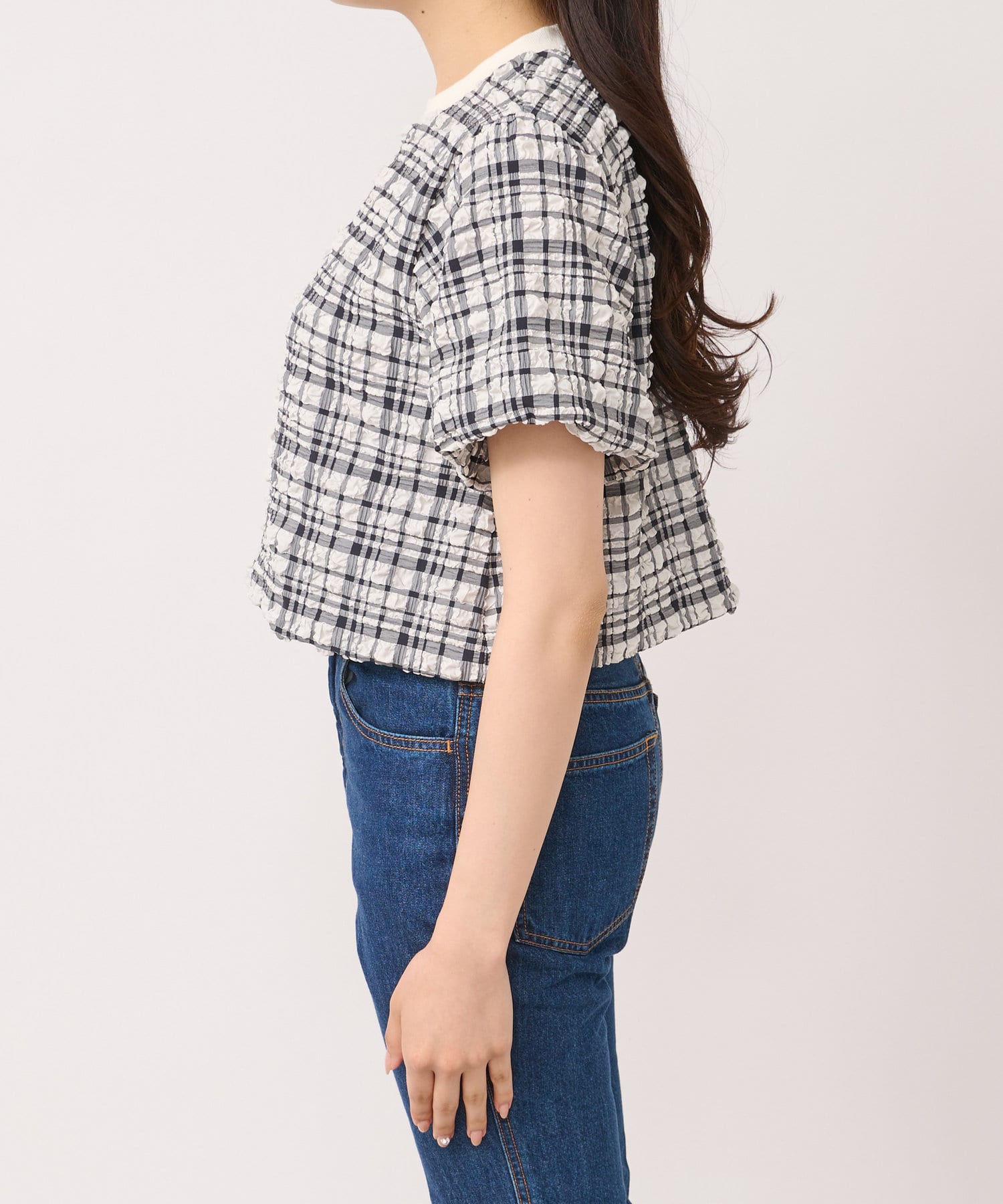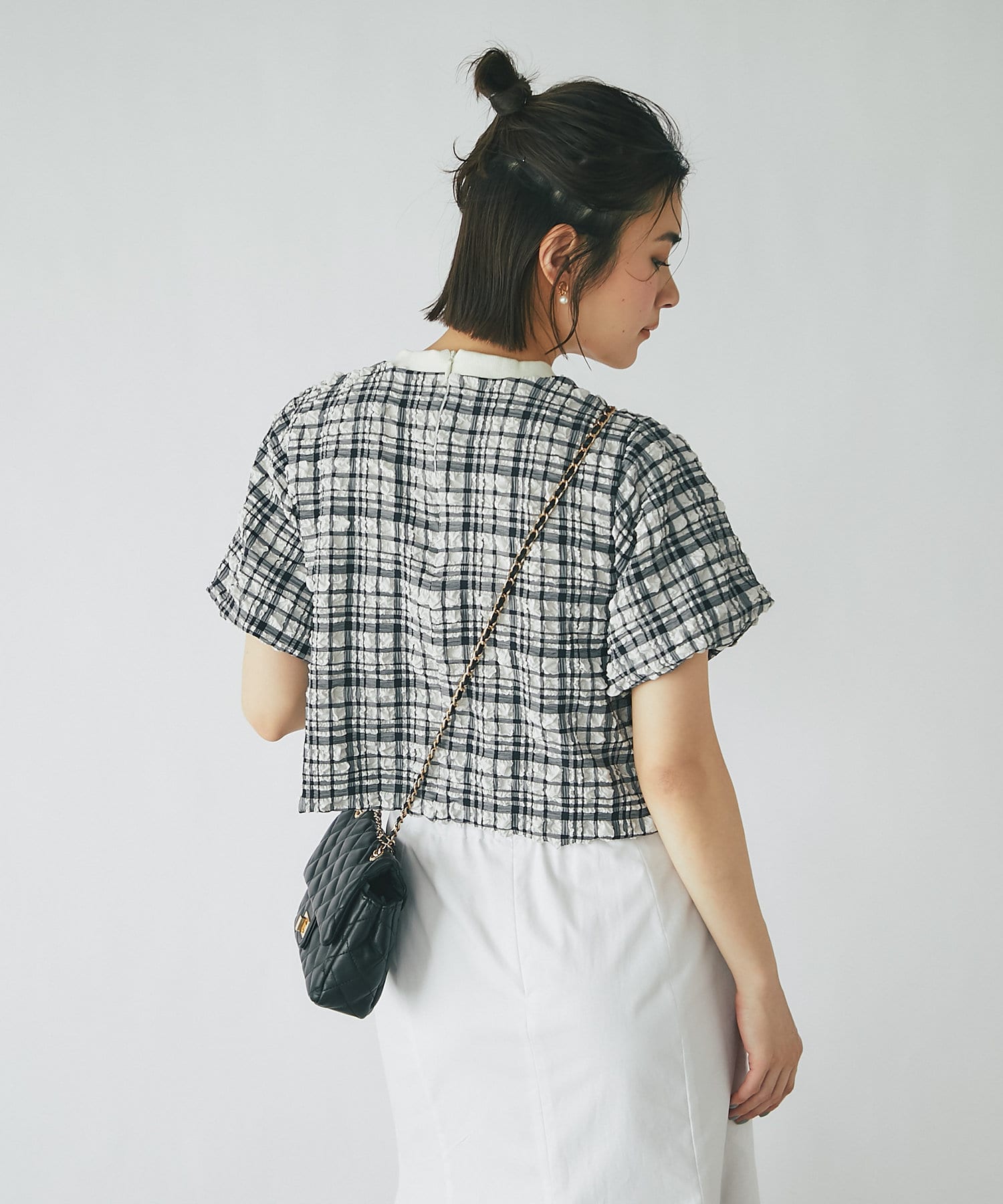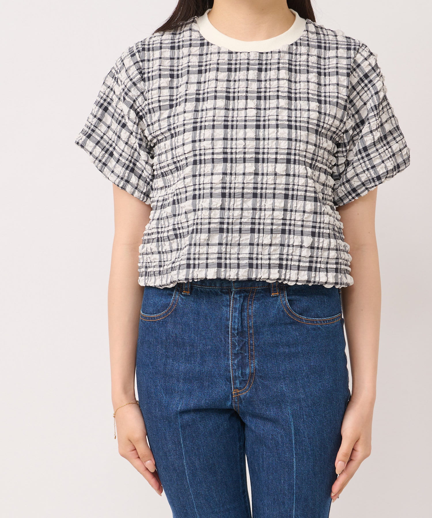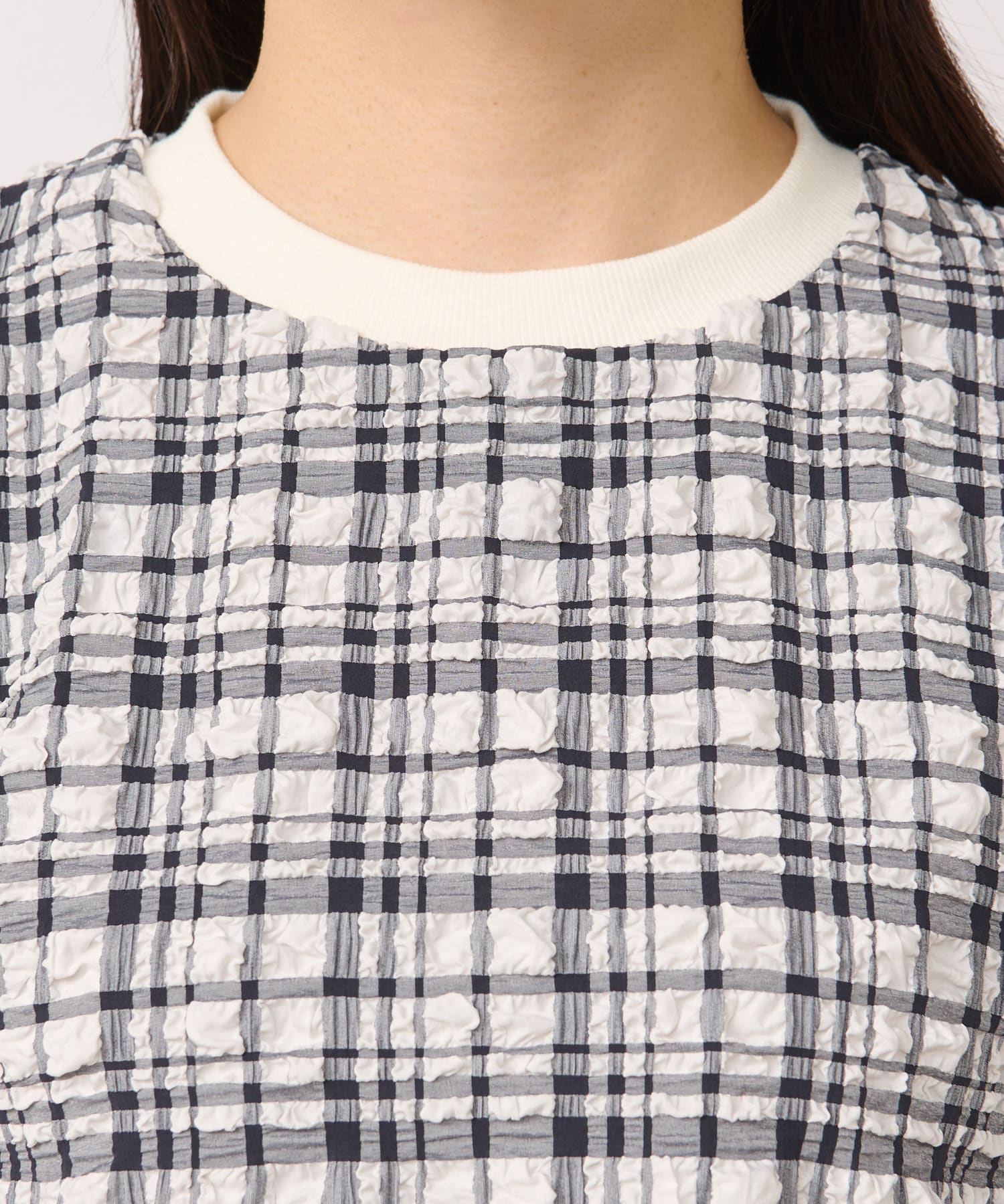 【人気シリーズ】ポコポコジャガードチェックブラウス