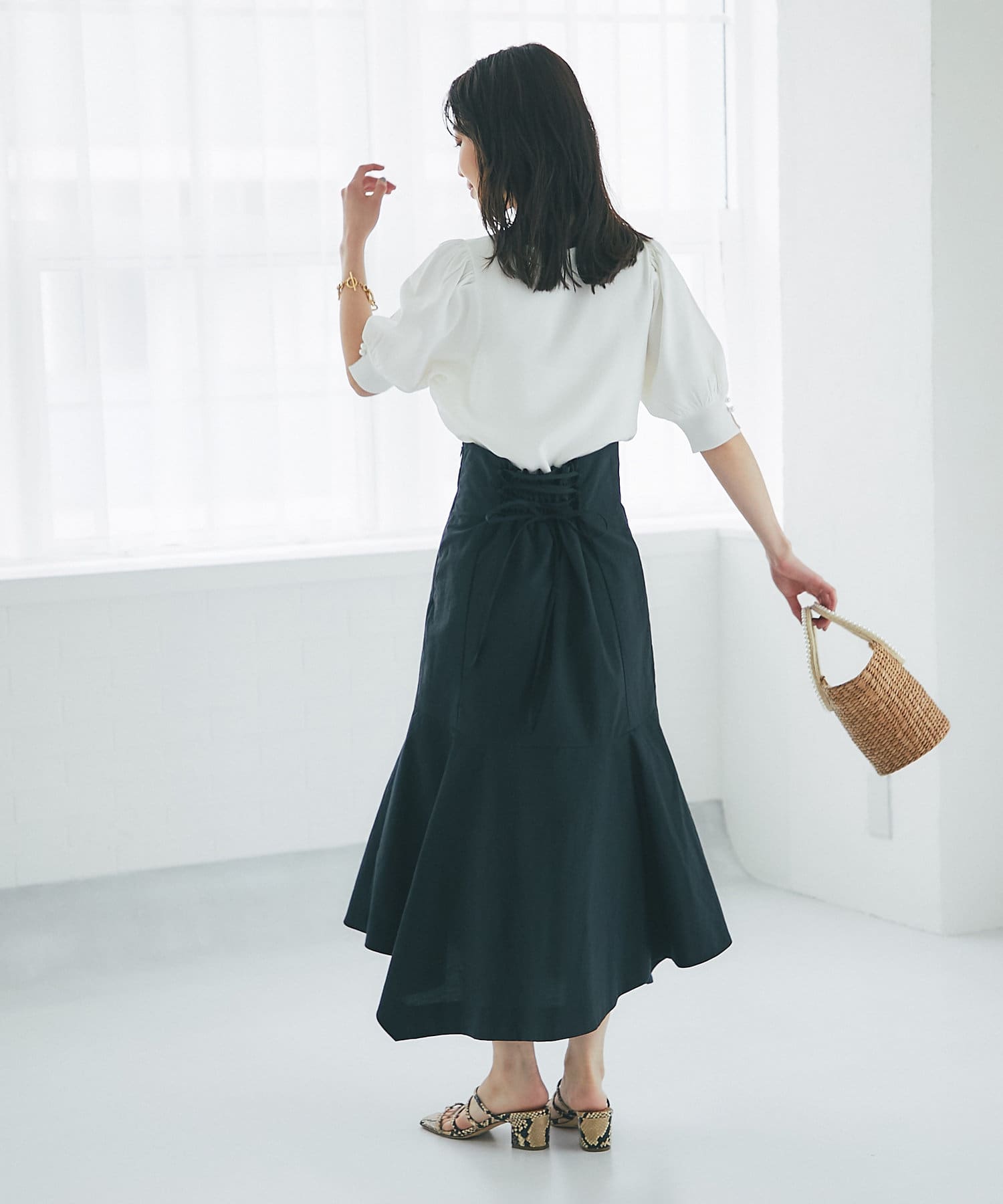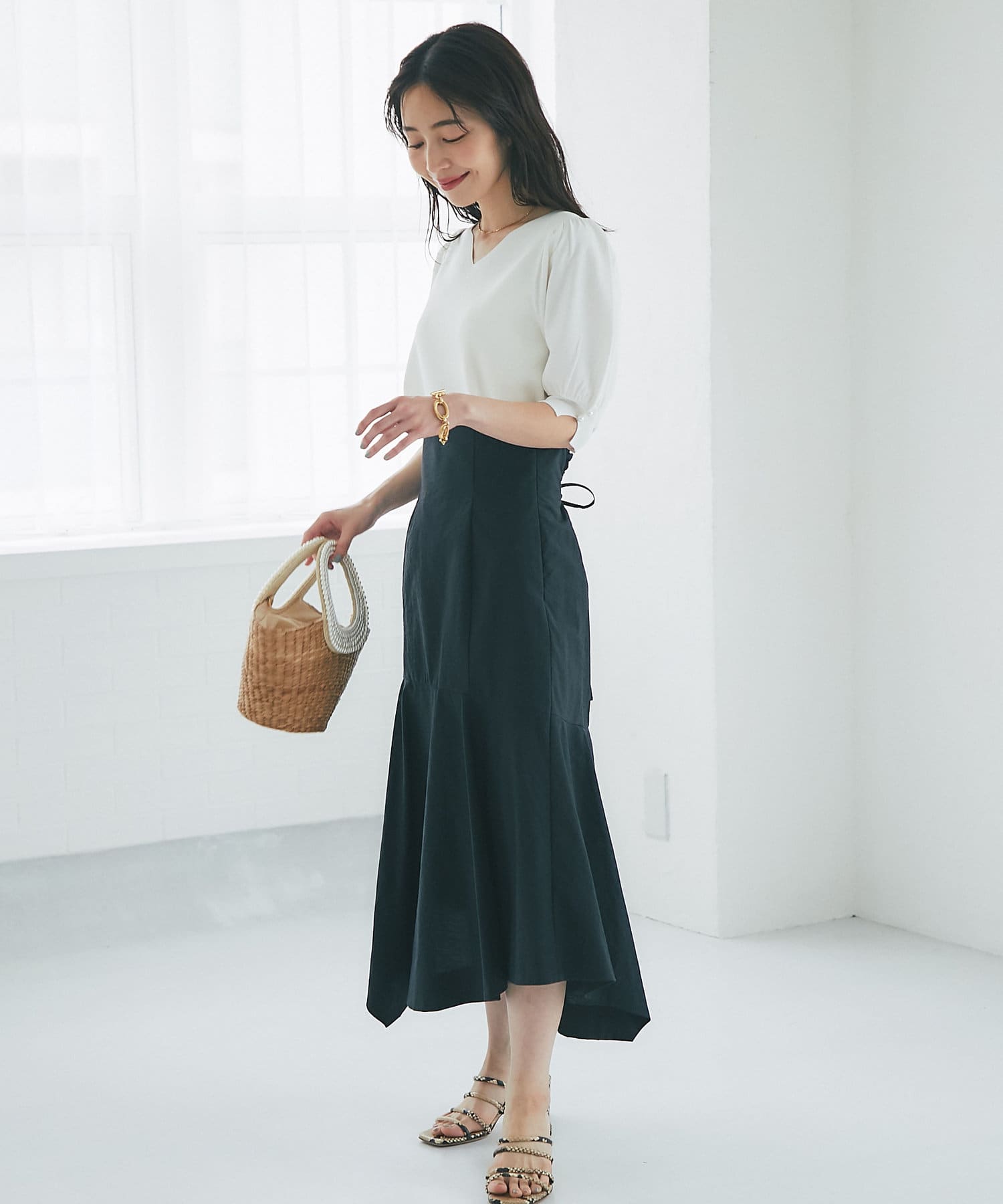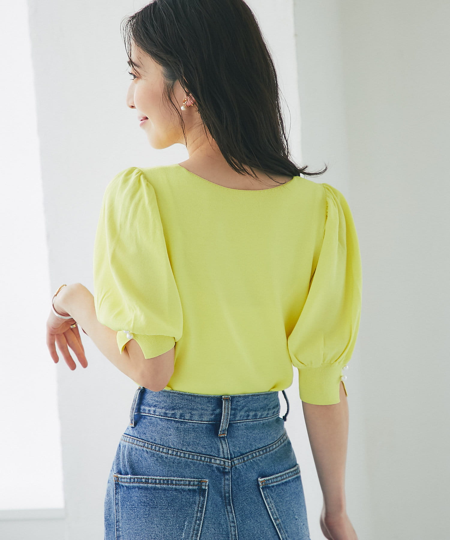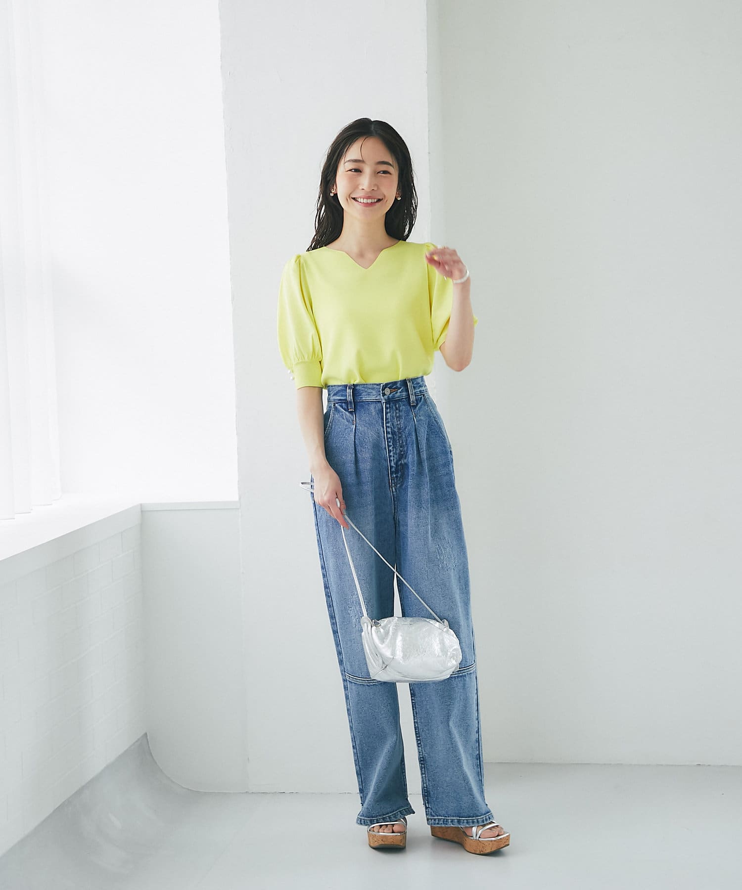 柄スカートなど華やかなボトムの合わせに使いやすいアイテムです。