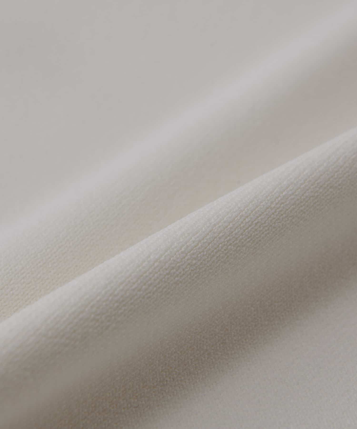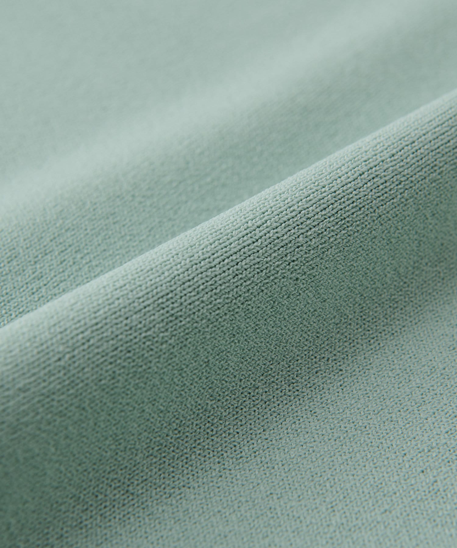 目の詰まった編地に、マットな光沢面できれいめな印象に。