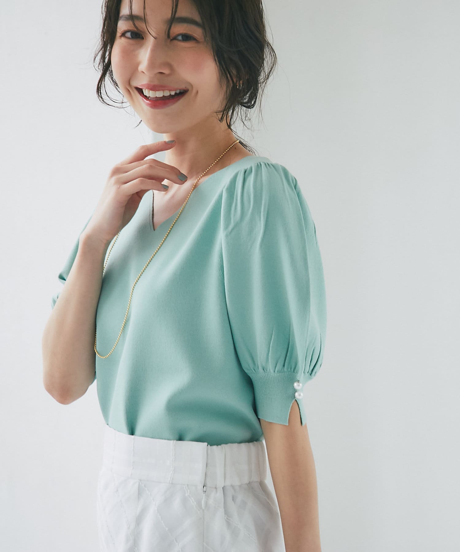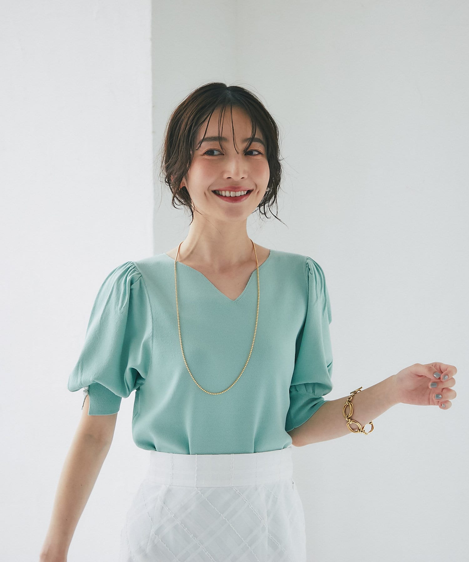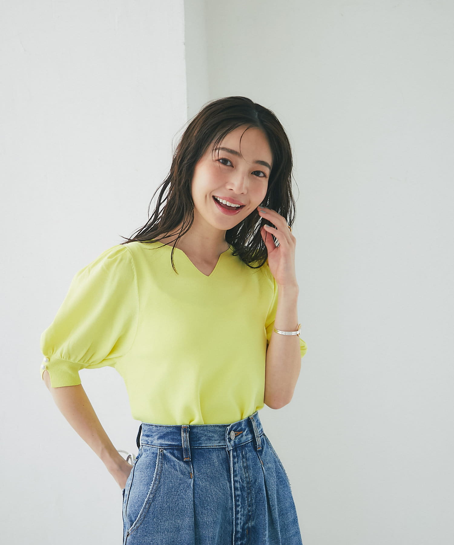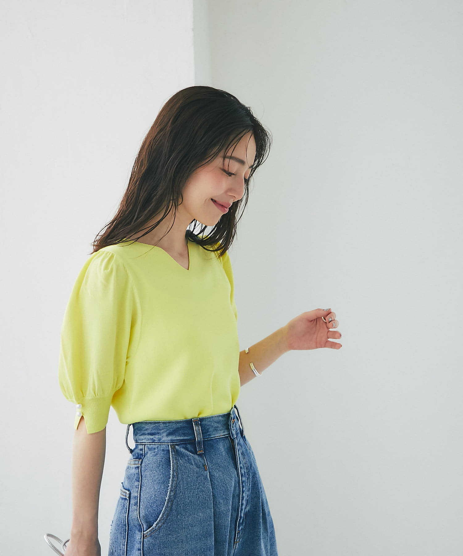#大人カジュアル #きれいめカジュアル #シンプル #変形ネック #ベーシック #上品カジュアル #デイリー #大人女子 #モテ女子 #モテコーデ #モテ服 #通勤コーデ #手洗い可 #オンスタイル #オフィスカジュアル #無地 #クールタッチ #五分袖 #シンプルニット #オケージョン