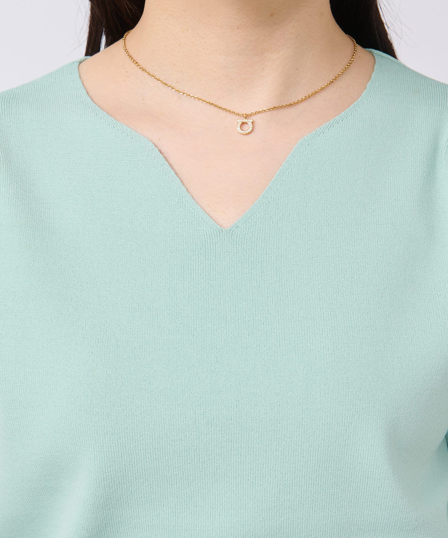 大人気クールタッチシリーズの新作、上品なネックデザインの五分袖ニット