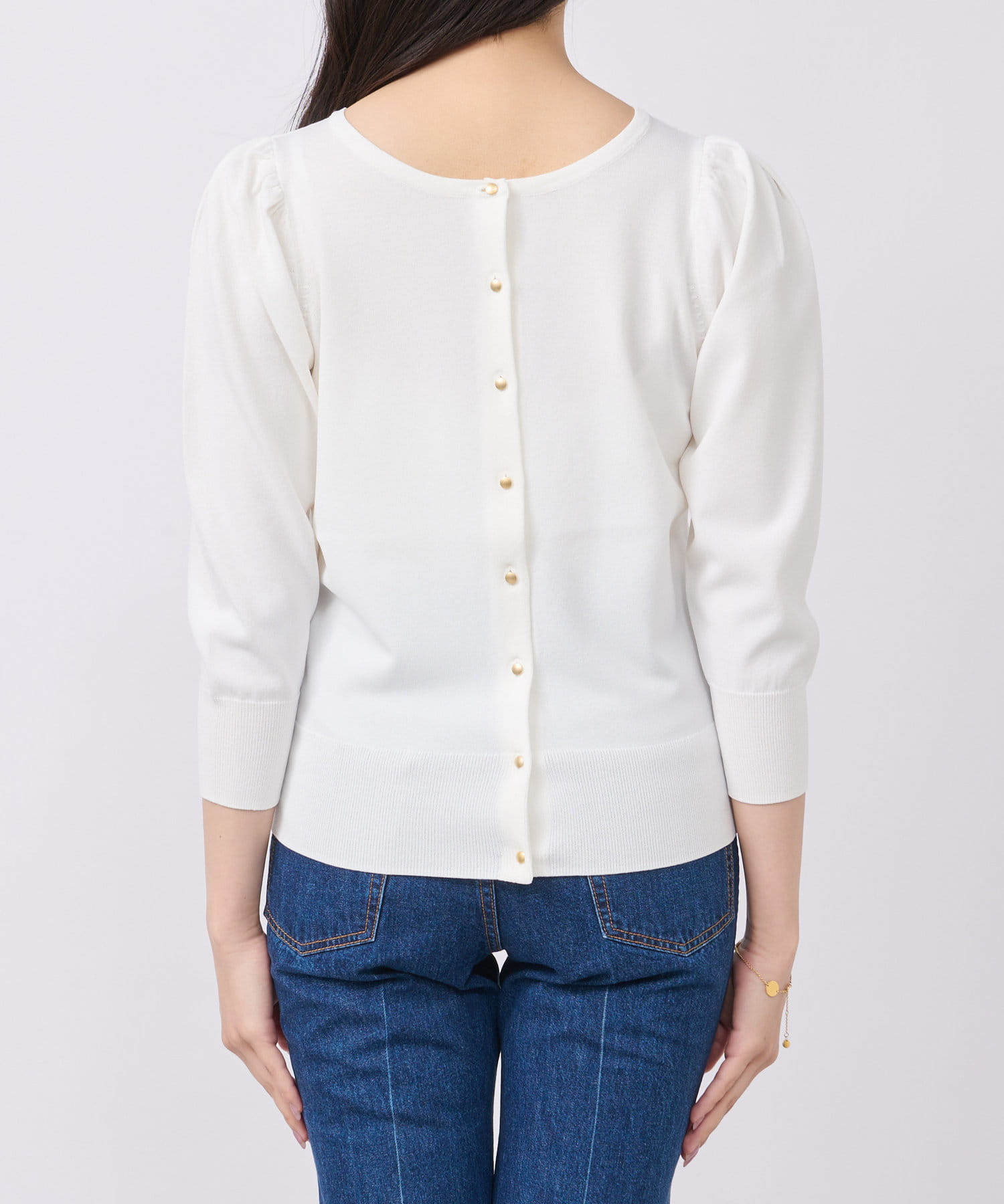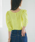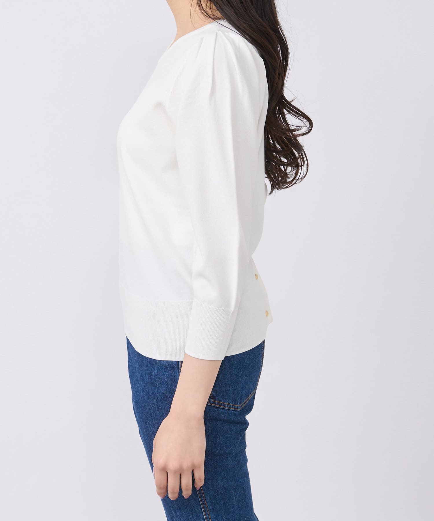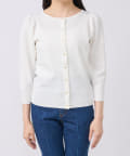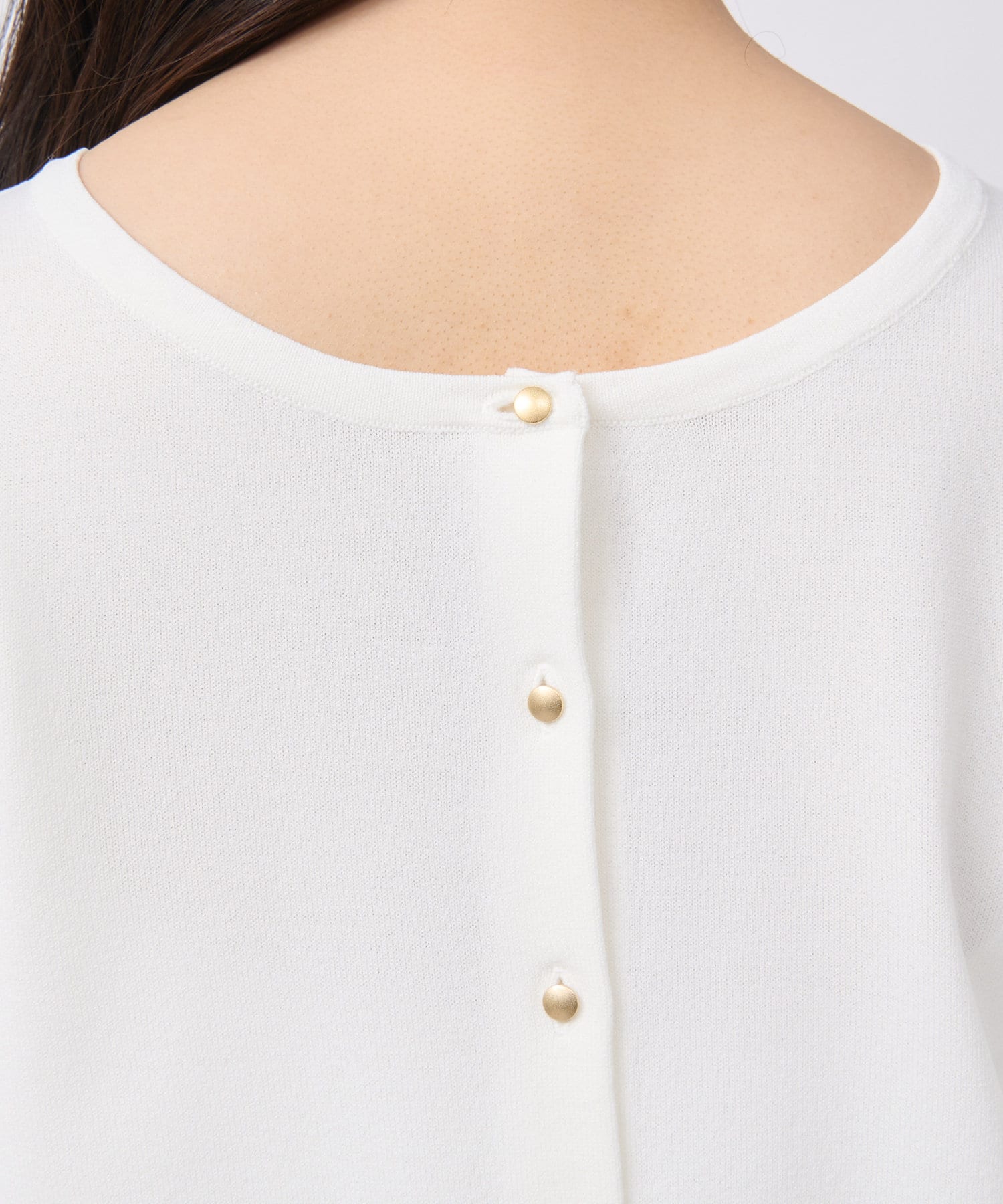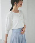 小さめ金ボタンがアクセントとなっており、一枚着としての着用もおすすめ。