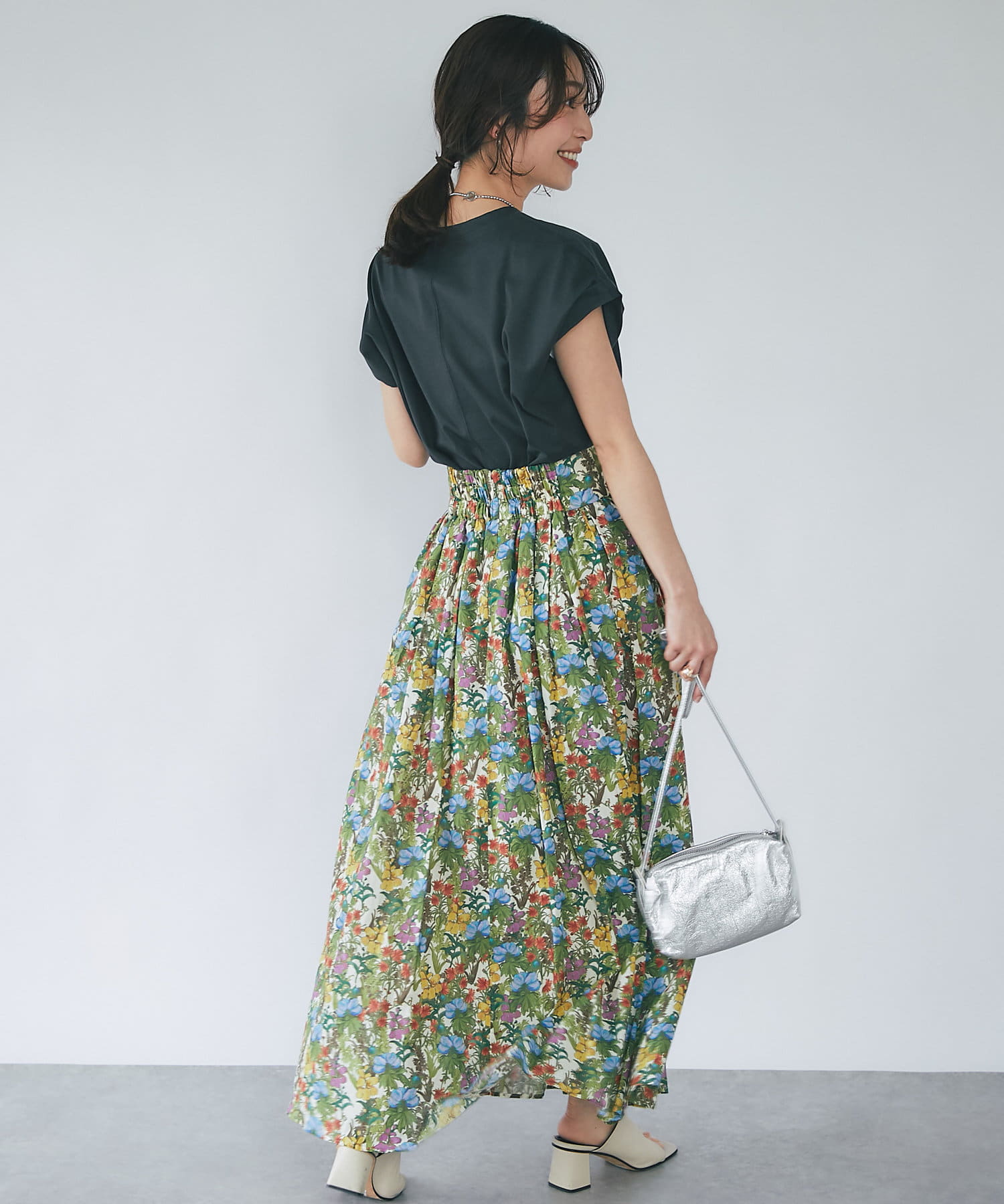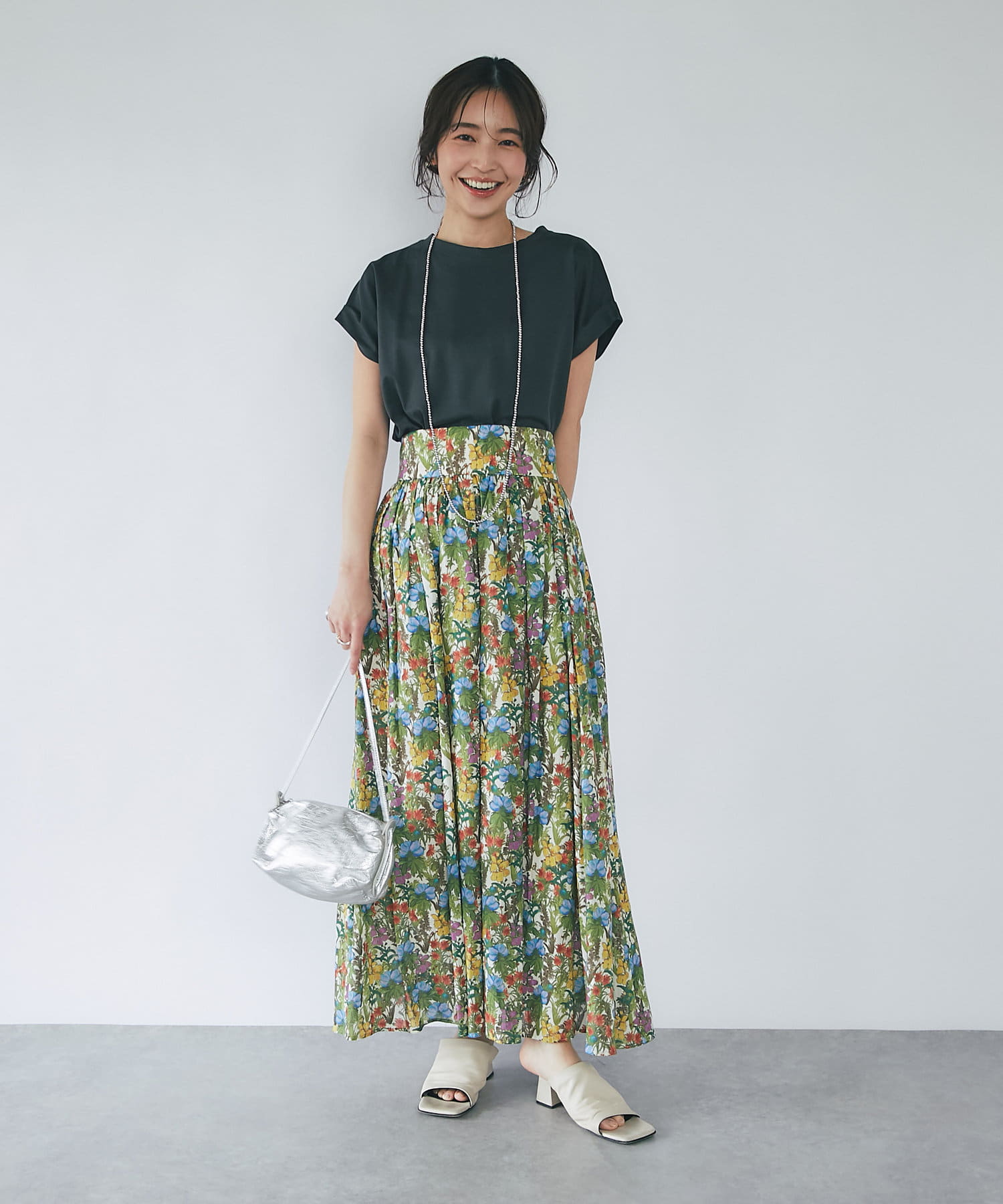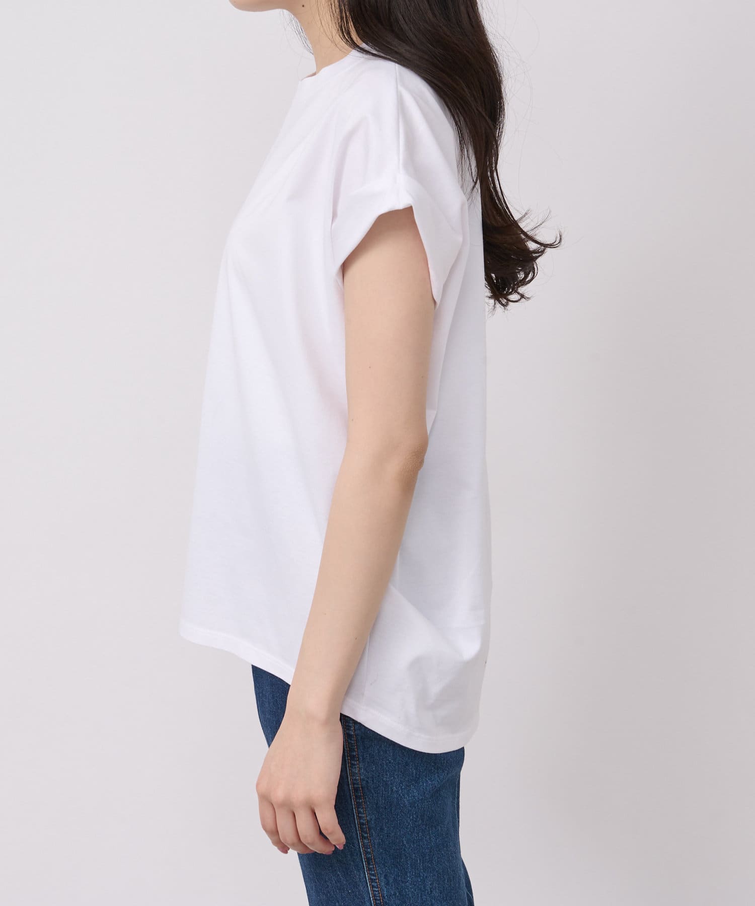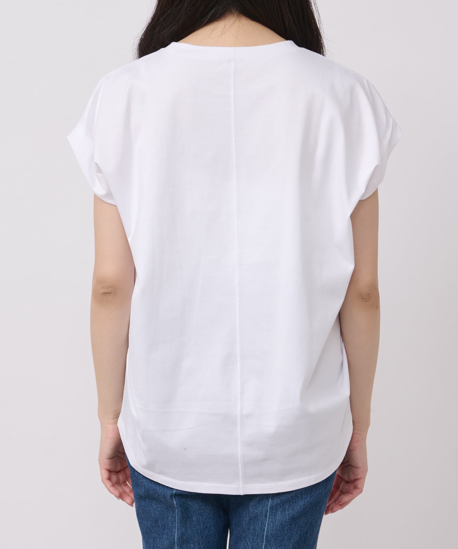 シンプルでベーシックなデザインながら、華奢見えするフレンチスリーブや