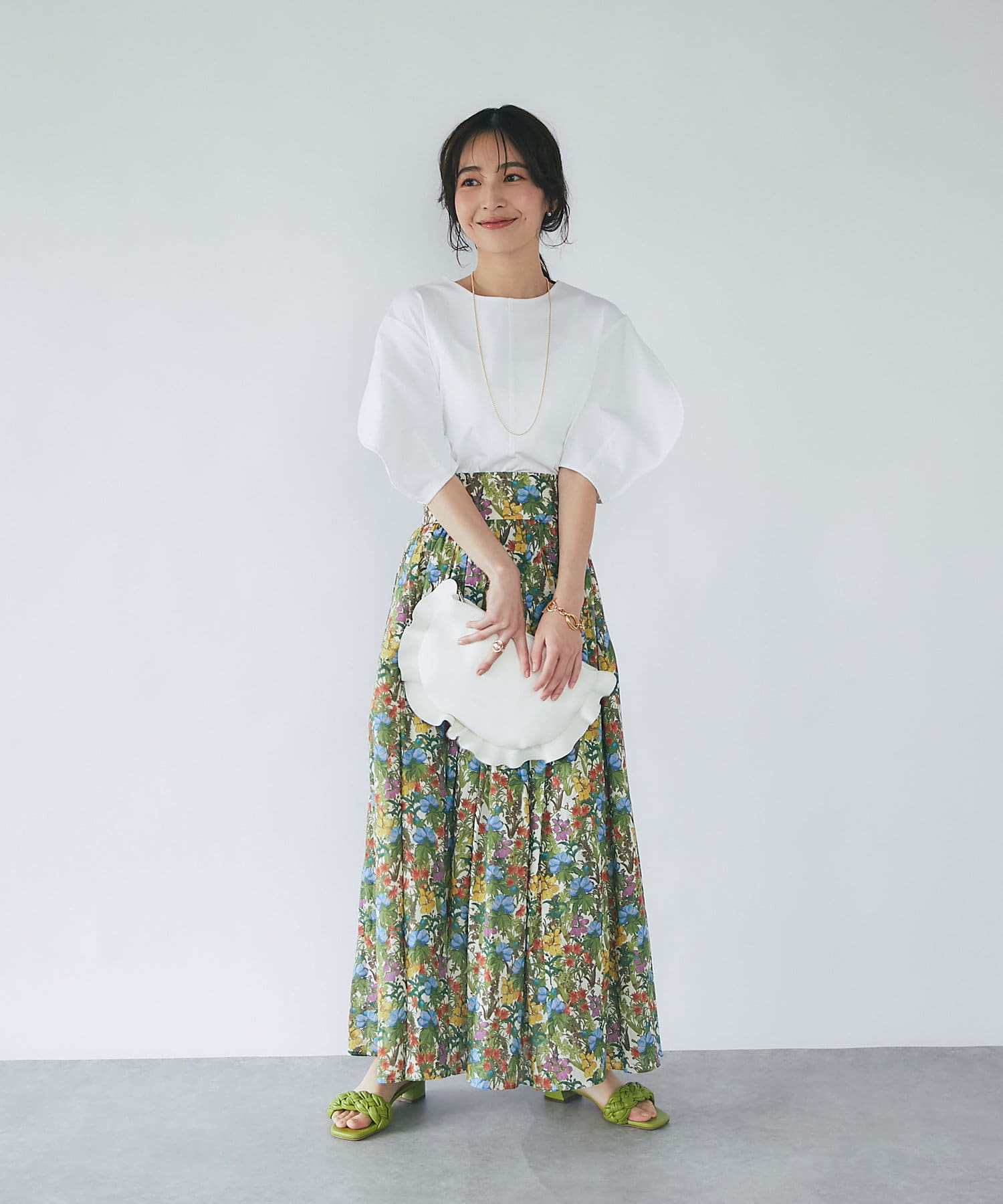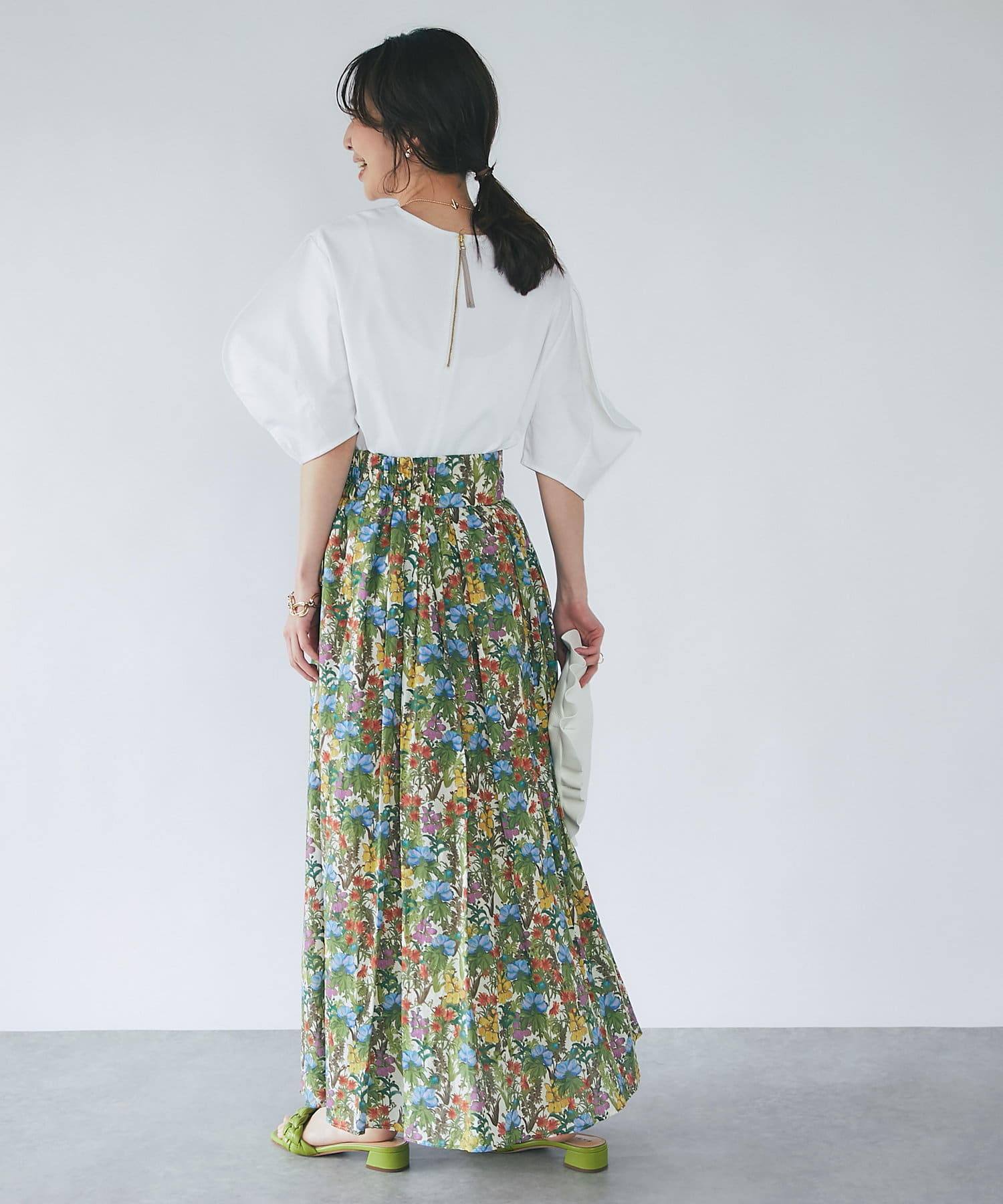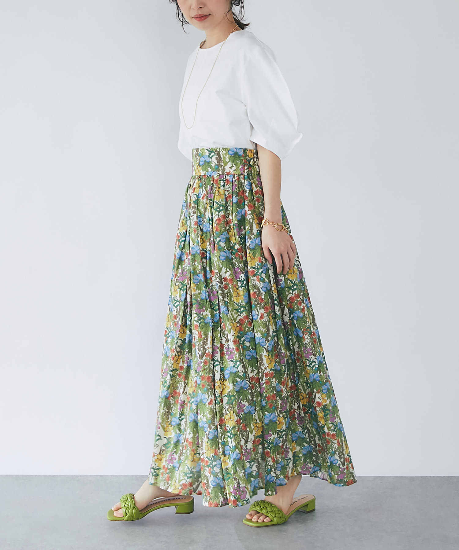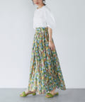 ボタニカルプリントギャザーロングスカート