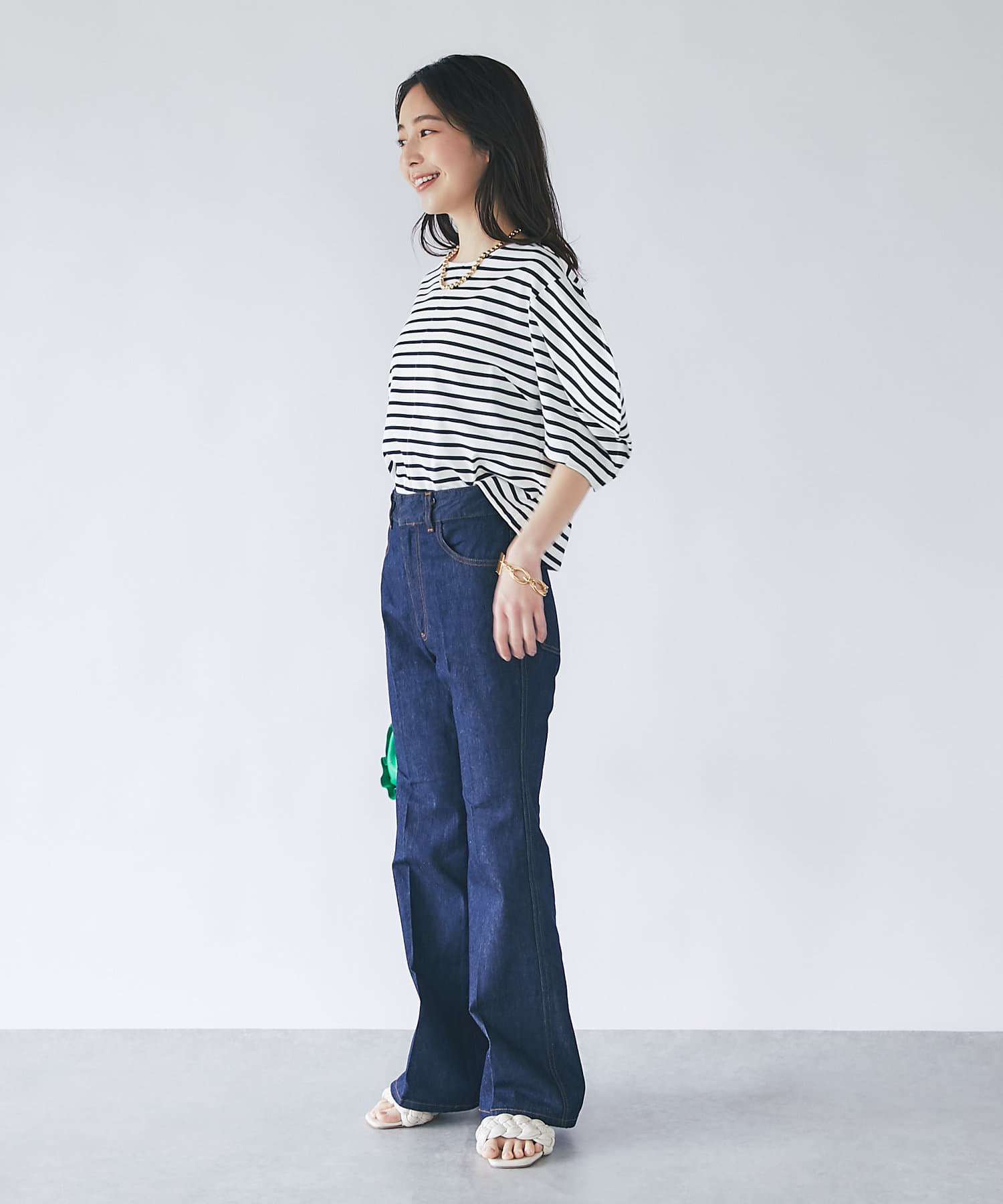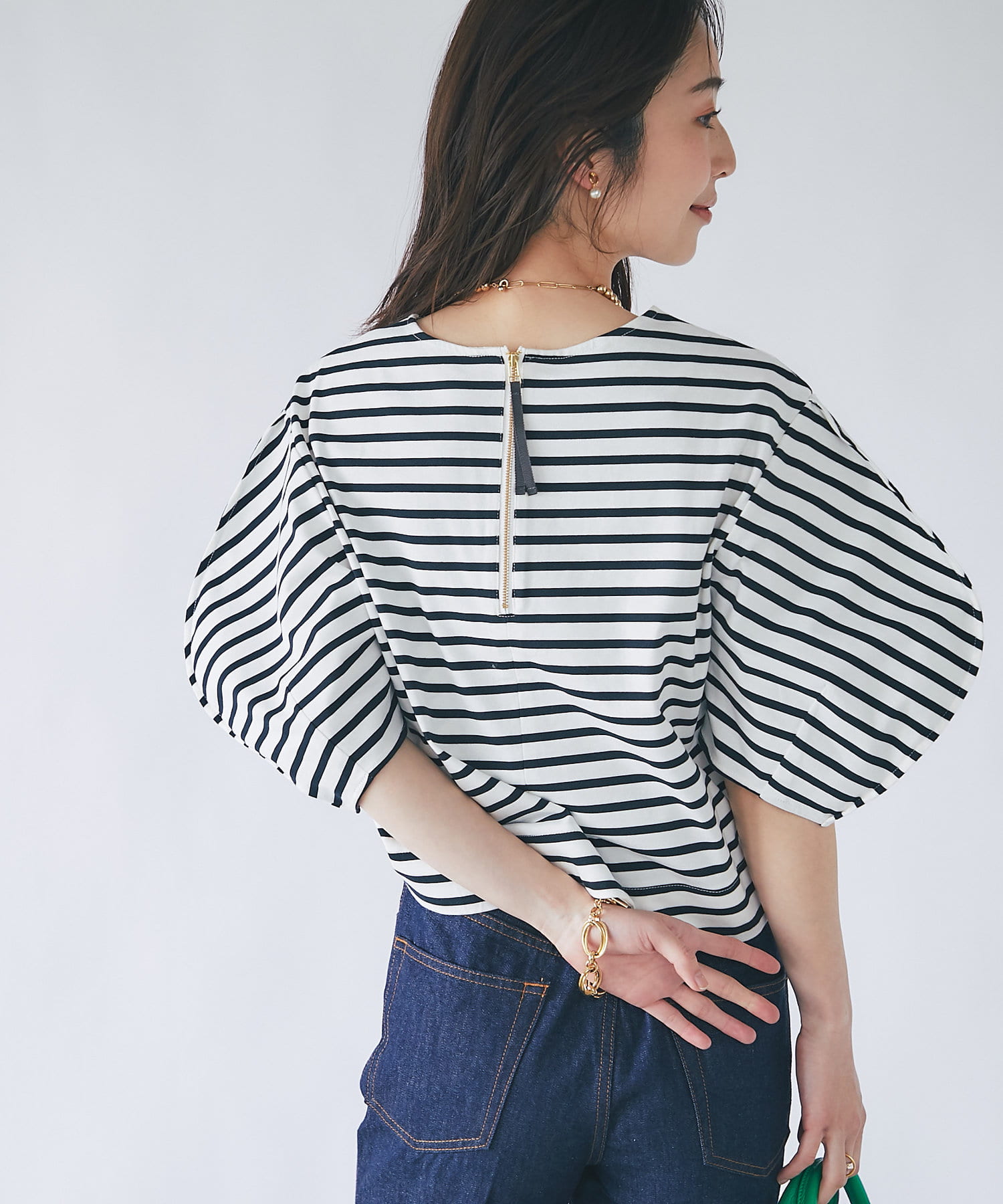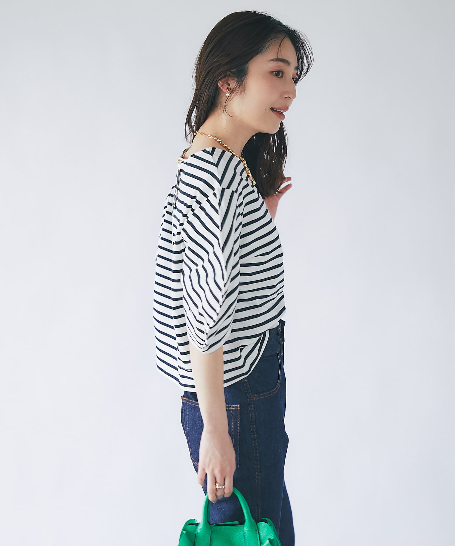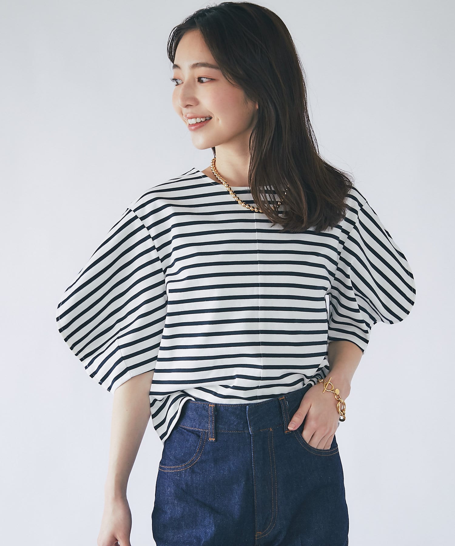 #大人カジュアル #きれいめカジュアル #ボーダー #無地 #ランタンスリーブ #ボリューム袖 #ベーシックカラー #上品カジュアル #スタイルアップ #大人女子 #モテ女子 #モテコーデ #モテ服 #シンプル #デイリーユース #クロップド丈 #デザインTシャツ
