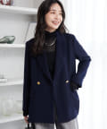 毎シーズン人気のラブティックボンボンの名品、メタル釦ダブルジャケットに新素材を使用しました。
