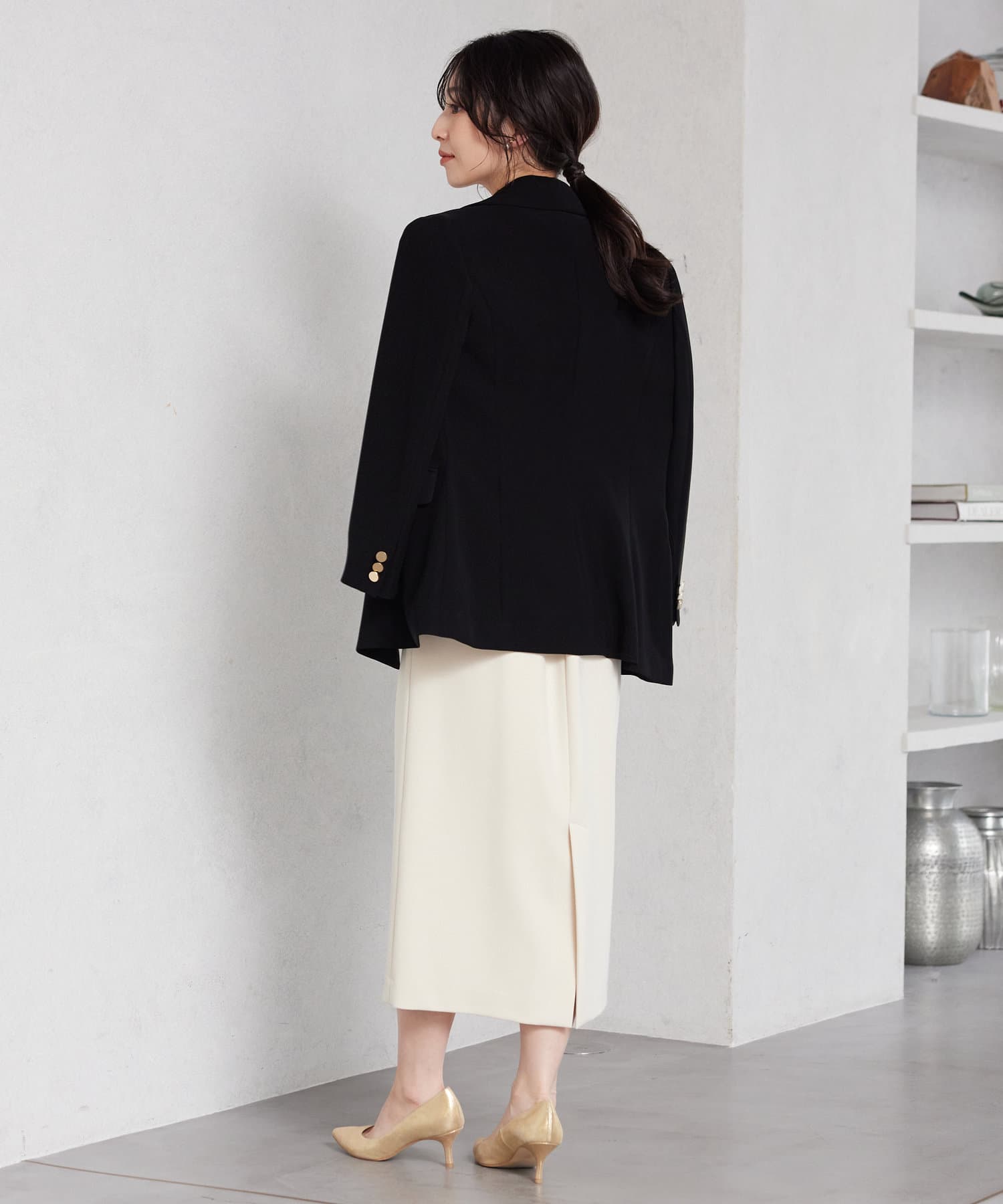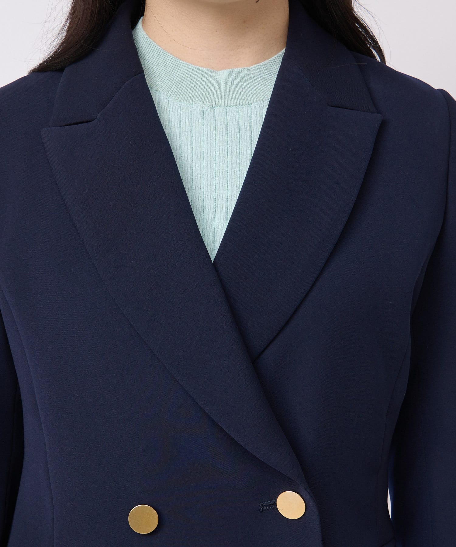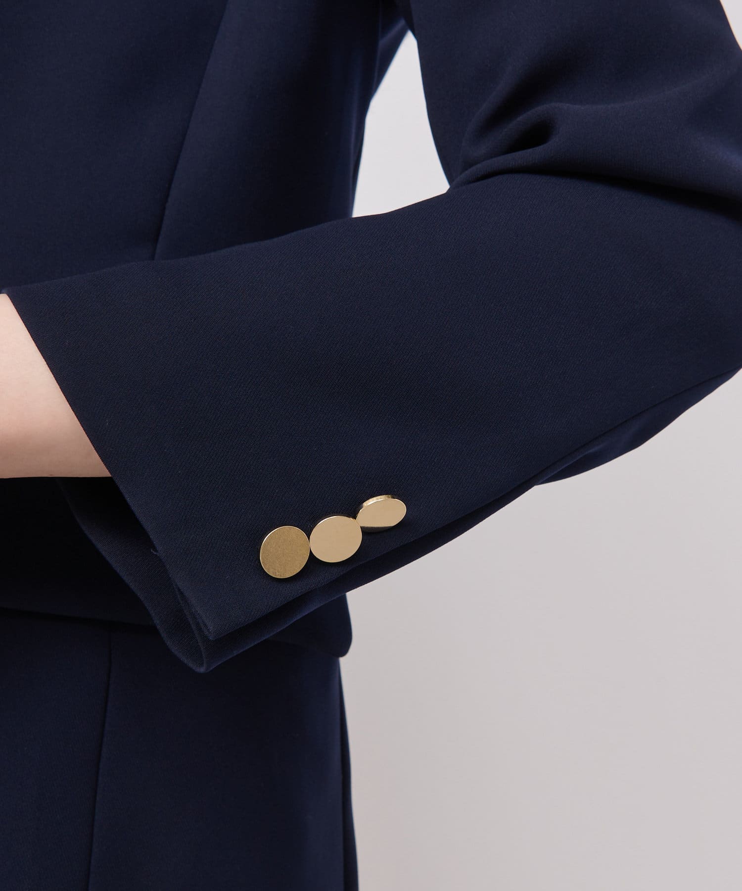 ☑やや上よりのゴールド釦で視線を上に誘導し、スタイルアップにも期待できます