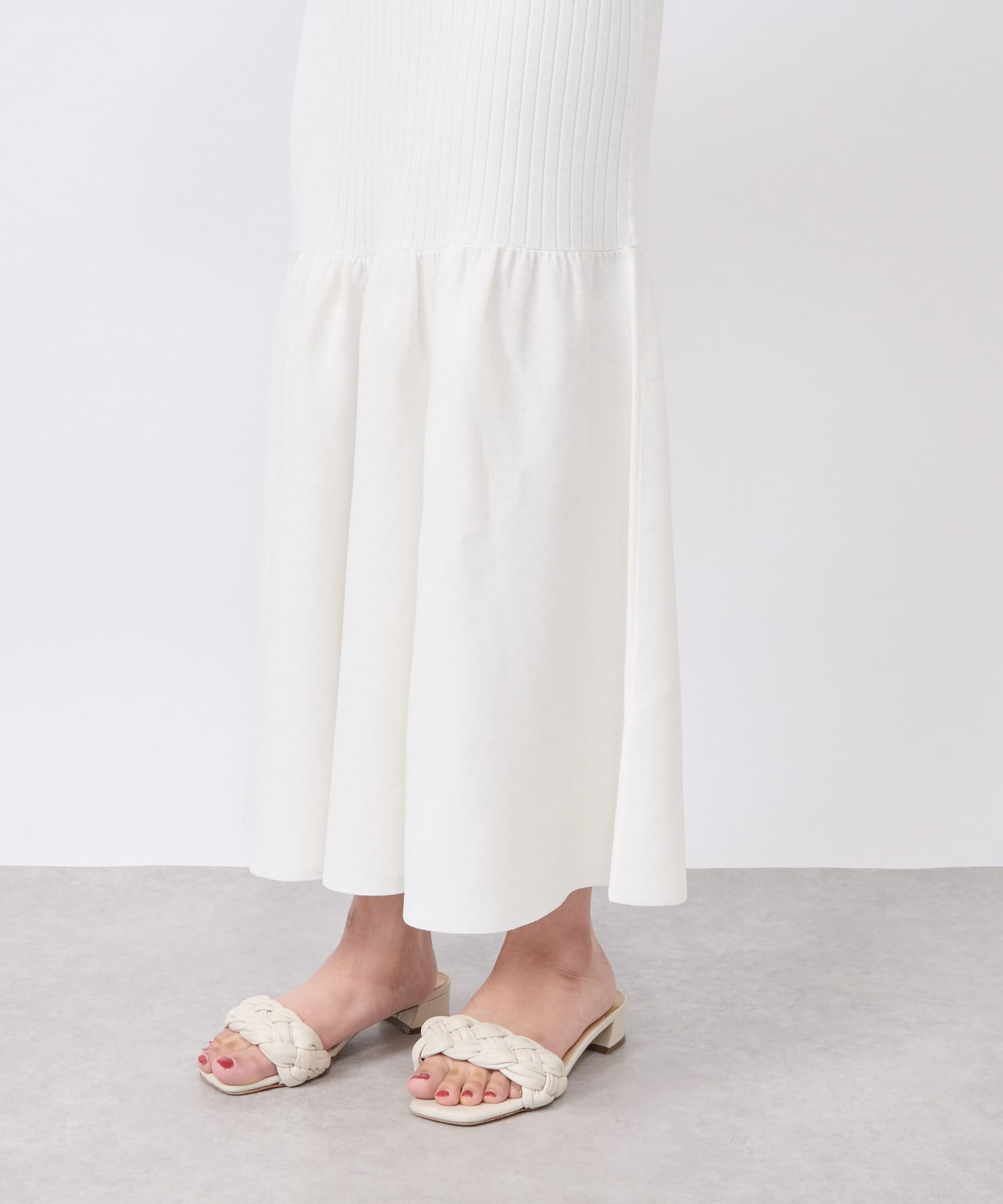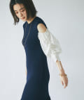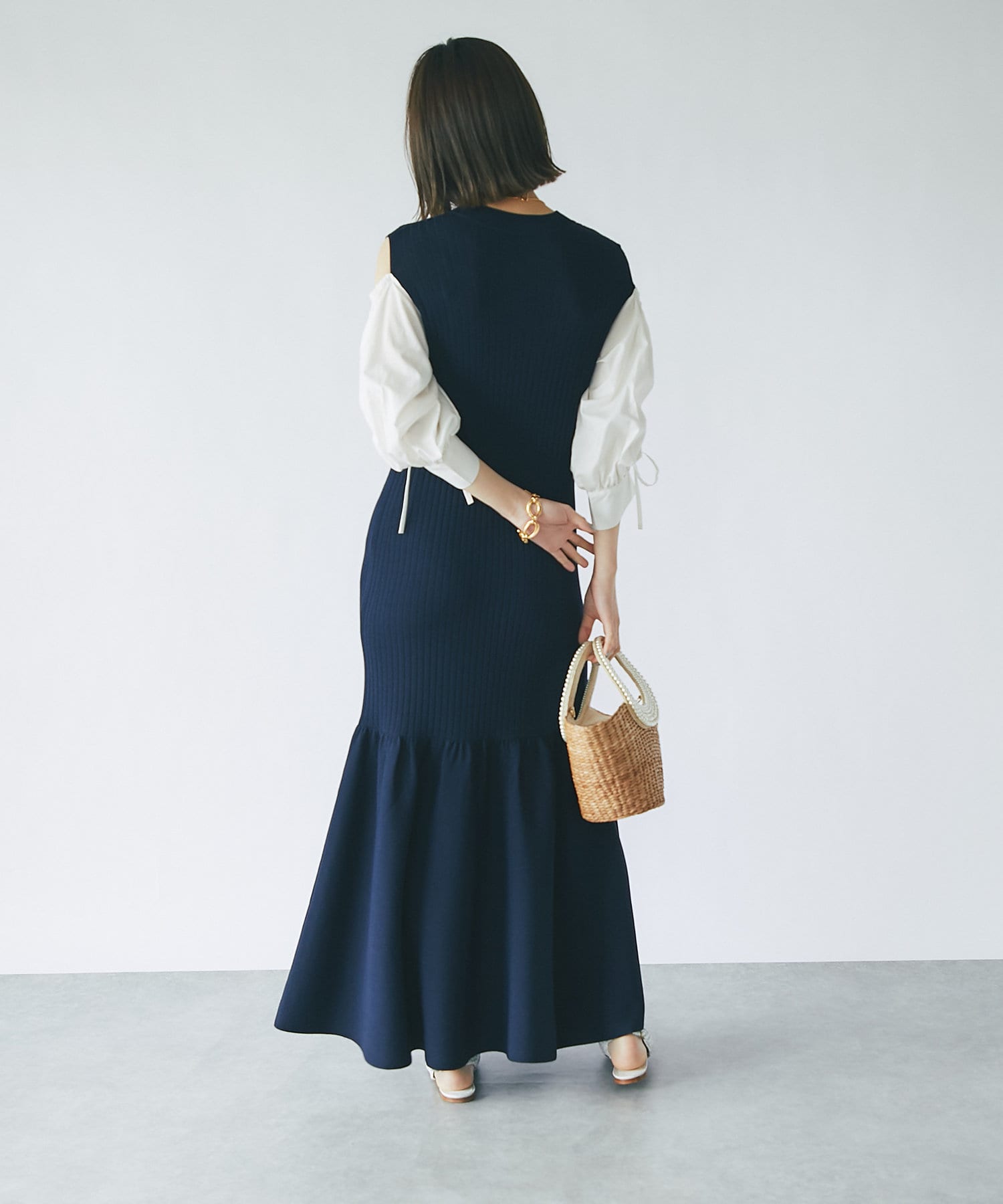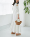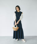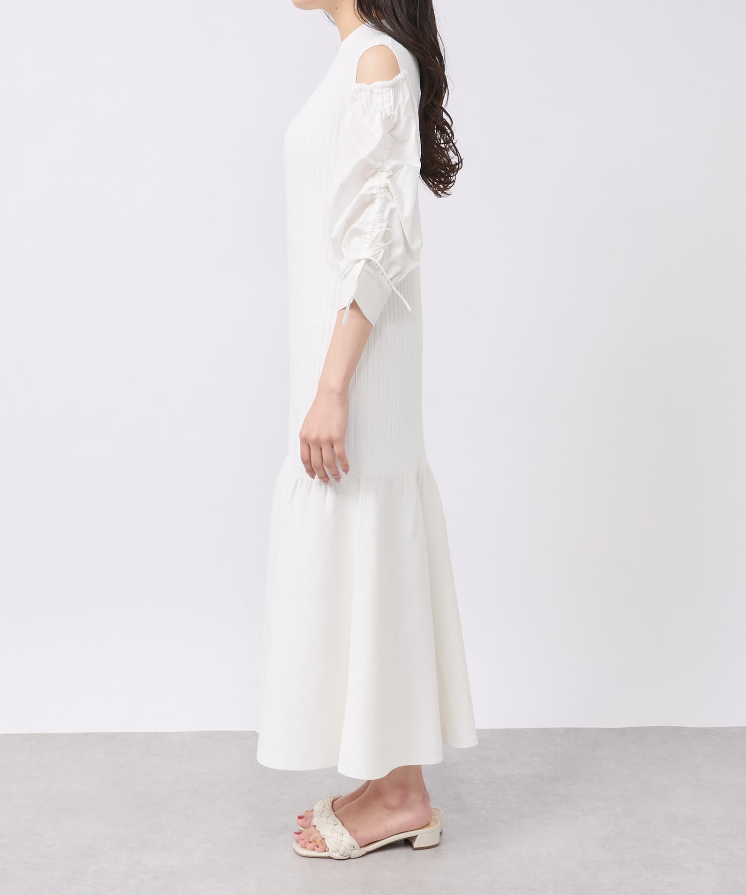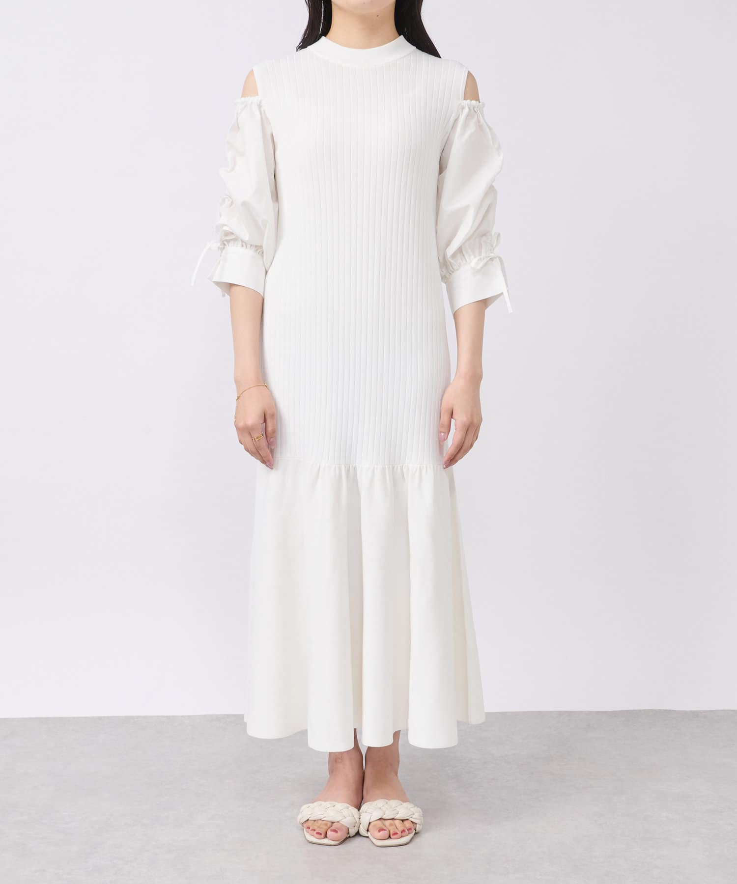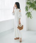 #大人カジュアル #上品コーデ #きれいめコーデ #ロングワンピ #肌見せ #ワンピース #マキシワンピ #ドッキング #異素材 #オープンショルダー #パフスリーブ