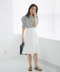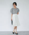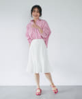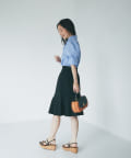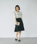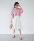 女性らしいデザインブラウスと合わせてフェミニンなコーデもおすすめ。