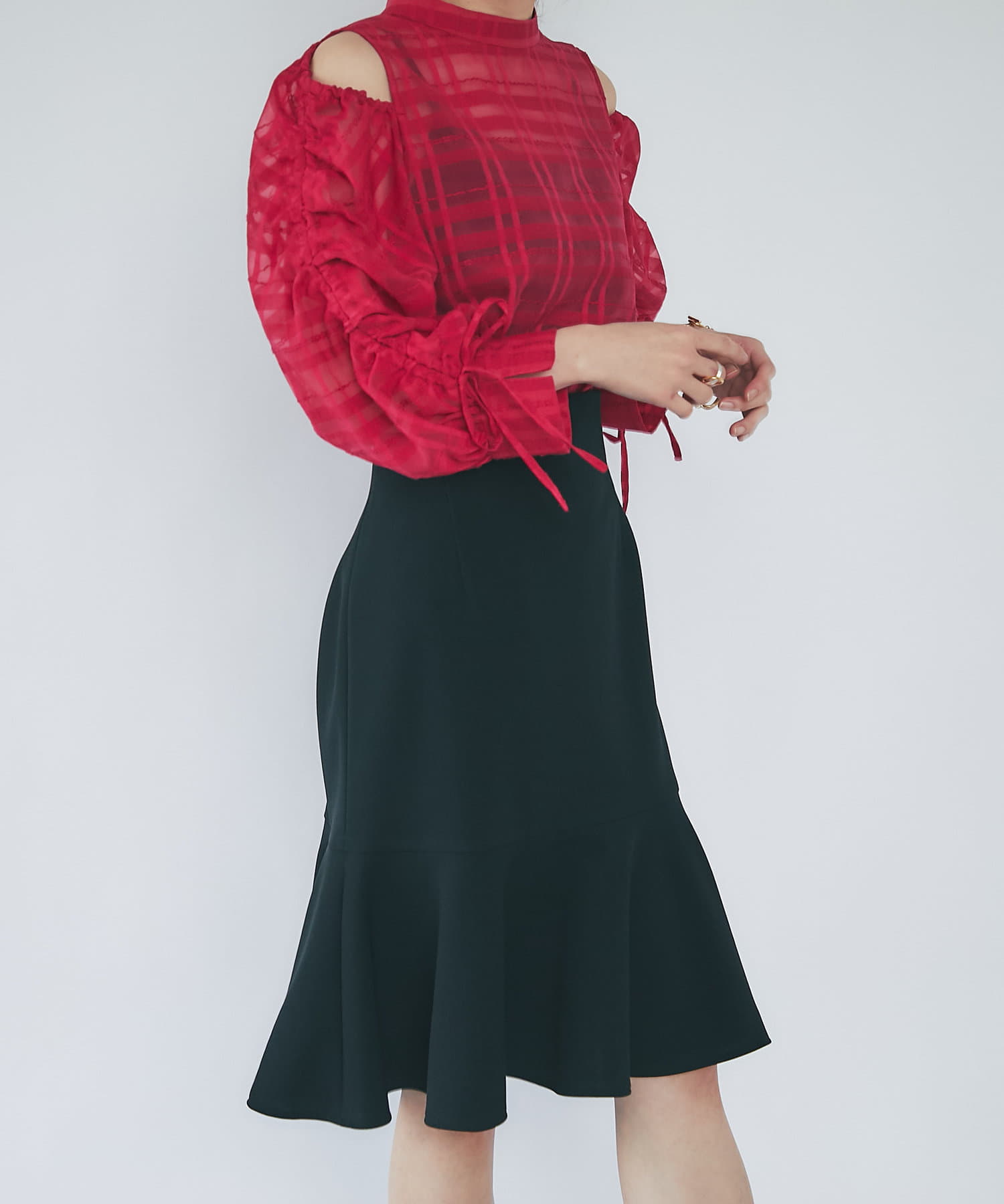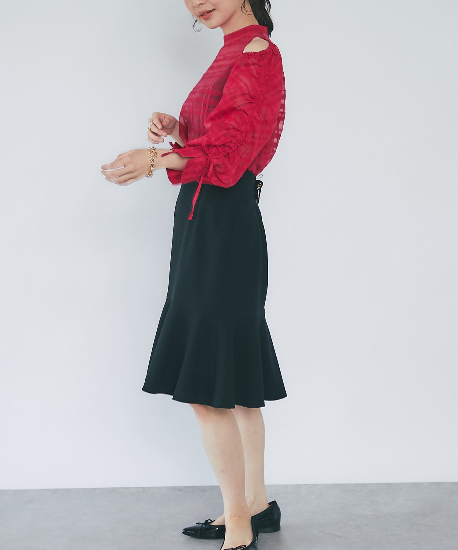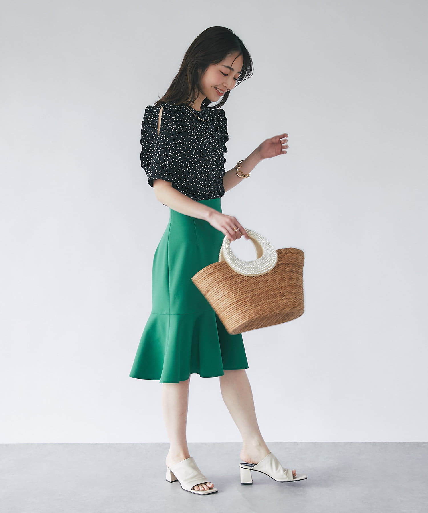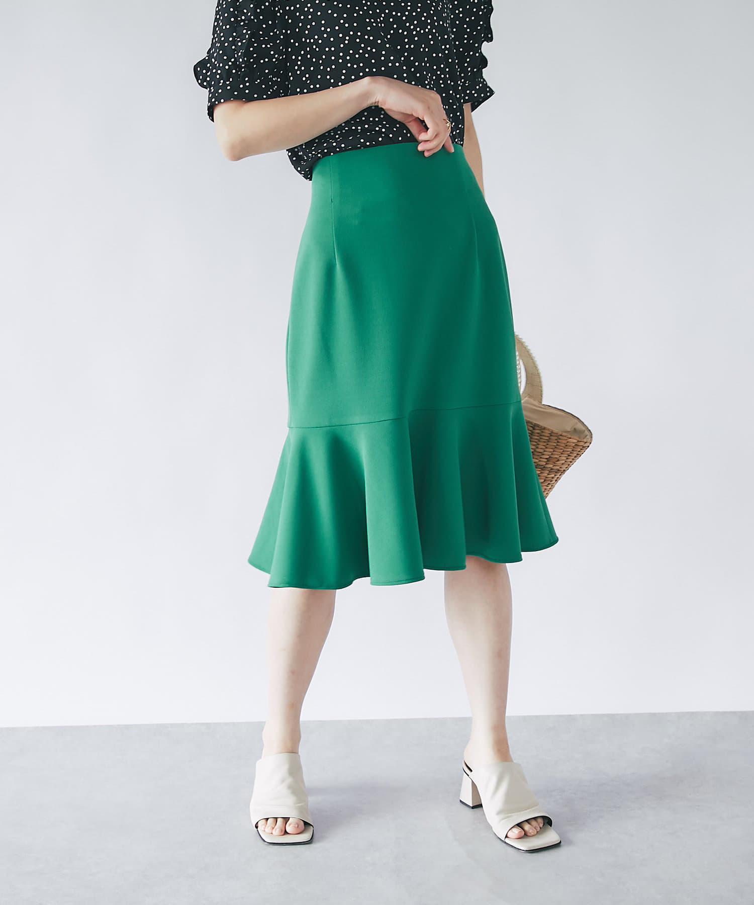 揺れるマーメイドシルエットが華やかなミディ丈スカート