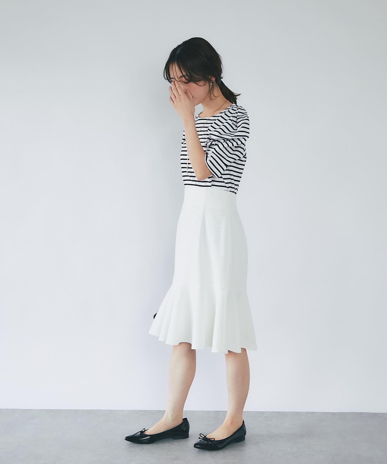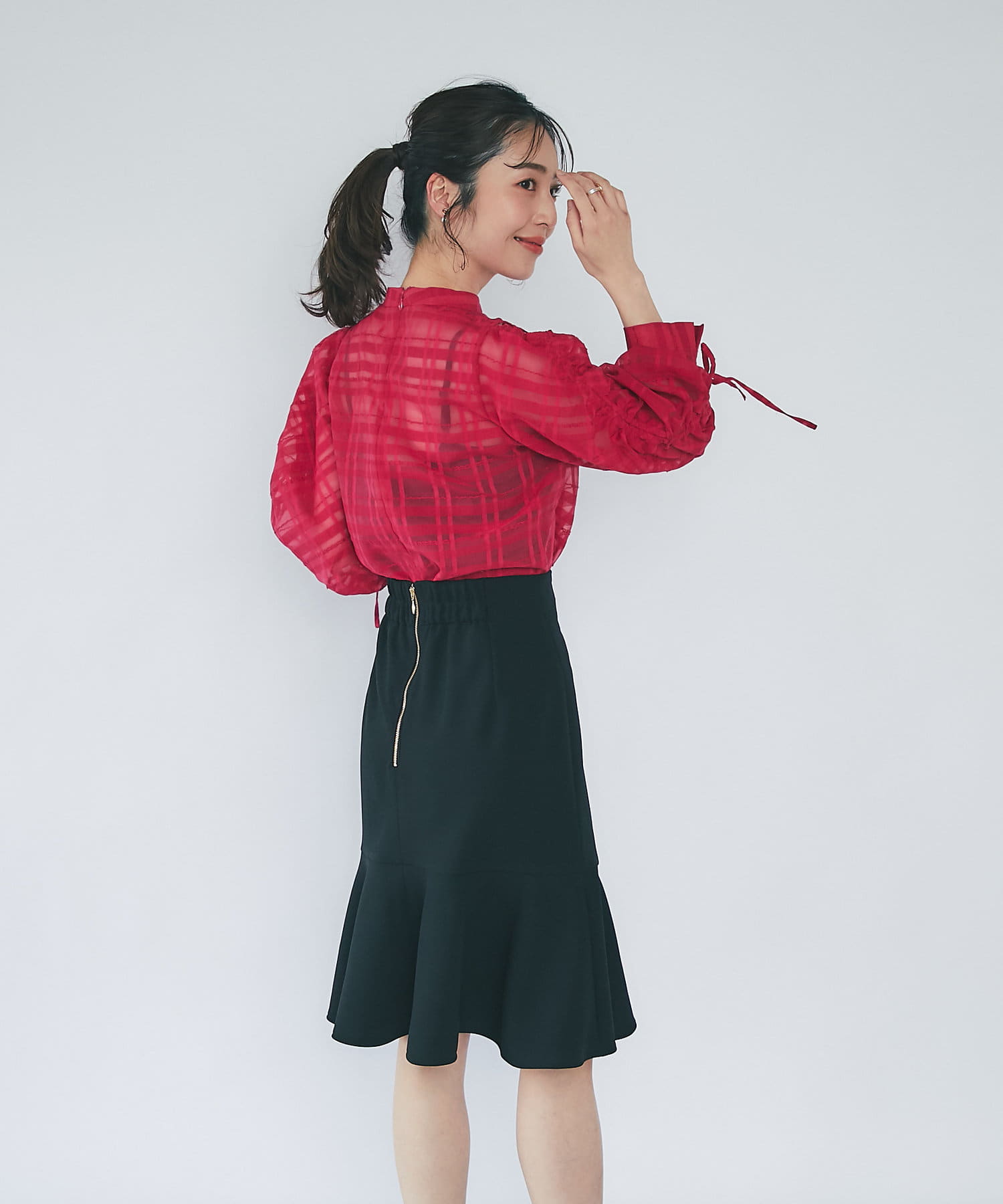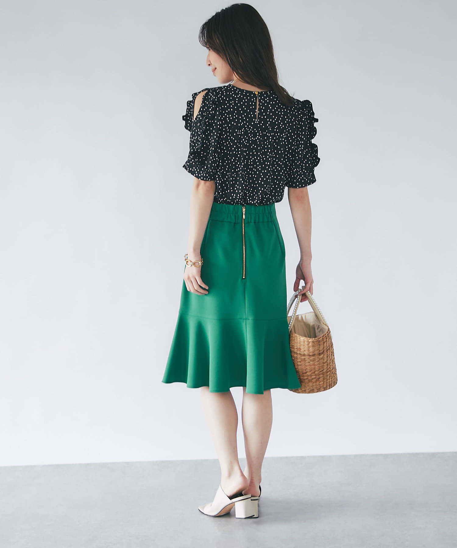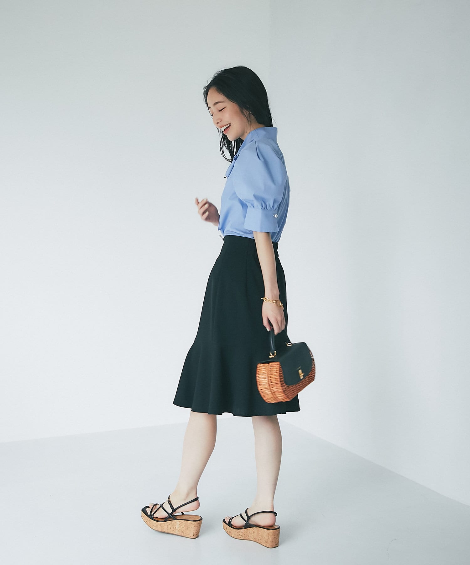 揺れるマーメイドシルエットが華やかなミディ丈スカート