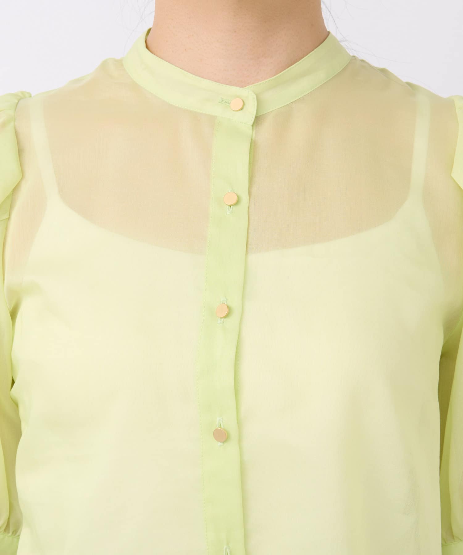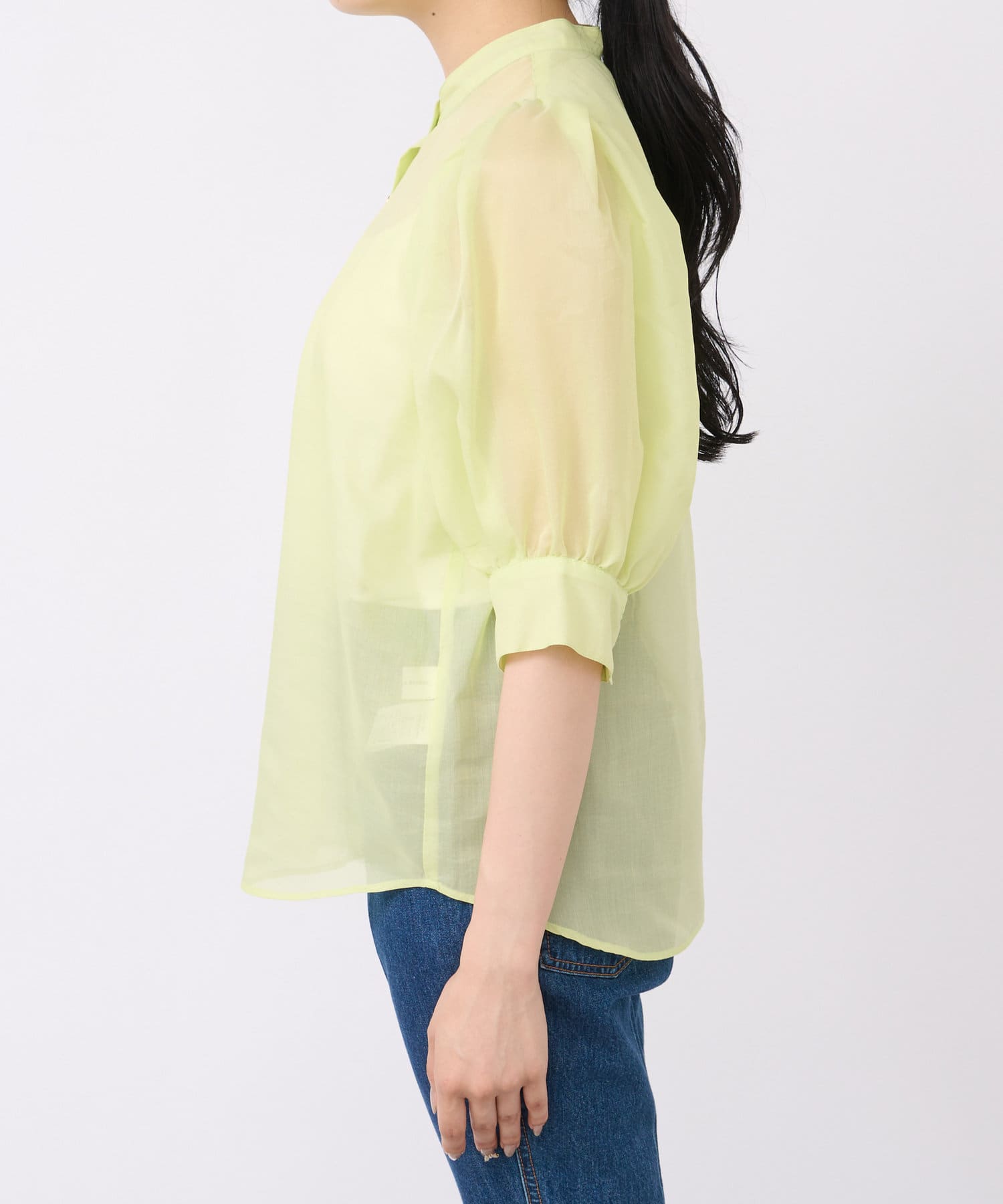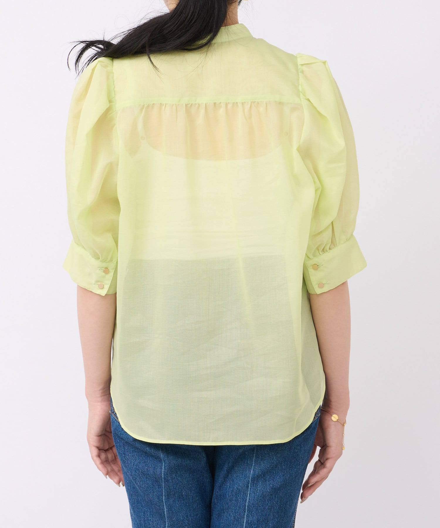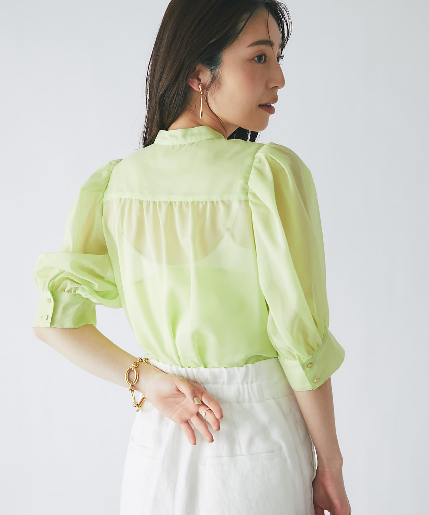 シアーボリュームスリーブ前開きブラウス