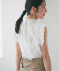 ・コットンボイルフリルノースリブラウス(LBZ1031504A0001)