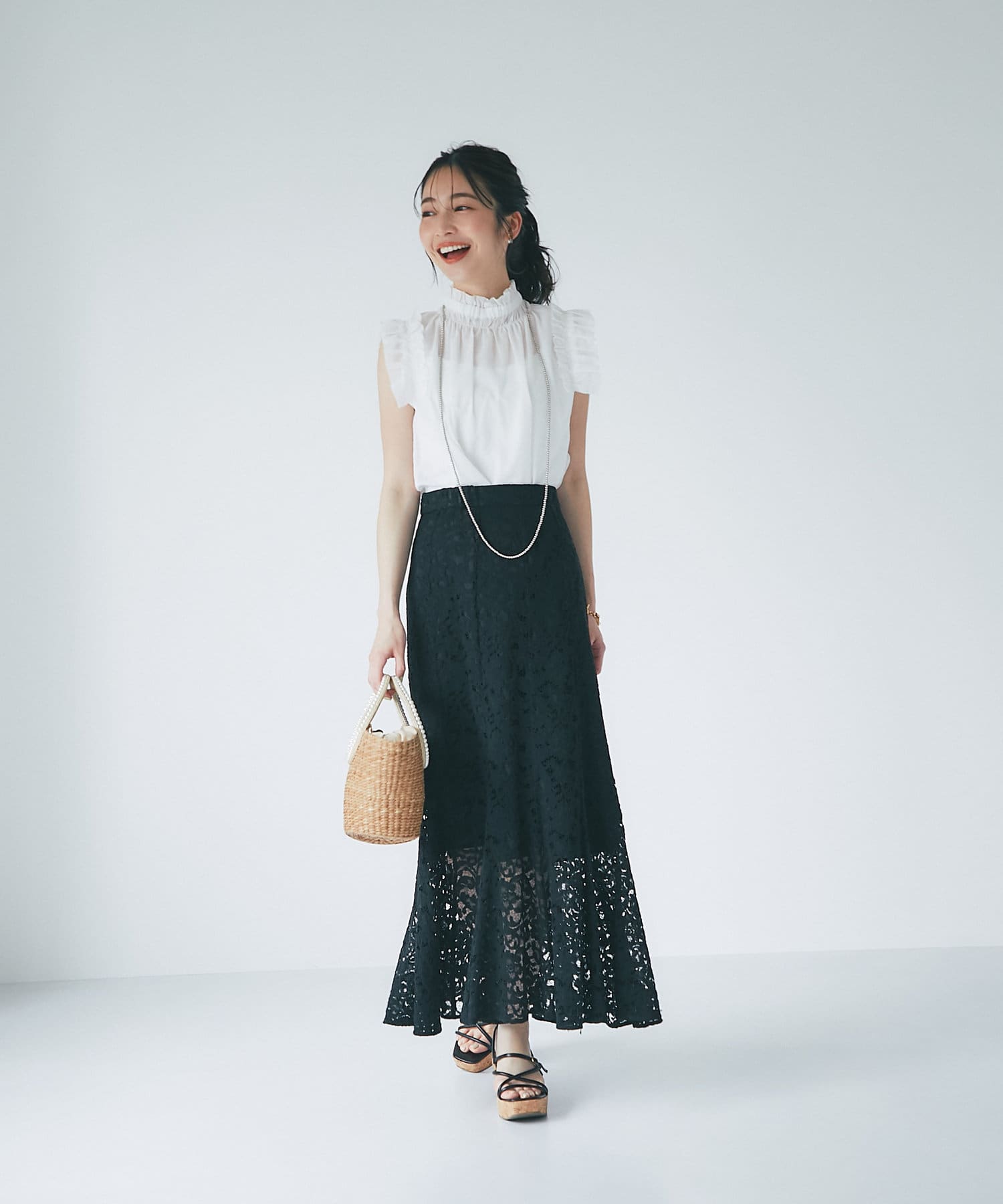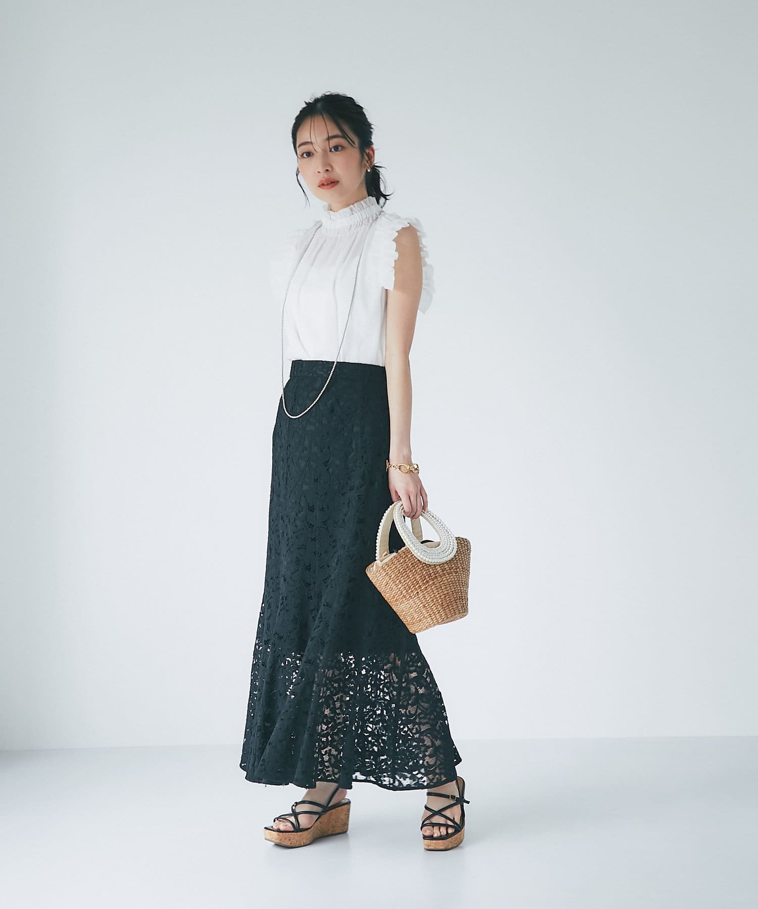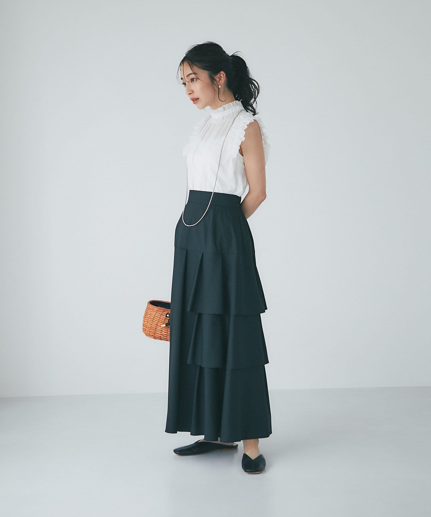 さらっとドライタッチな素材感でハリがあり、フリル部分が立体的な仕上がりに。