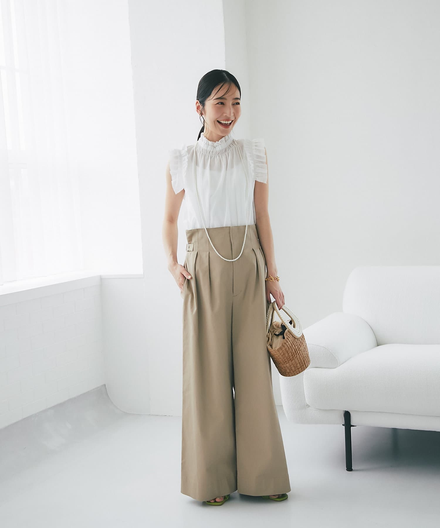 #大人カジュアル #きれいめカジュアル #無地 #ノースリーブ #フリル #上品カジュアル #春カラー #大人女子 #モテ女子 #モテコーデ #モテ服 #シンプル #ブラウス #オンスタイル #オフィスカジュアル #クロップド丈 #デザインブラウス #華やか #シアー