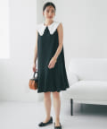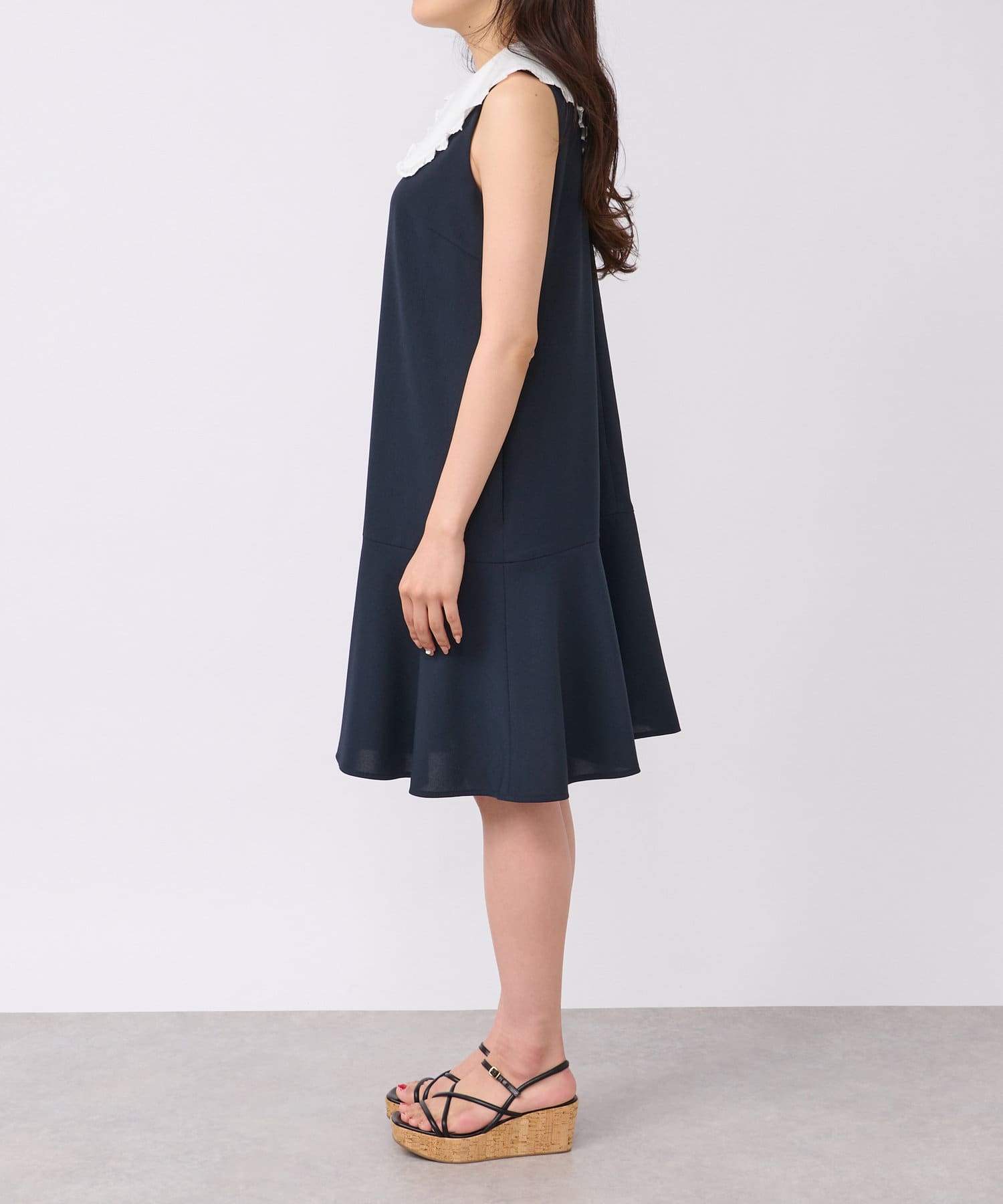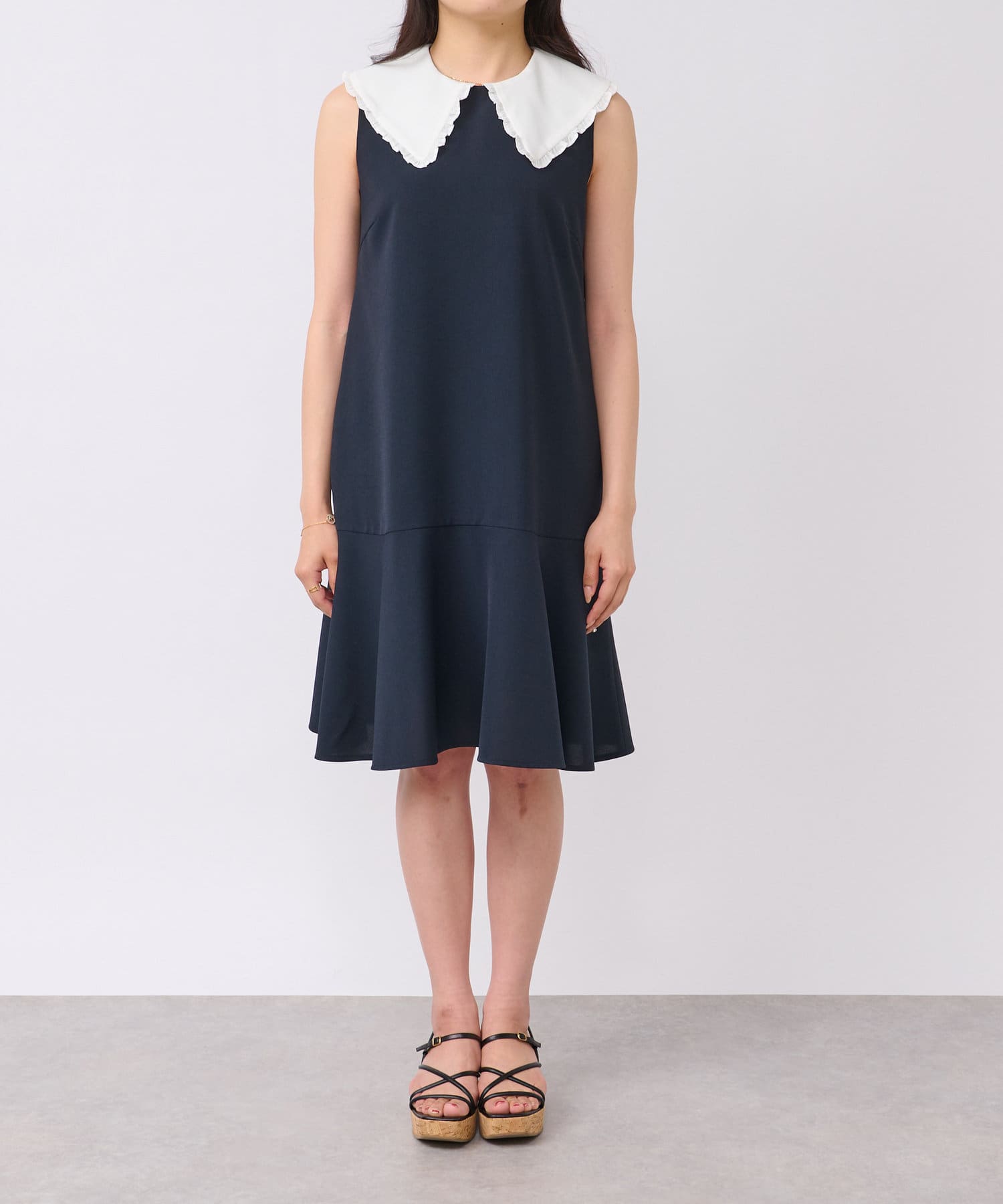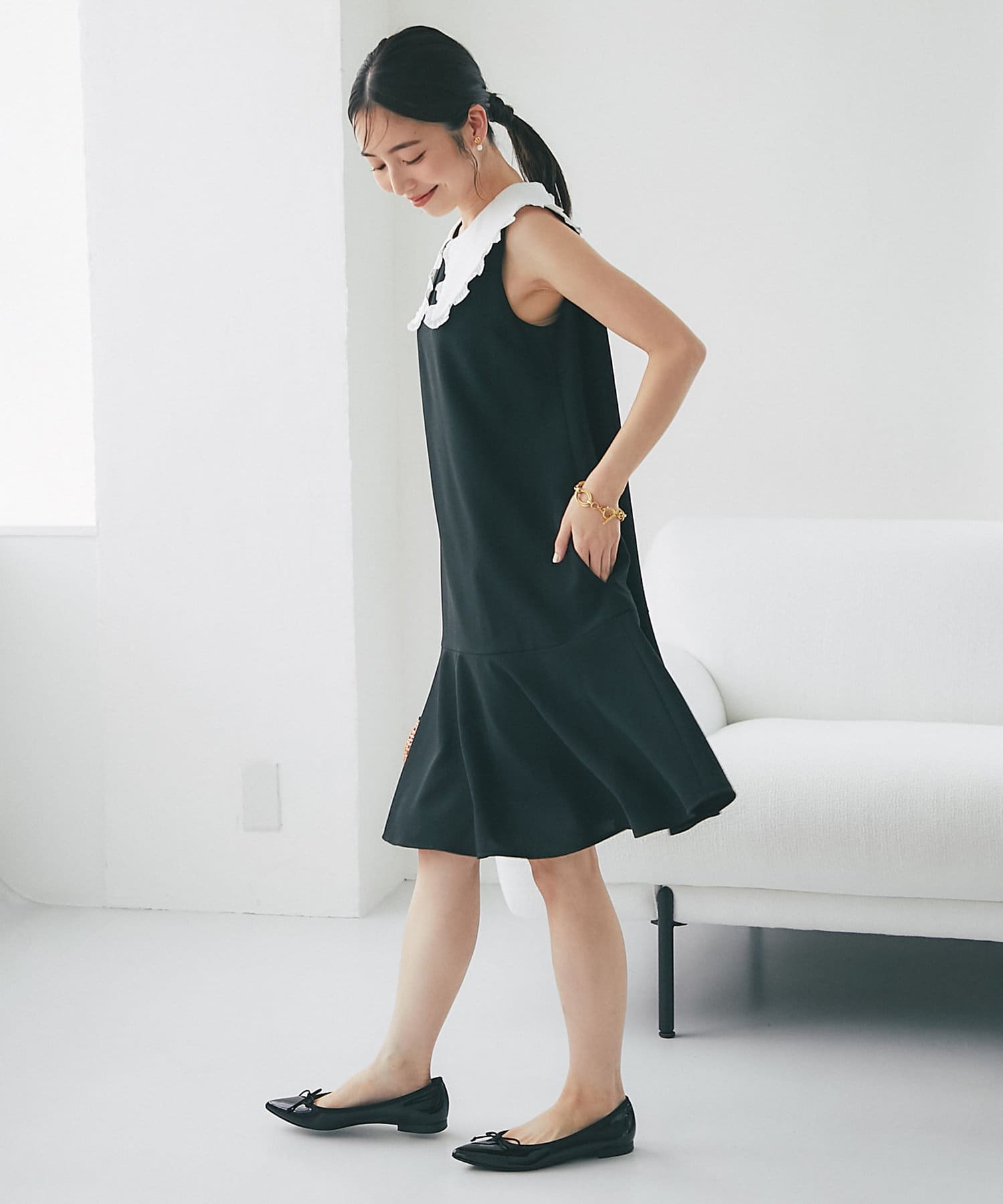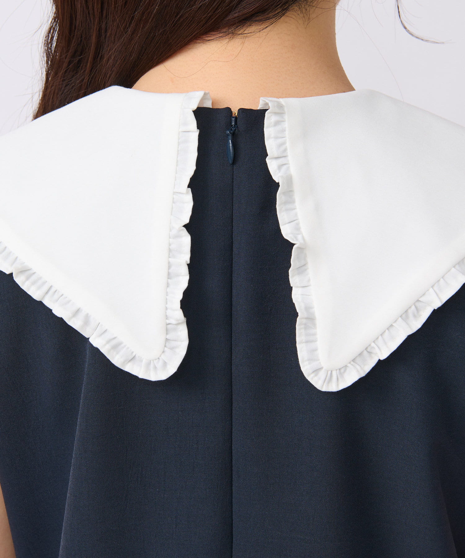 フリルで縁取ったビッグカラーが華やかなミニワンピース