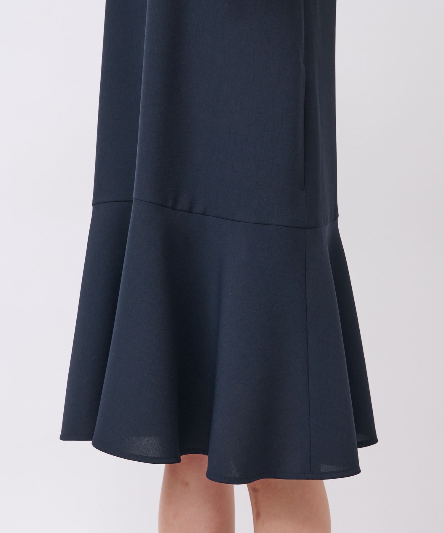 広がりのあるAラインシルエットに、揺れる裾がかわいいラッフル切り替えデザイン
