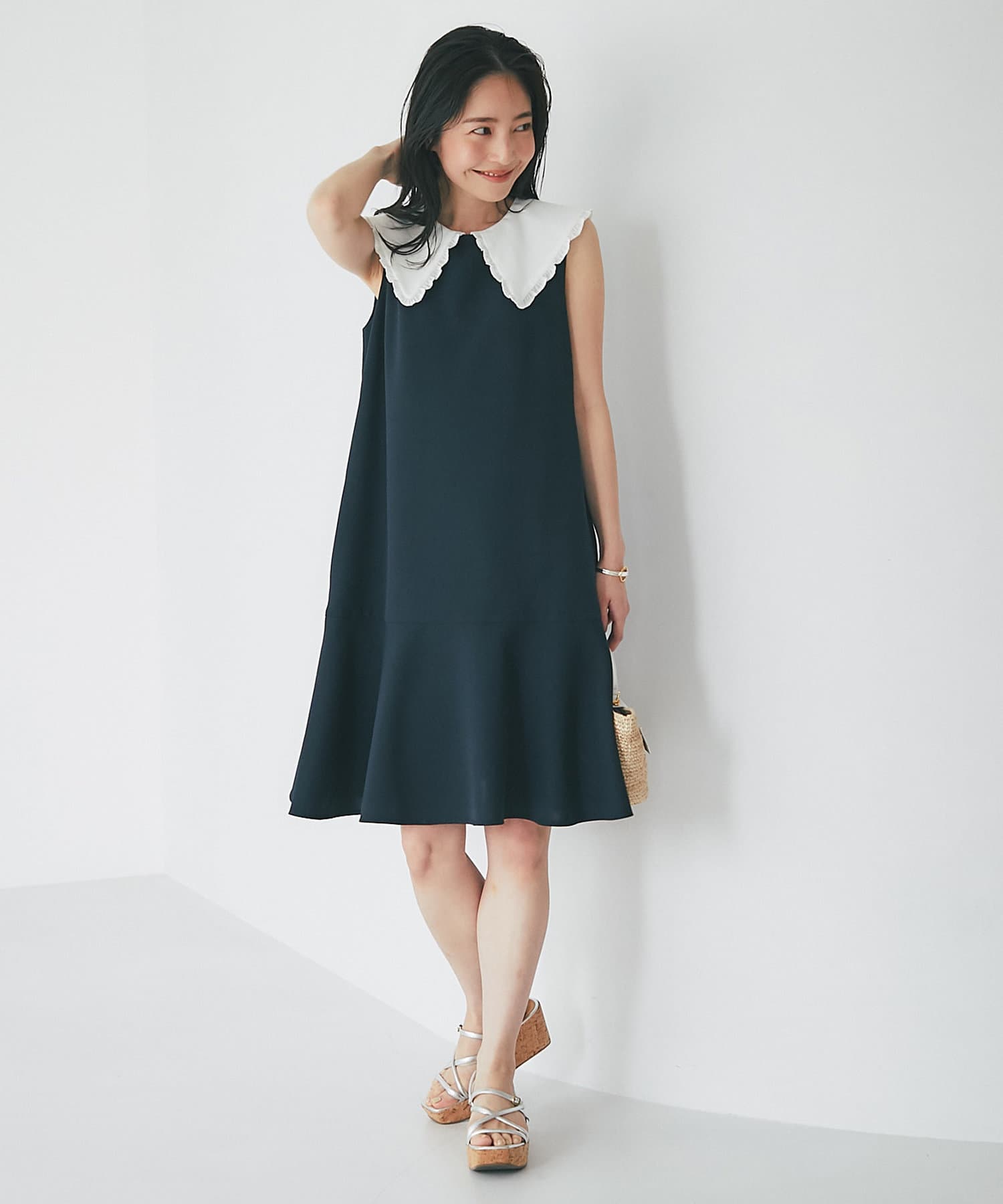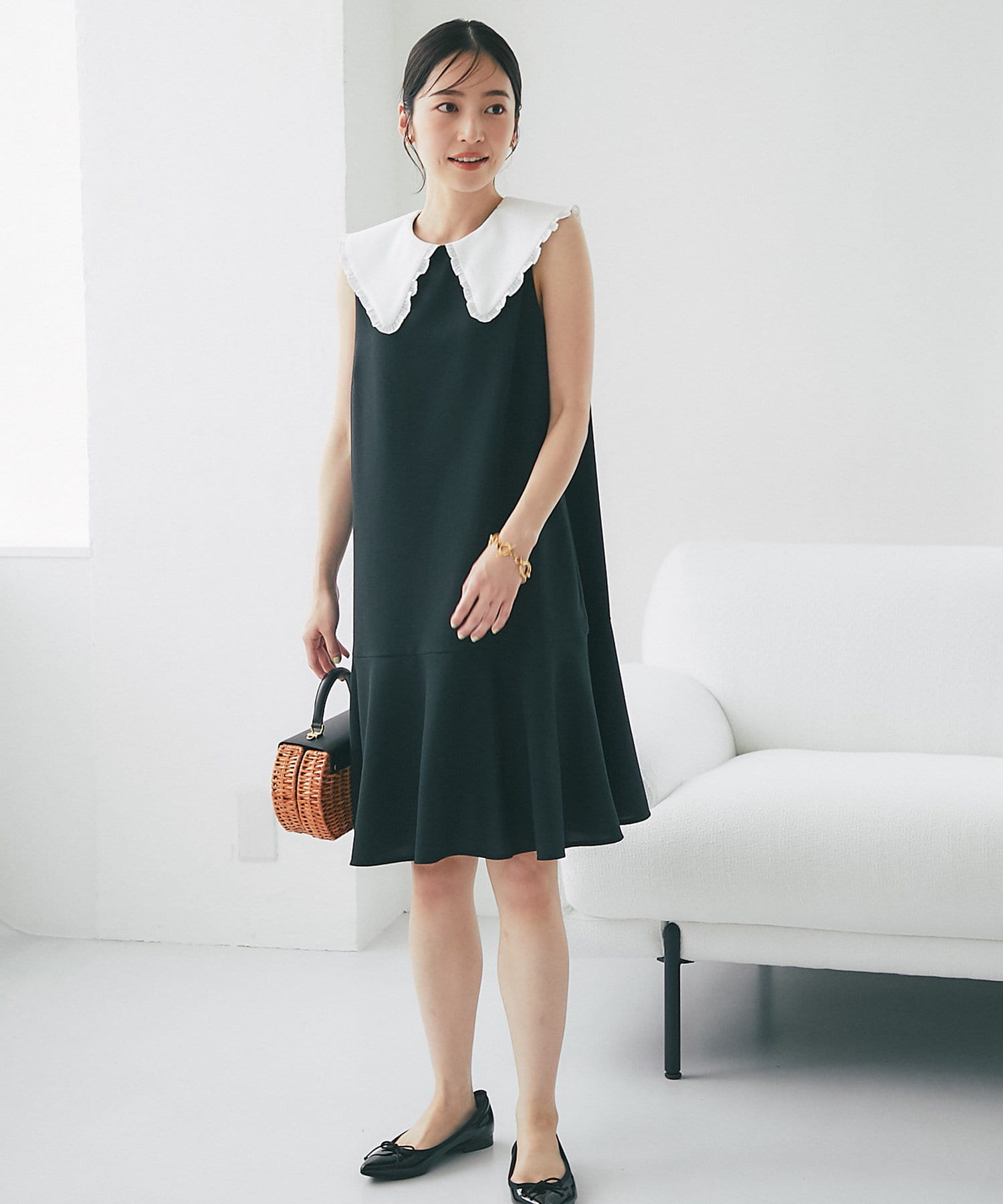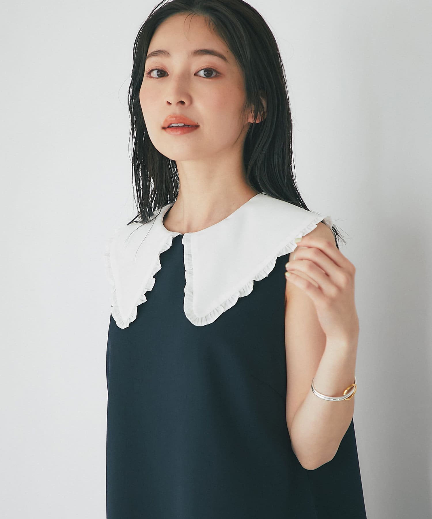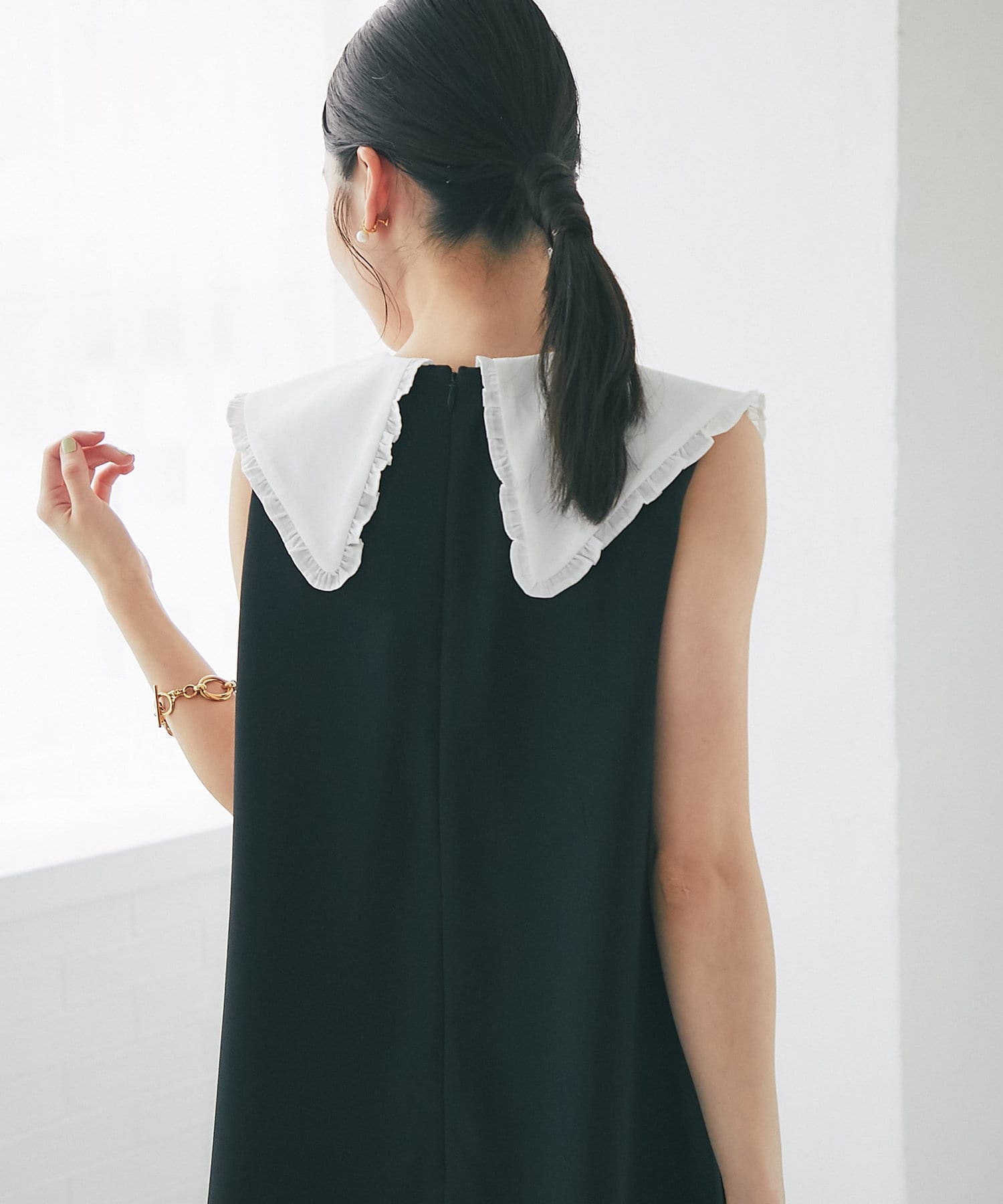 #大人カジュアル #きれいめカジュアル #きれいめコーデ #ワンピース #上品 #モテコーデ #モテ女子 #大人女子 #デート服 #モテ服 #デートコーデ #ビックカラー #モノトーン #フリル #フェミニン #ノースリーブ #オフィス #お仕事 #オケージョン #ミニワンピ #ミニ丈 #クラシカル #トレンド