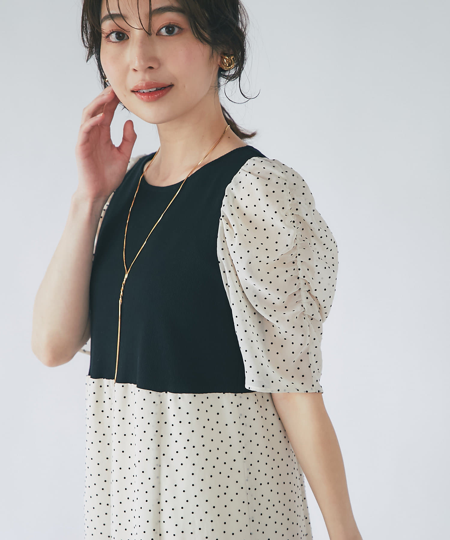 かずみさんがネイビートップス✖️ギンガムチェックのコーデで使用してたのが購入のキッカケです。ダークトーンにゴールドがとても上品で、店舗でかずみさんとお話し、やっぱりいいなと思い購入しました。