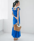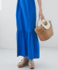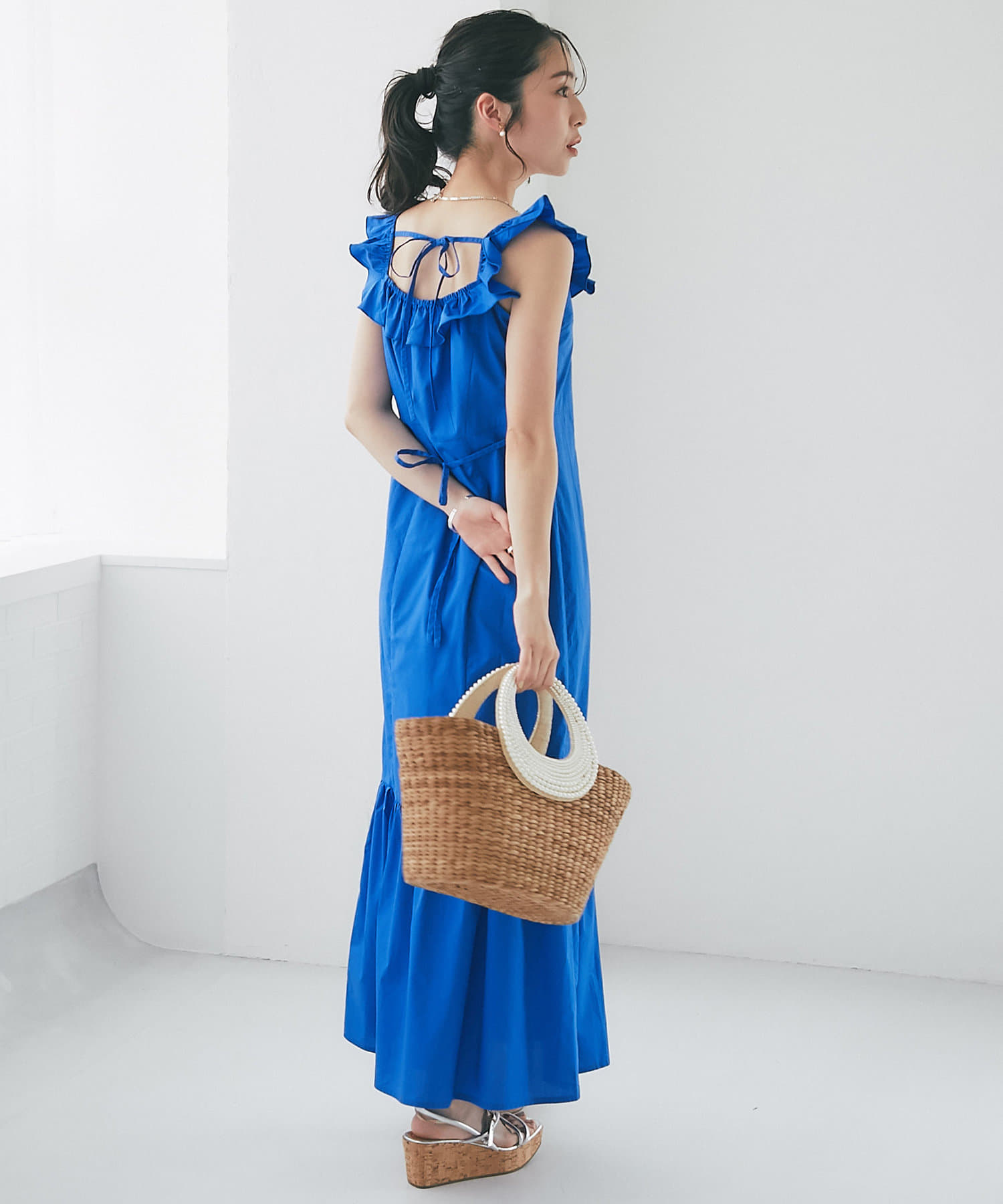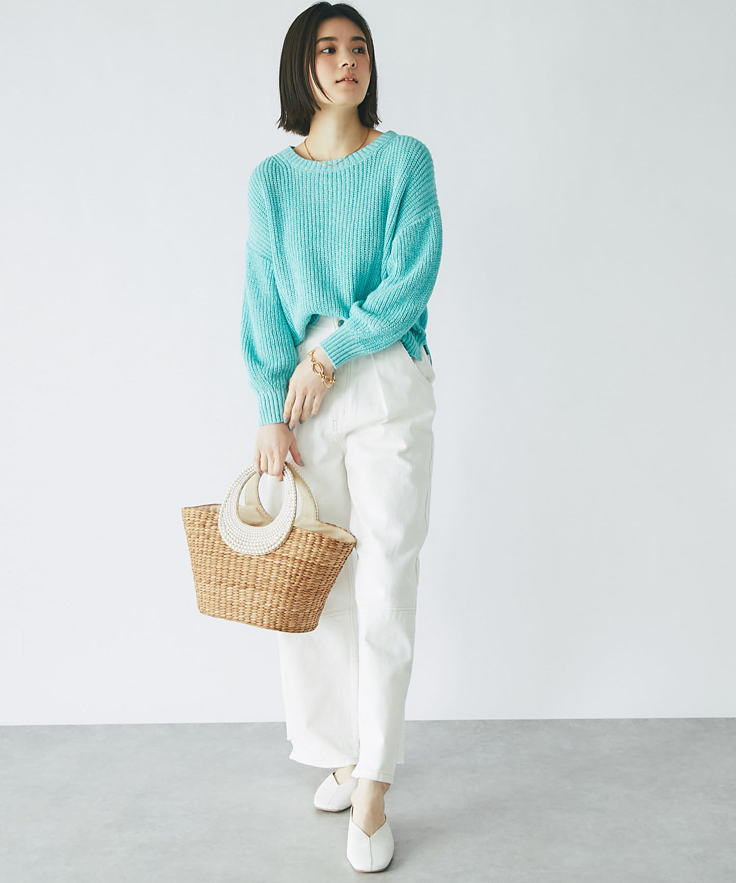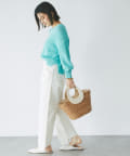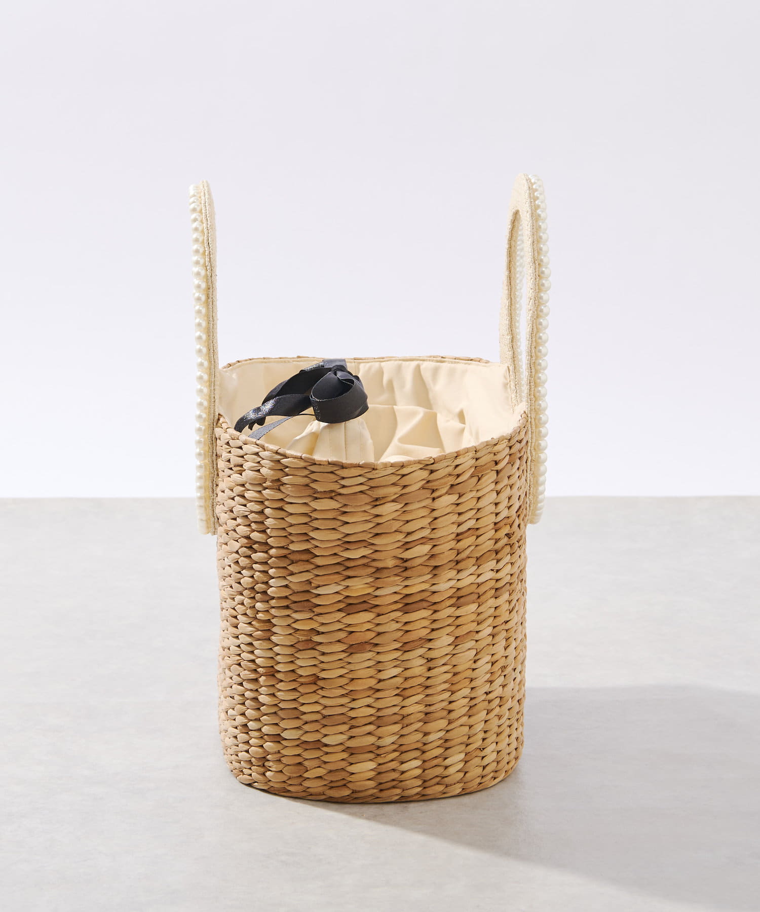 大粒のパールをハンドル周りにたっぷり使用したかごバッグで、デートに最適な愛らしさ。