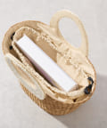 また、B5サイズがすっぽりと入るサイズ感なので実用性も抜群で、バッグの内側は巾着仕様になっており、中身が見えることなく安心してお使い頂けます。