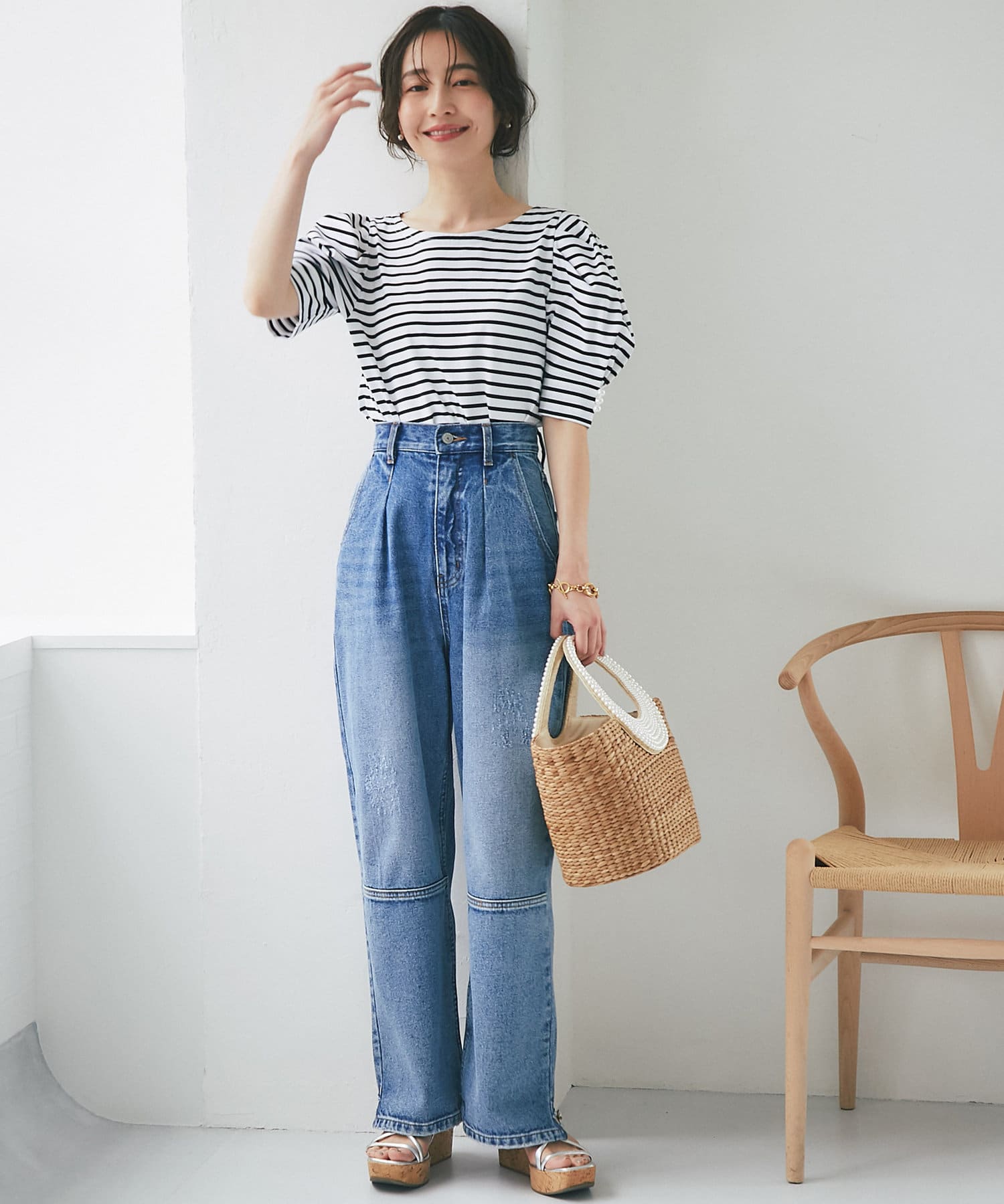 カジュアルにデニムスタイルや、スカートやワンピースなどフェミニンなスタイルにも合わせやすくおすすめです。