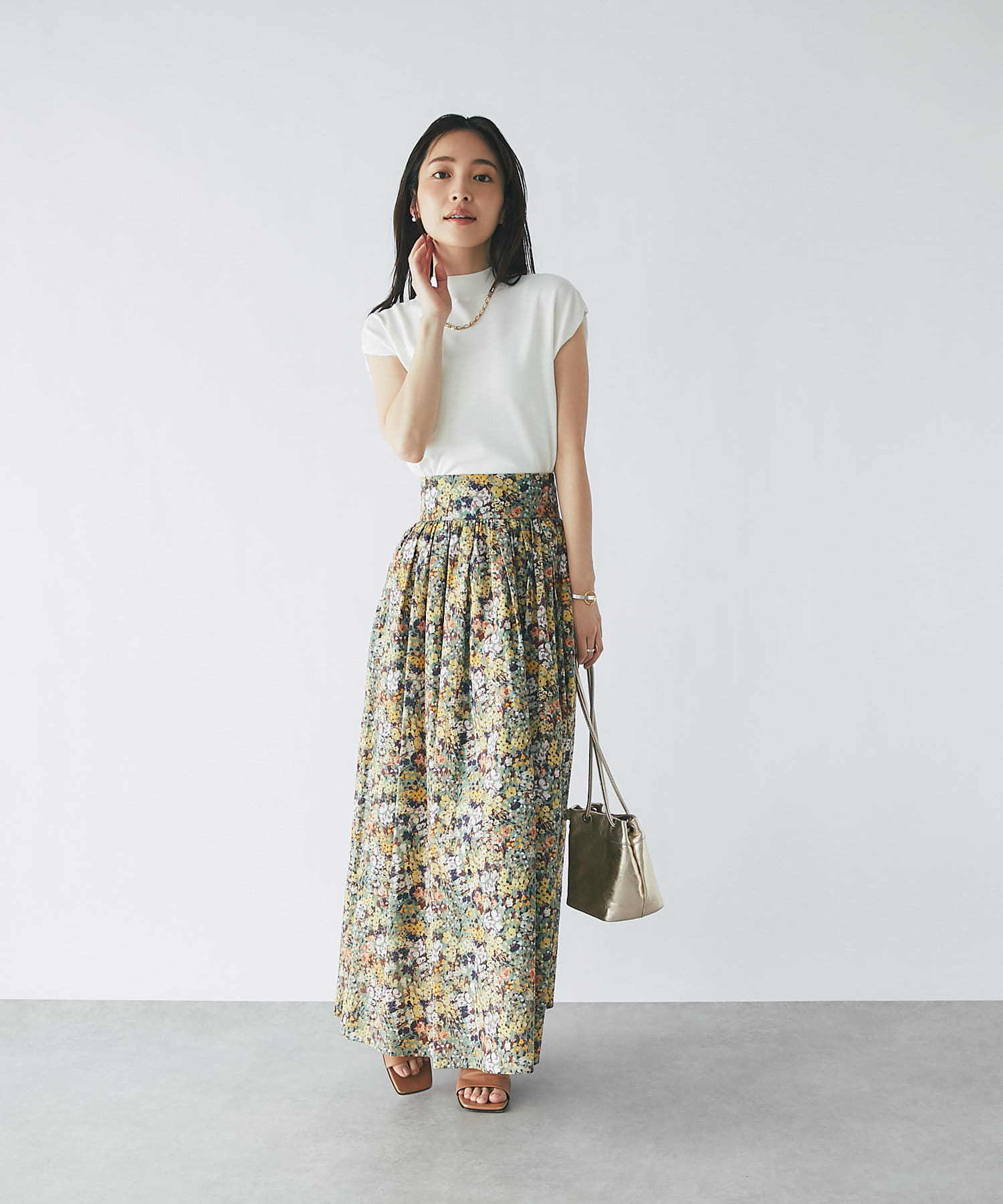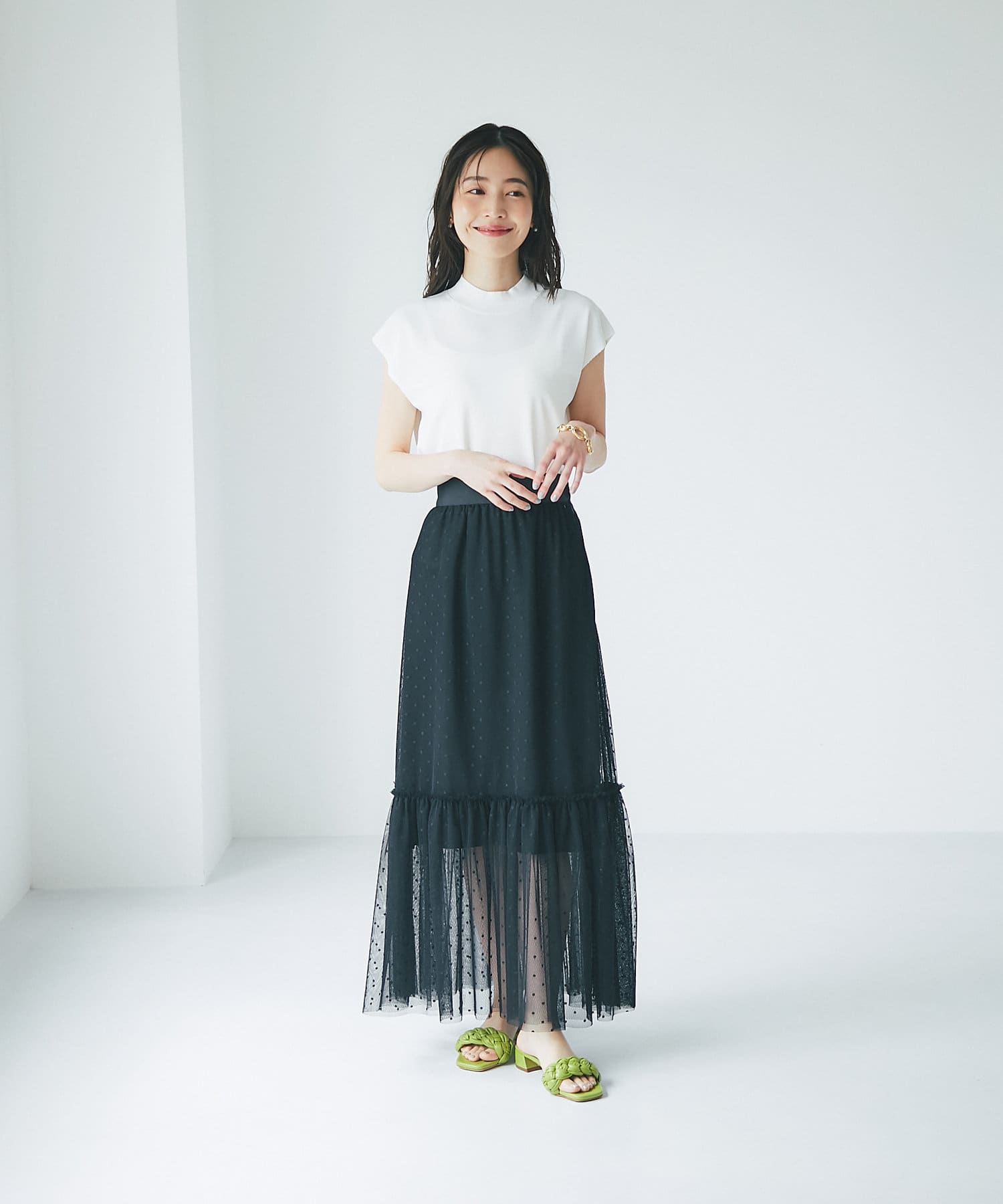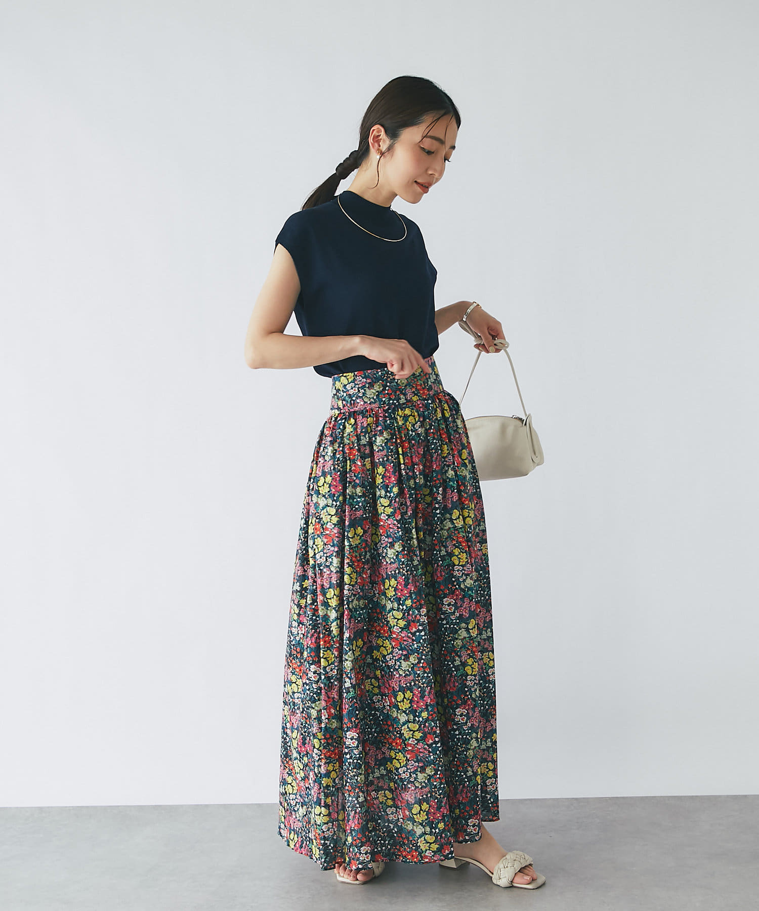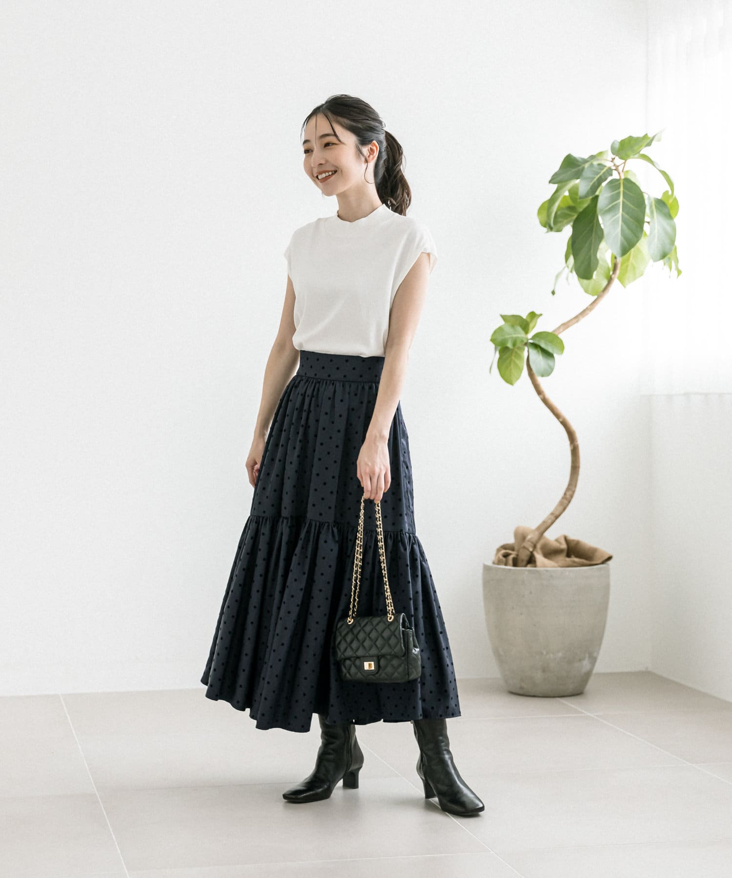柄スカートなど華やかなボトムの合わせに使いやすいアイテムです。